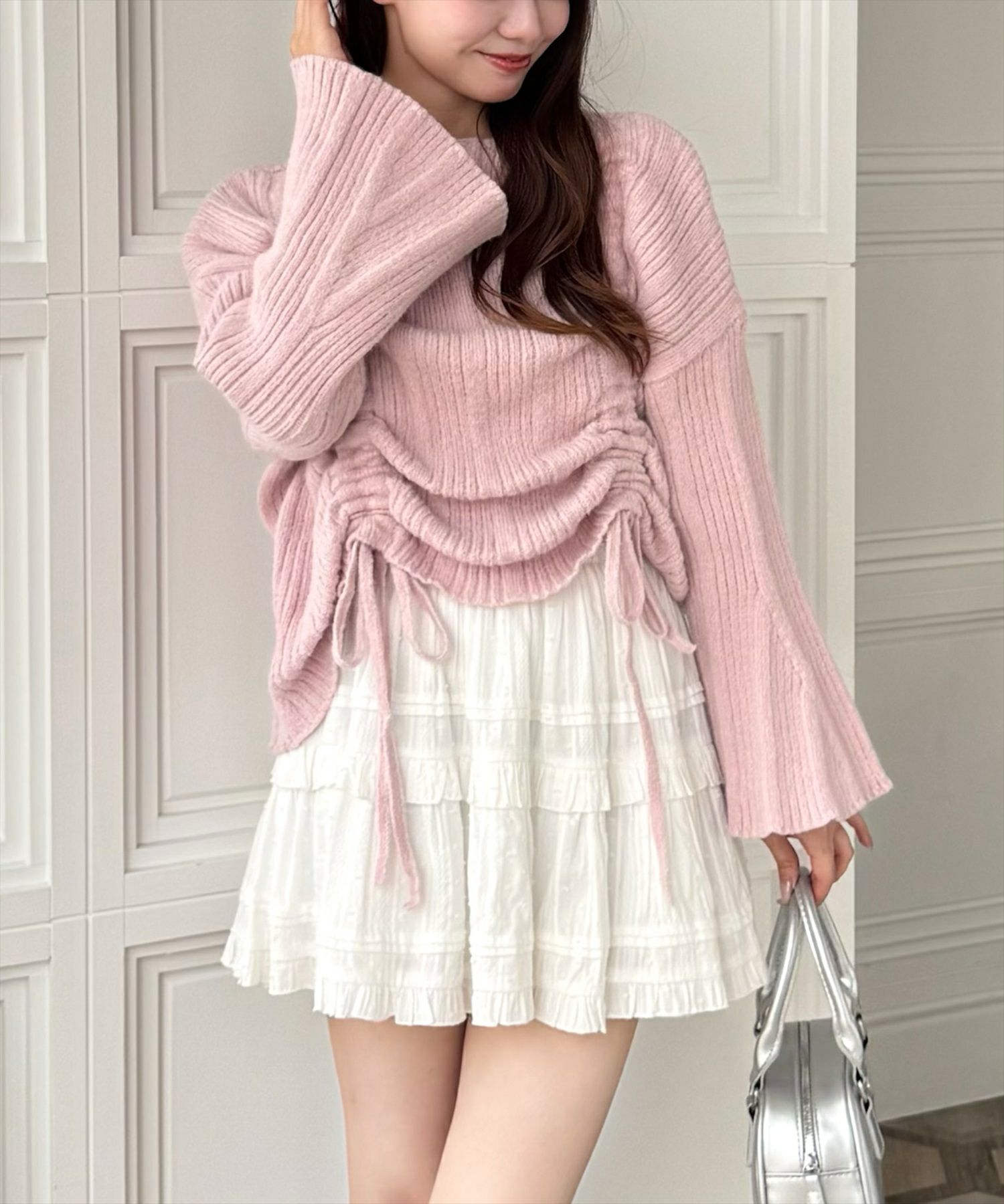 clear 袖リボン付きラメフェザーニットトップス [CL8867]