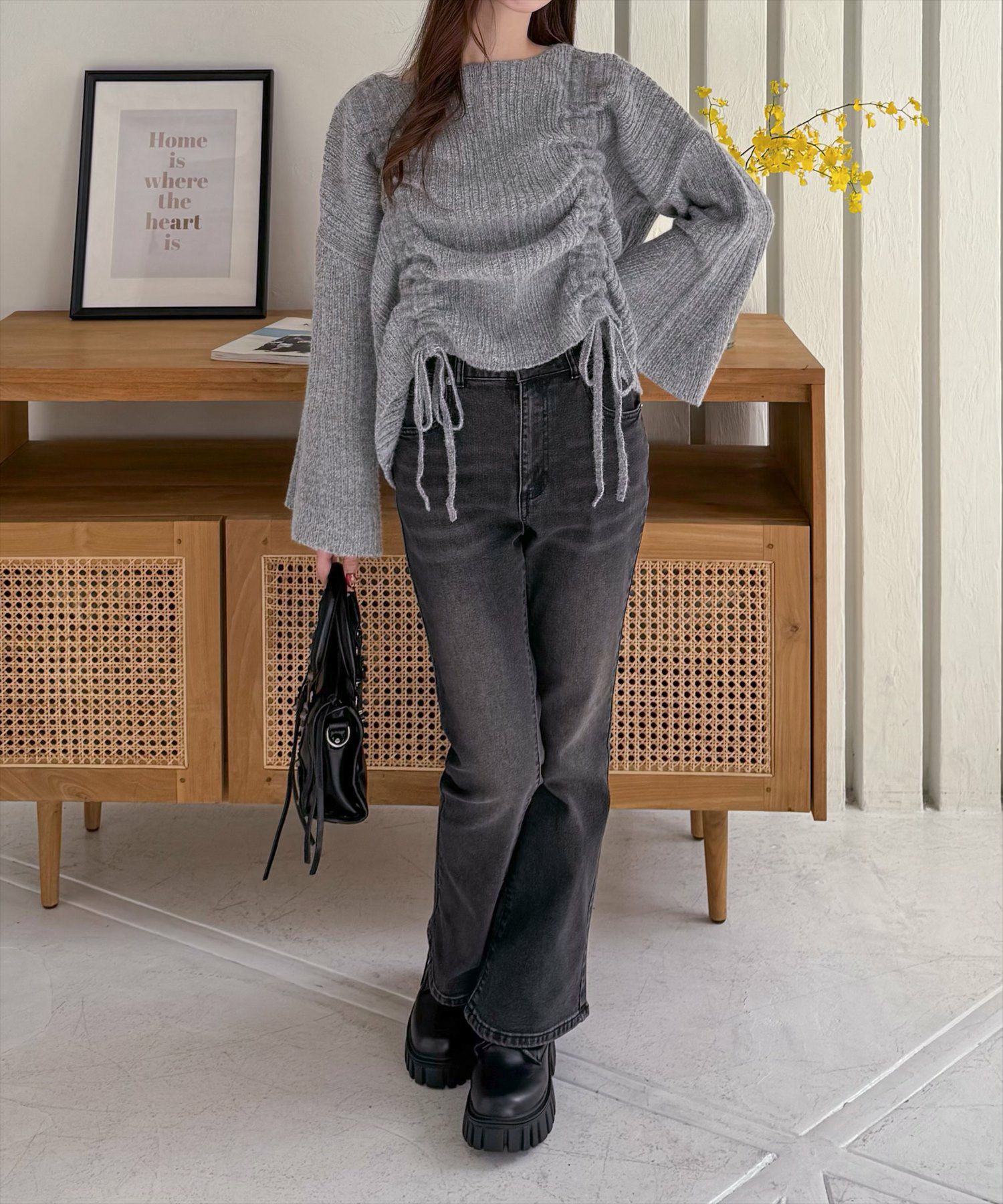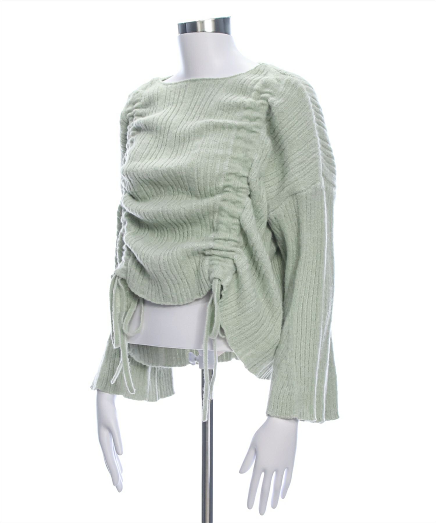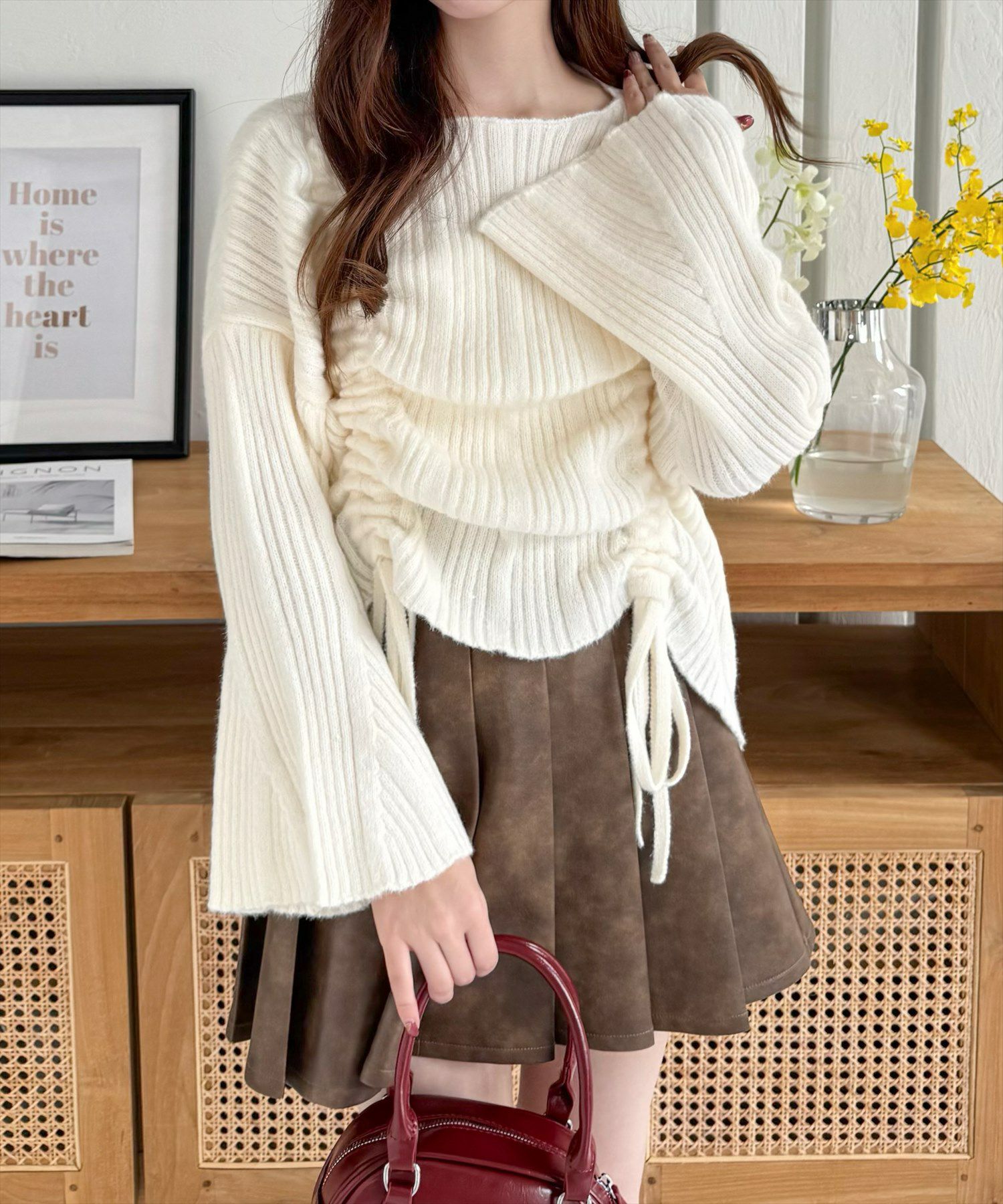 clear サイドドロスト肩リボンワンショルニットトップス[CL8904]