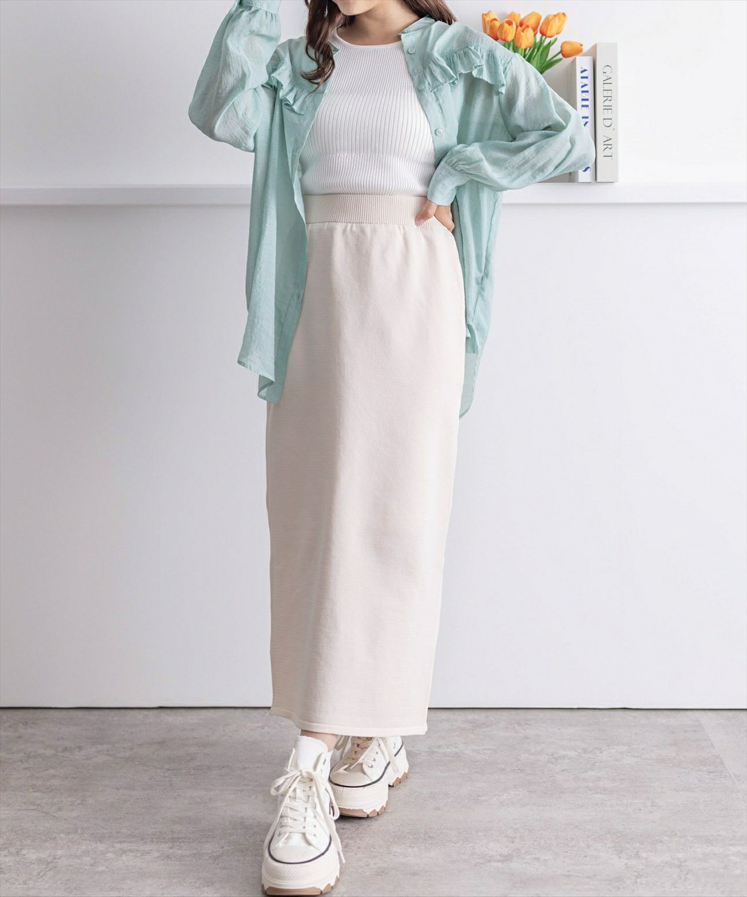 clear サイドドロスト長袖リブニットトップス[CL8872]