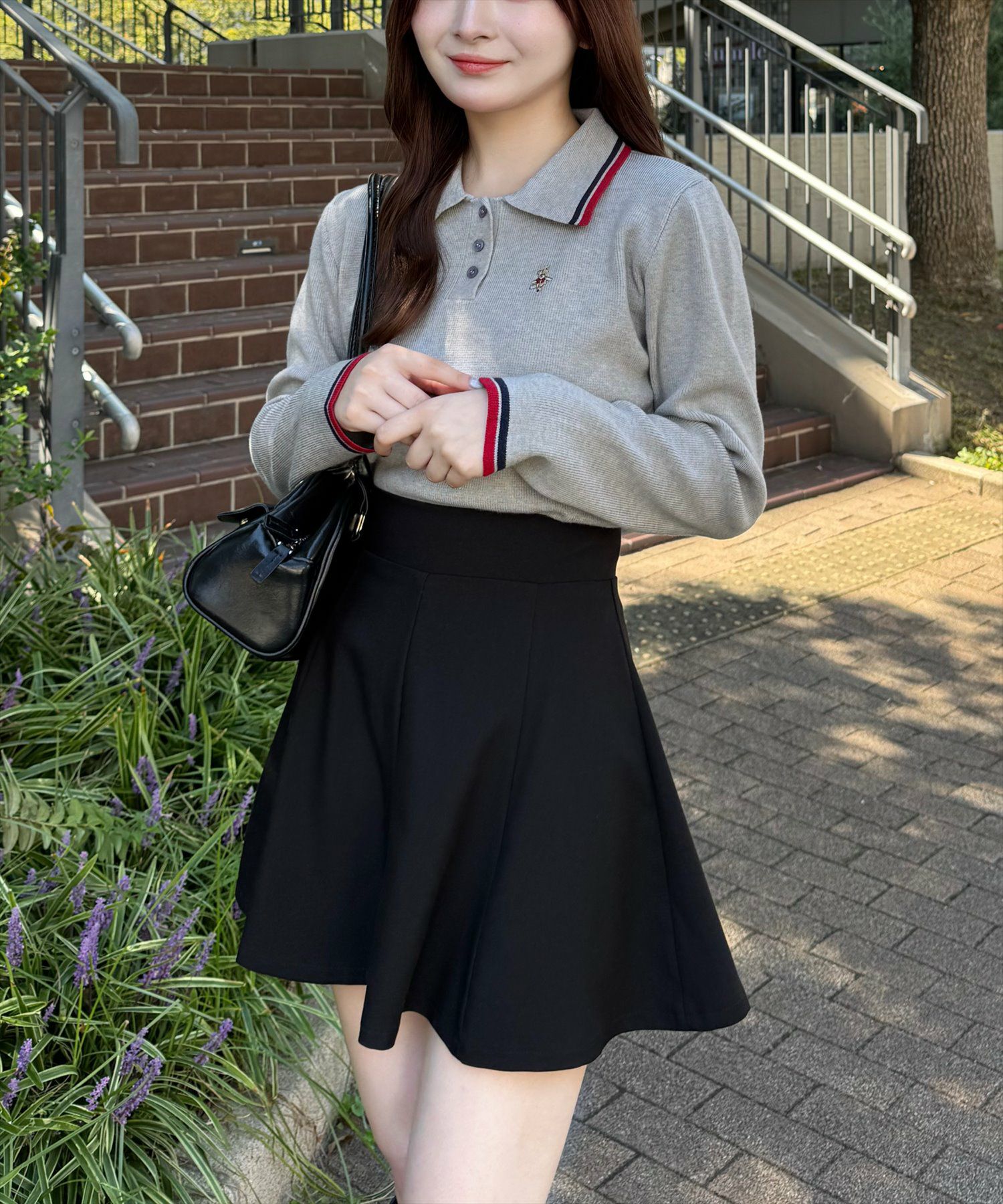 clear ベア刺繍入り長袖ポロニット[CL8574]