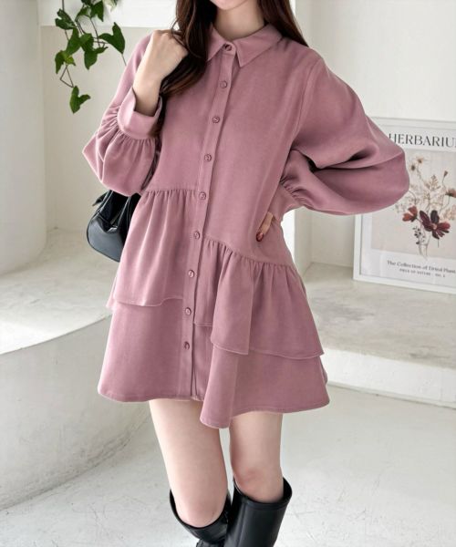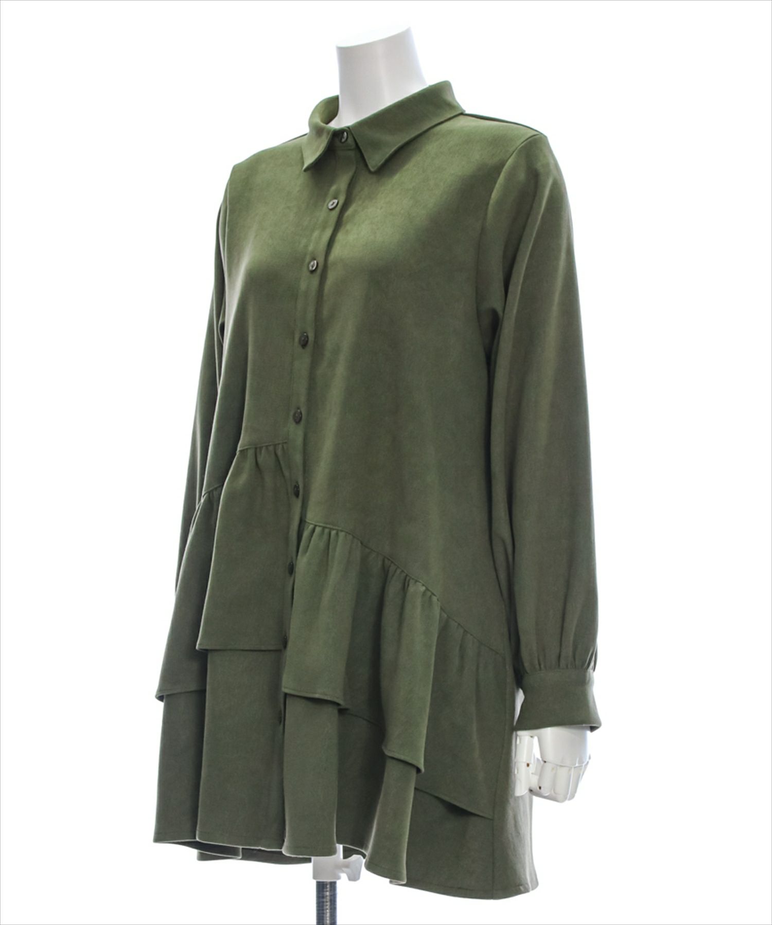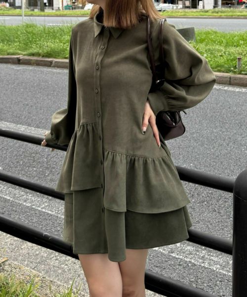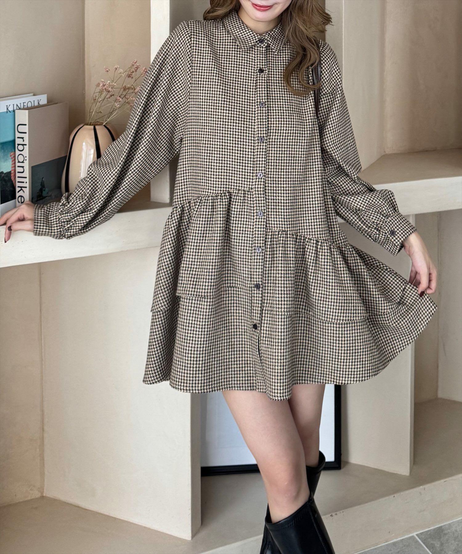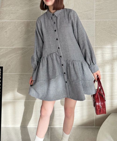 clear 千鳥柄裾アシメフリルシャツワンピース[CL8903]