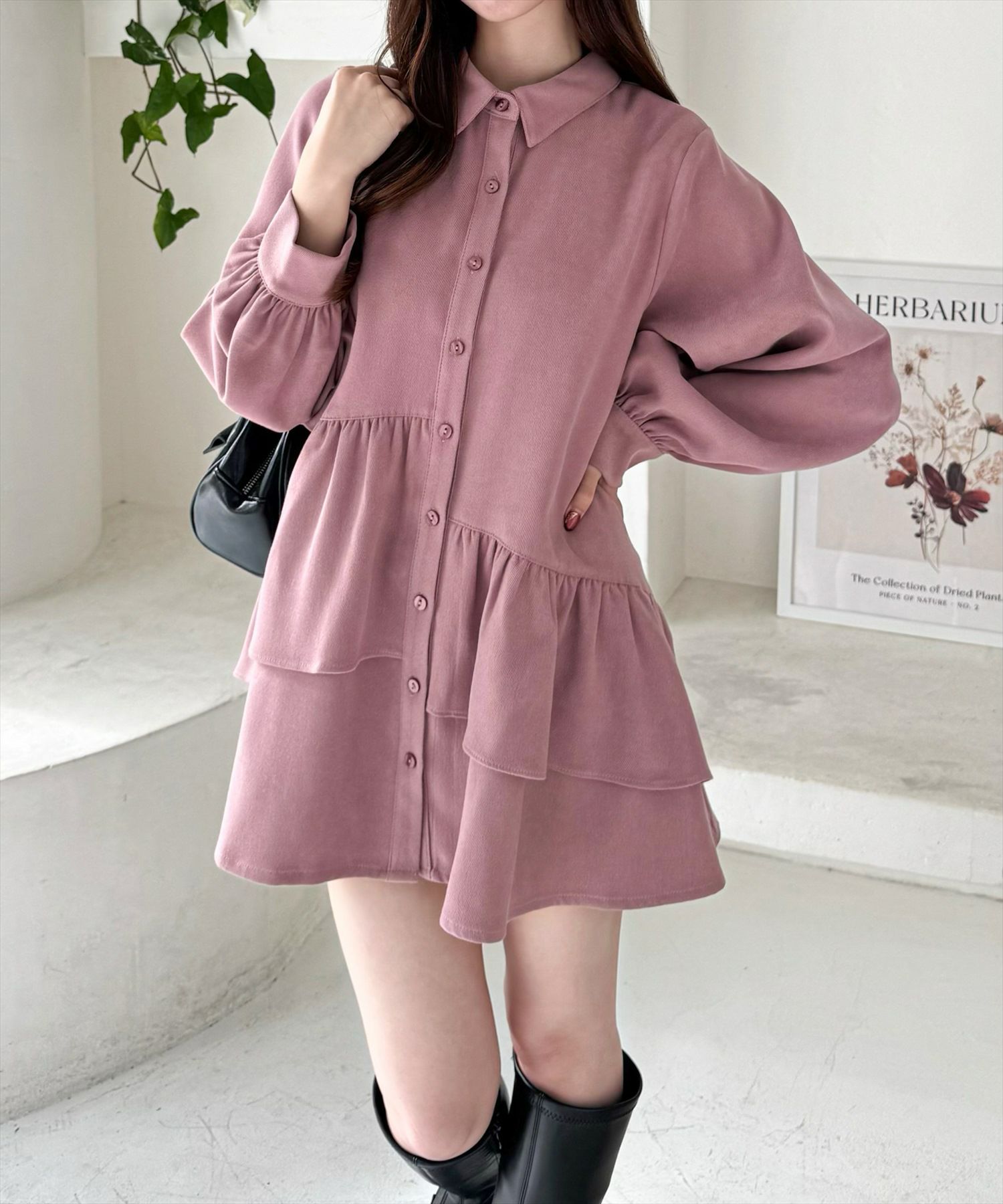 clear ピーチ起毛Vネックティアードワンピース[CL8811]