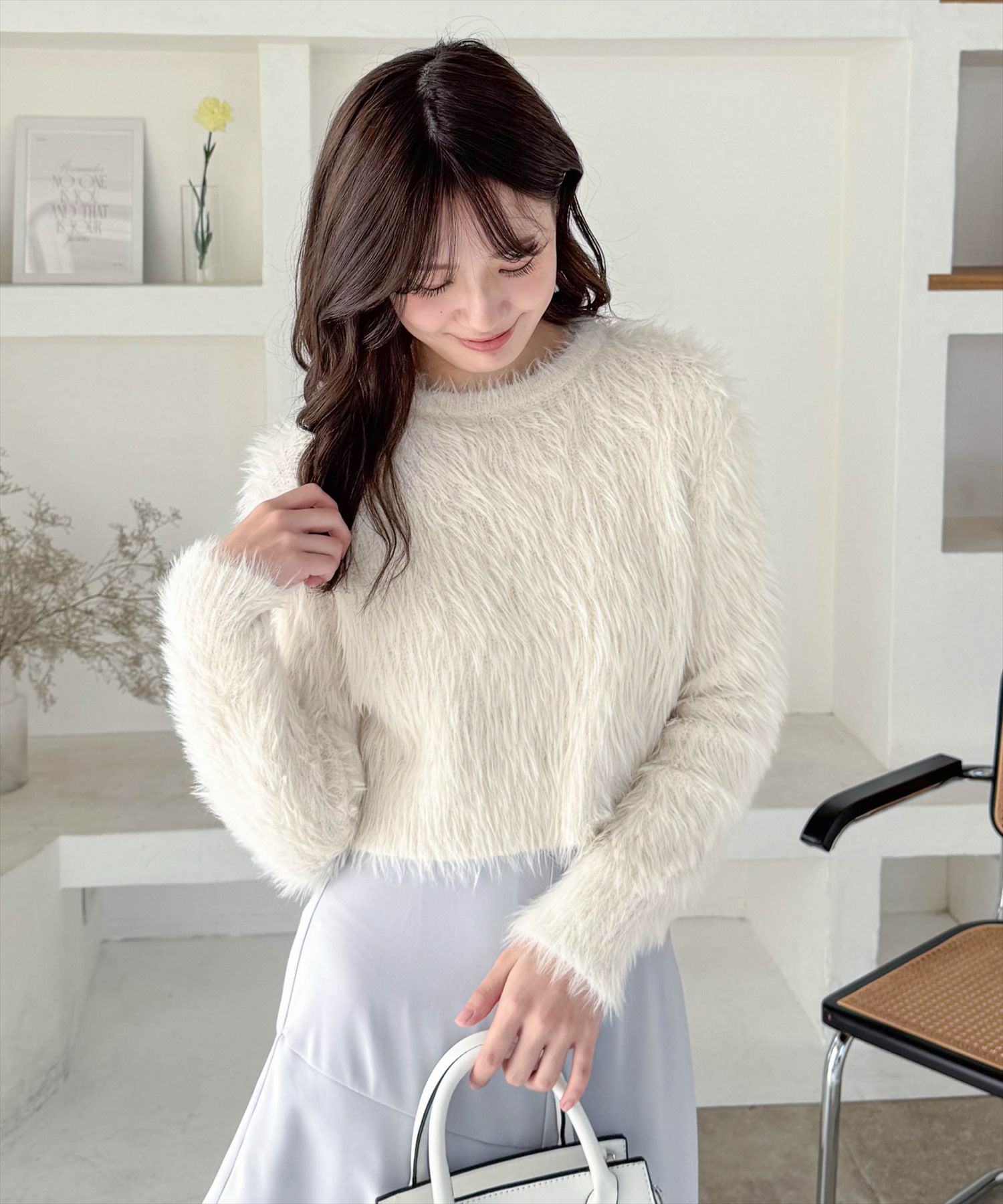 clear ロングフェザー丸首ニットトップス[CL8507]