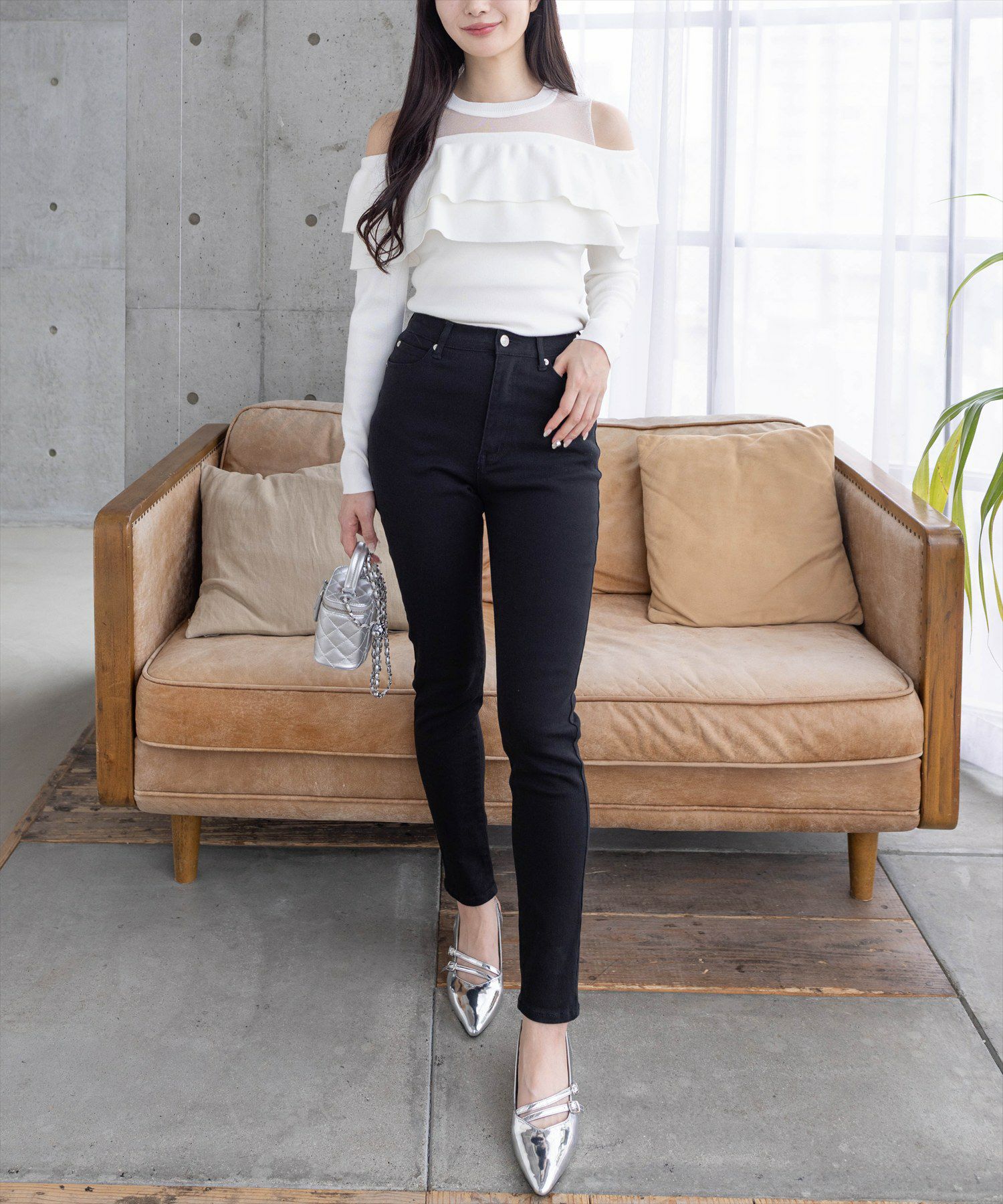 CLEAR BASIC オープンショルダー長袖ニットトップス[CL9042]