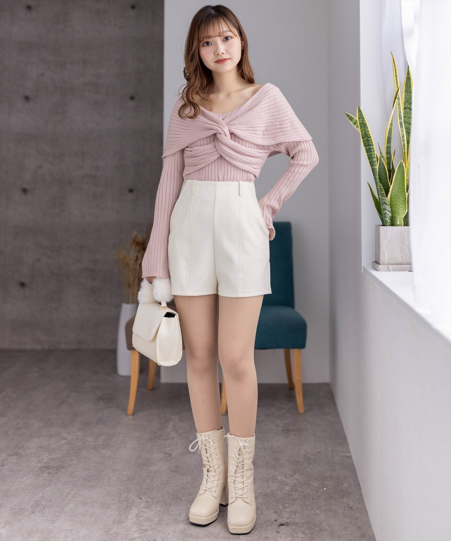 clear 2wayワンショル&ボートネックフェザーニットトップス[CL8535]