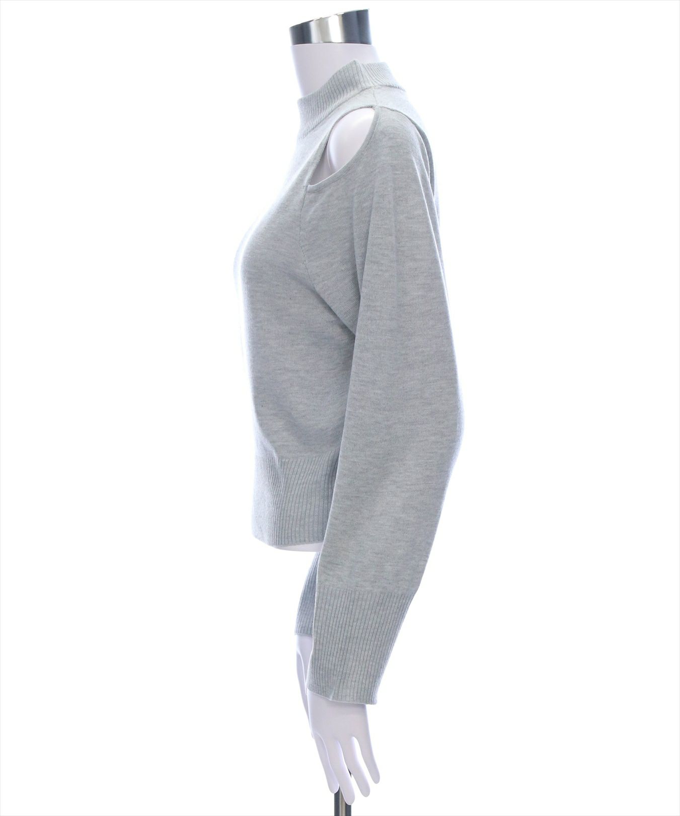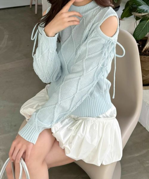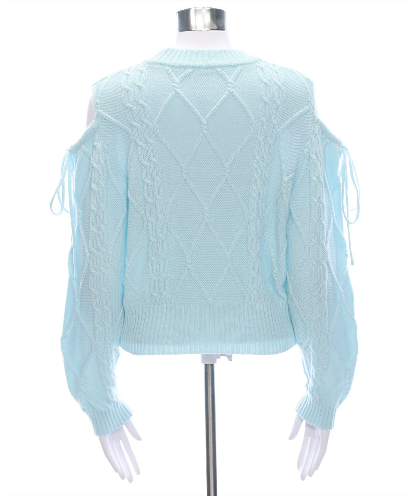 clear オープンショルダーケーブル編みニットトップス[CL8924]