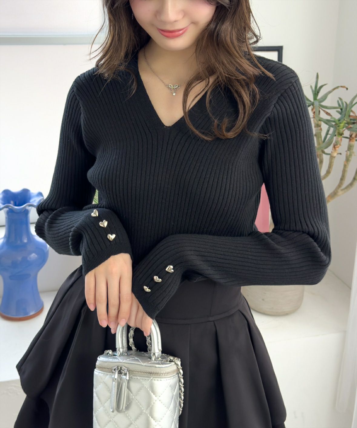 CLEAR BASIC ハートボタンVネックニットトップス[CL8979]