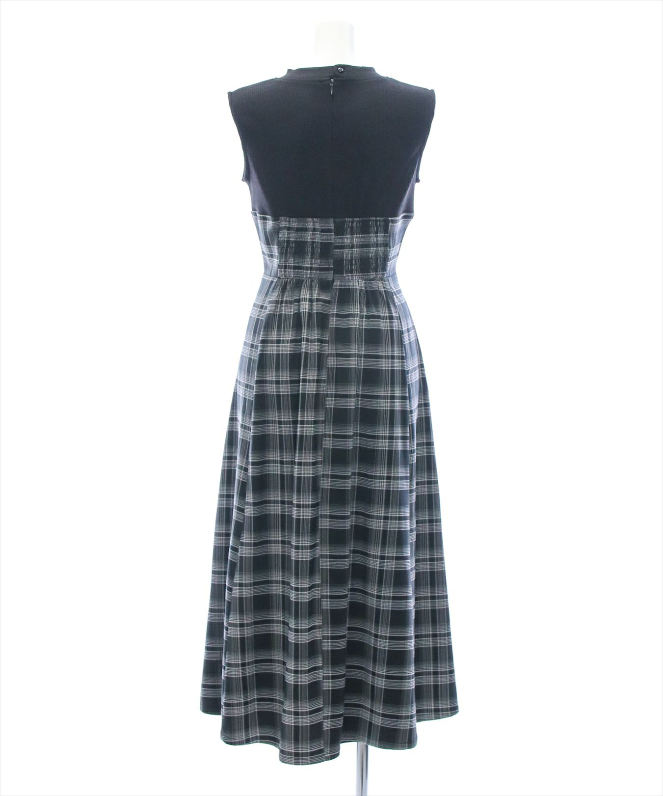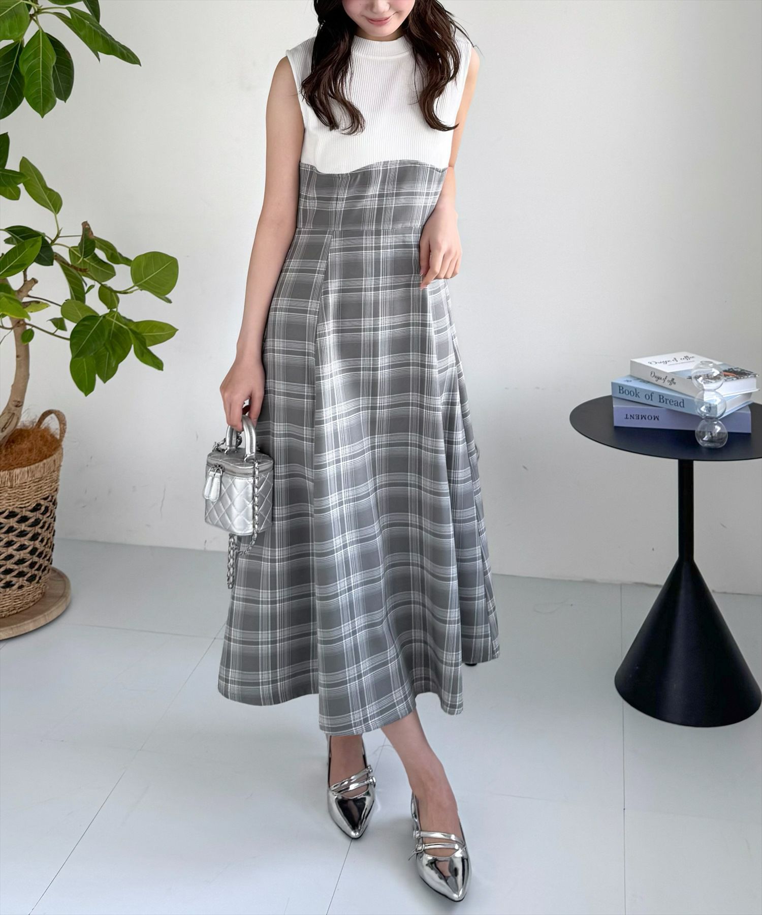 CLEAR BASIC チェック柄布帛ドッキングノースリーブワンピース[CL8948]