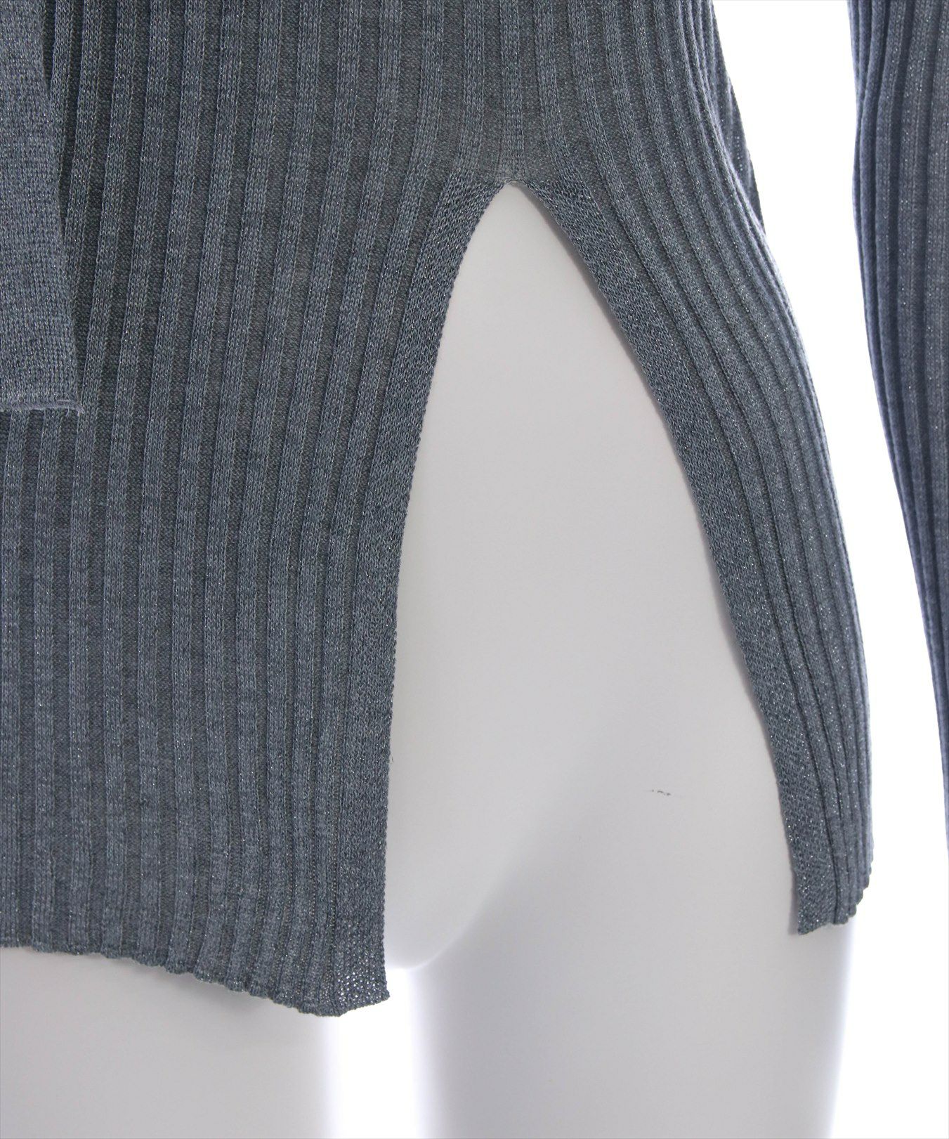clear スカーフ付きVネックラメニットトップス[CL8955]