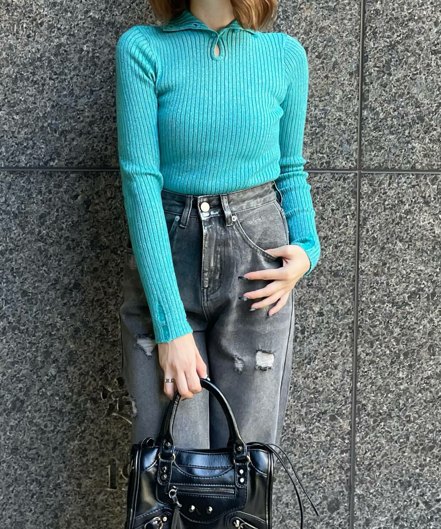 clear 涙開き袖ダメージラメニットトップス[CL8305]