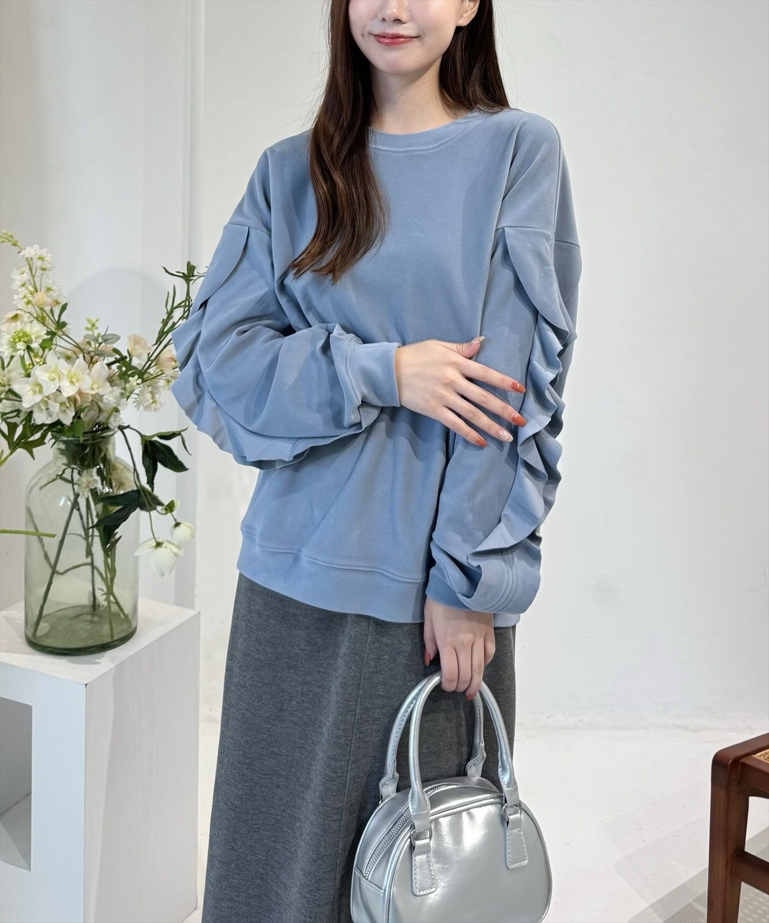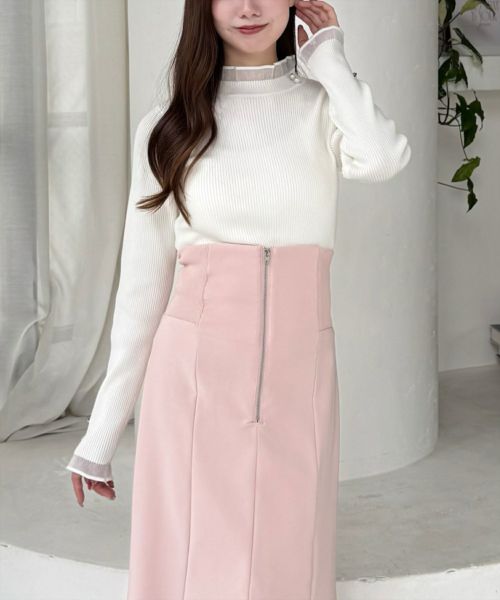 clear シアーフリルネック長袖ニットトップス[CL8385]