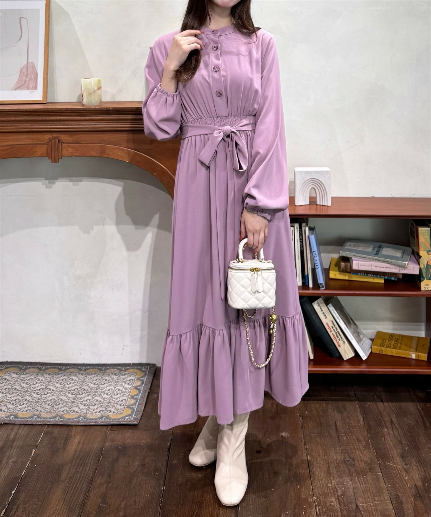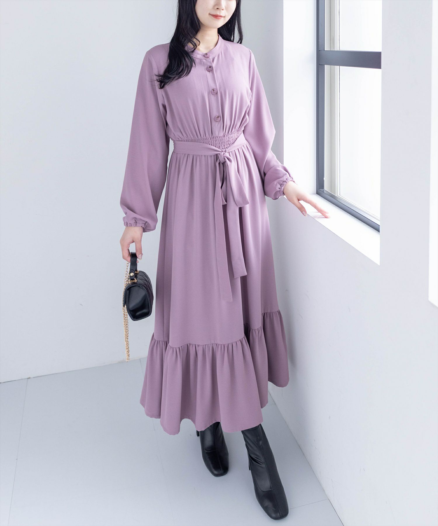 clear ウエストリボン裾切替長袖ロングワンピース[CL8817]