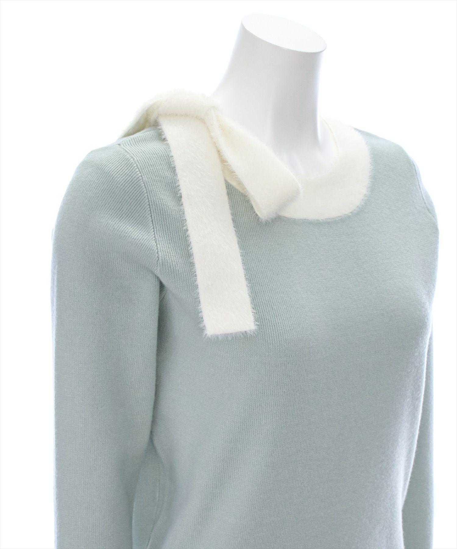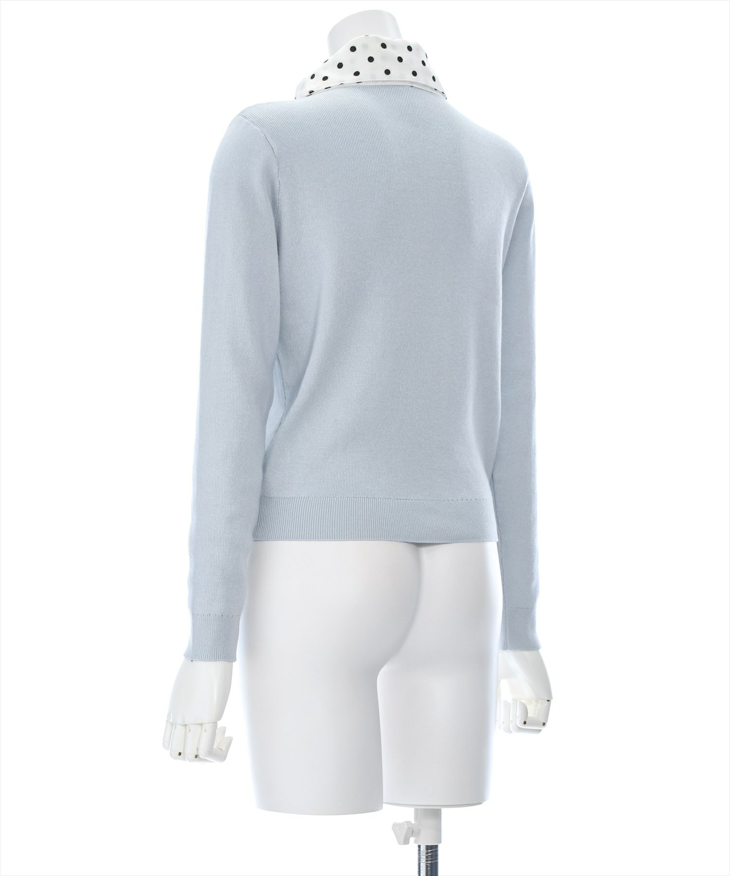 clear ボウタイドットリボンドッキングニットトップス[CL8564]
