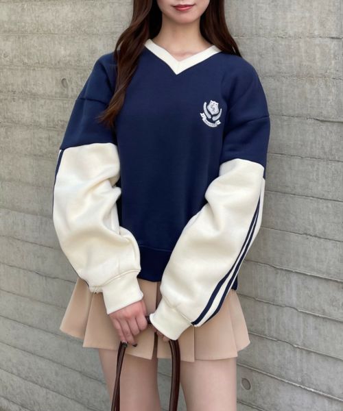 clear ライン入り配色ワンポイント刺繍スウェット[CL8679]