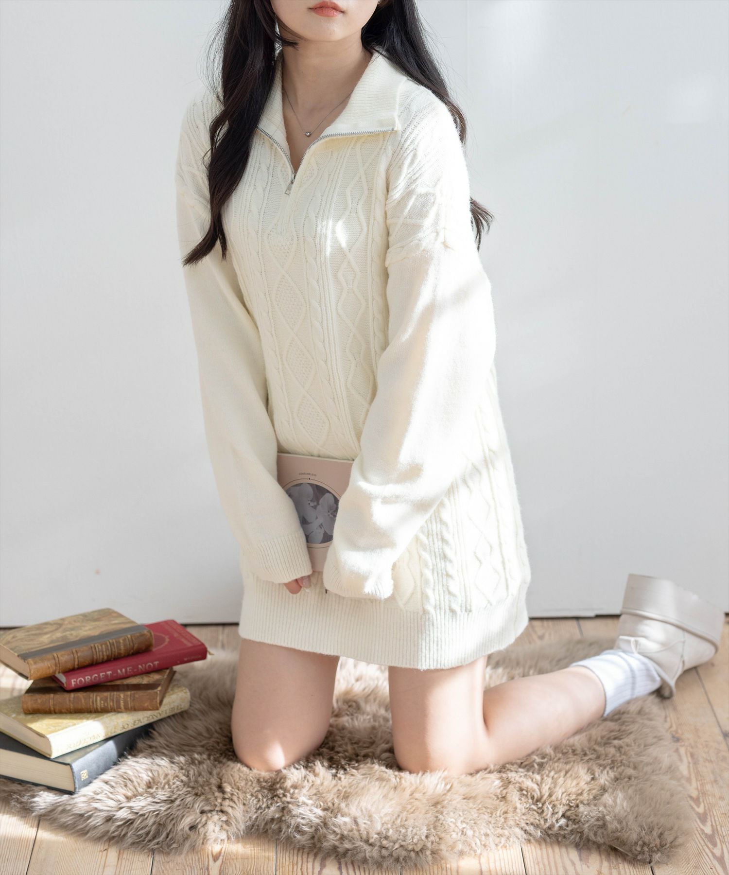 STAY MOTION≪WEB限定/AW新作≫ケーブル編みジップニットワンピース[ST1067]