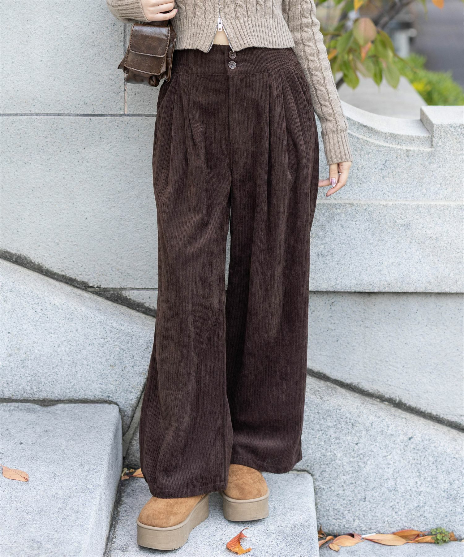CLEAR BASIC≪AW新作≫クルミボタンハイウエストワイドパンツ[CL9439]