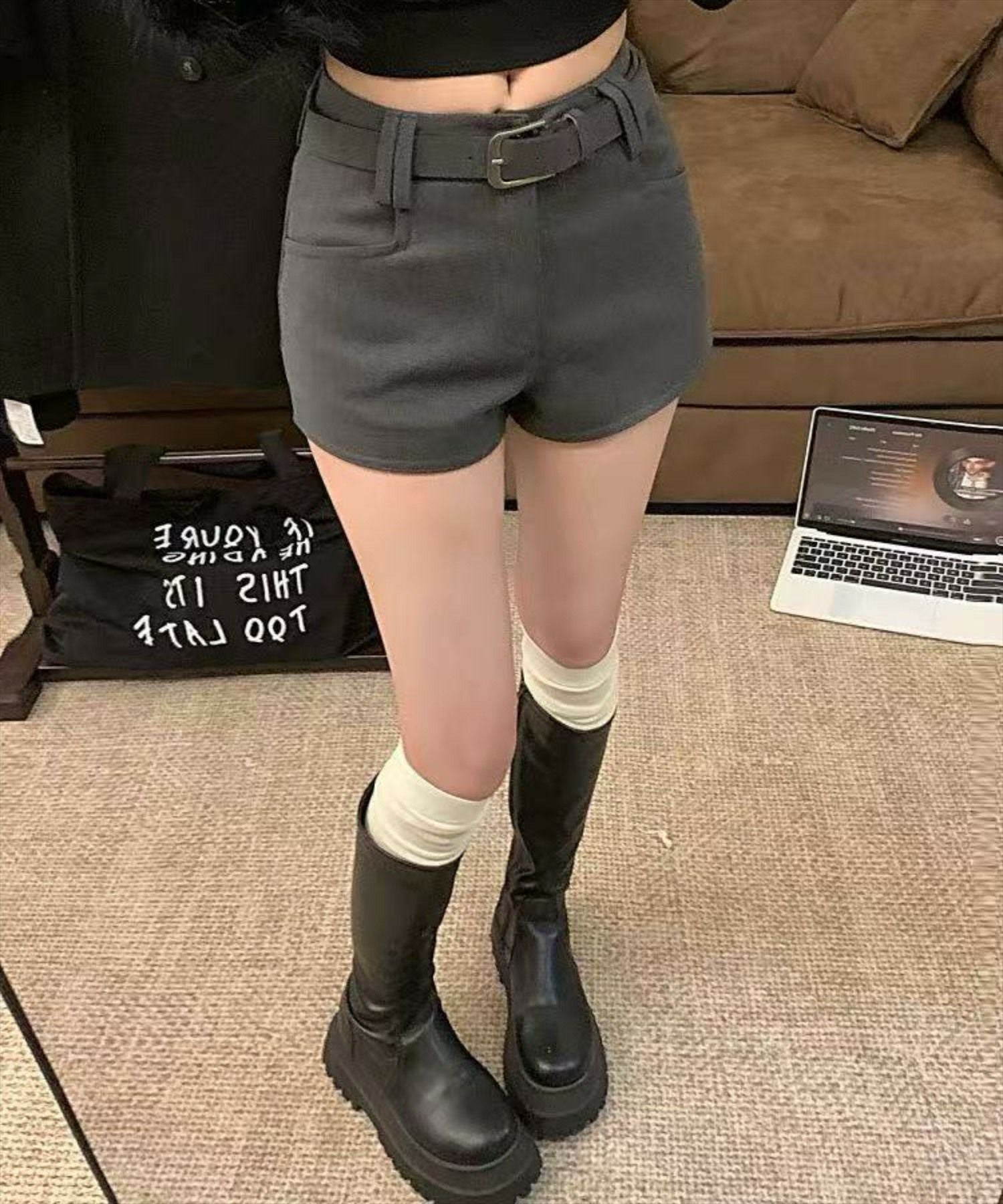 大人っぽさをプラスするベルト付き!ベルト付きタイトショートパンツ