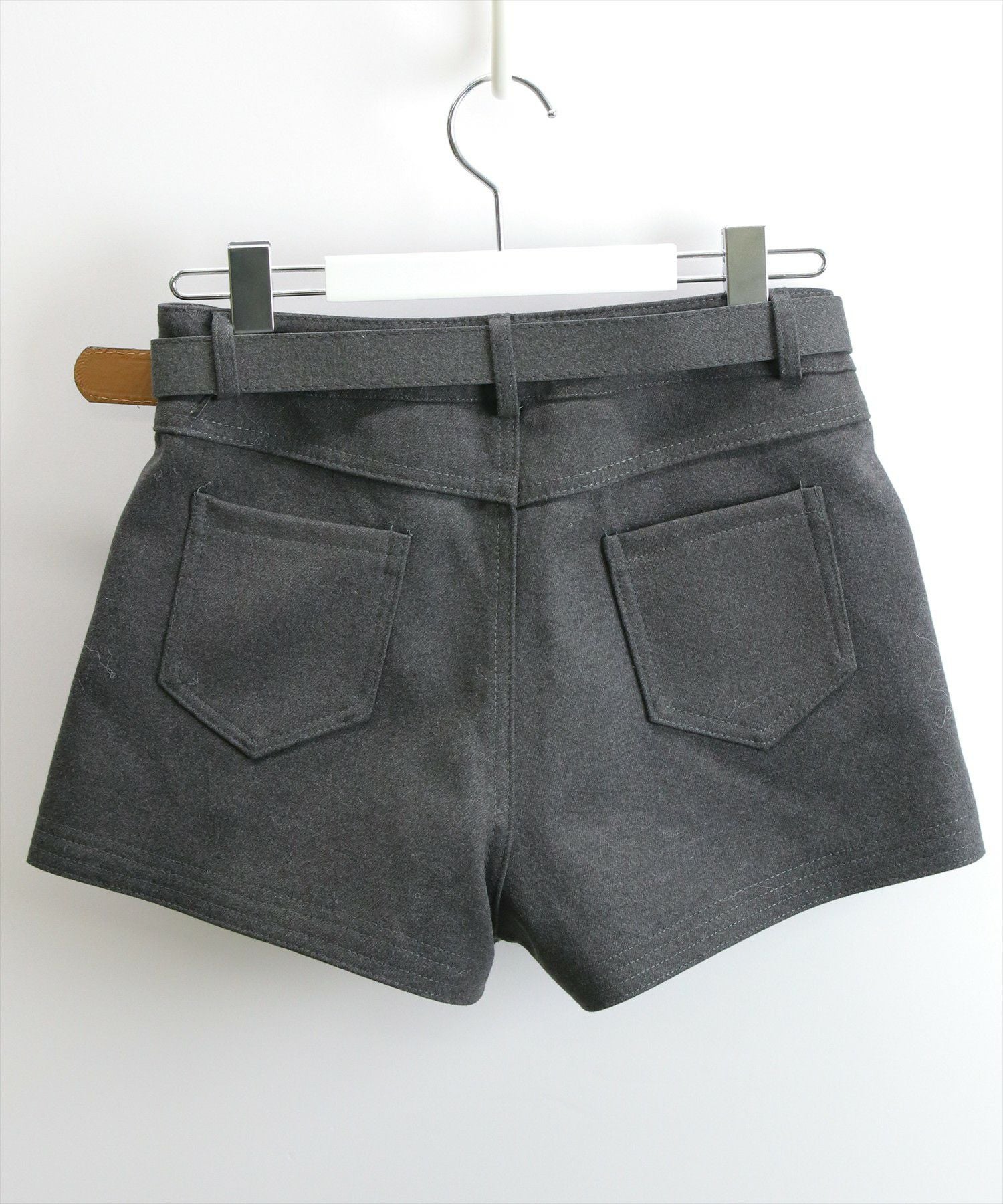 すっきりとしたタイトシルエットが大人っぽい印象のショートパンツです。ウエストには共布ベルトを付け、スタイルを引き締めつつさりげないアクセントをプラスしています。シンプルながらもきちんと感があり、トップスを選ばず着回しやすいデザインです。