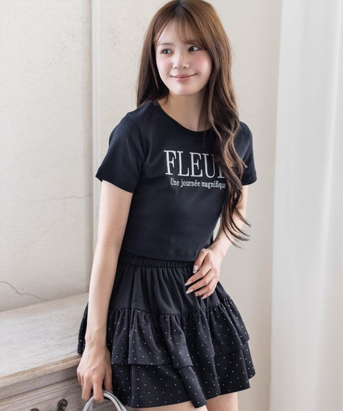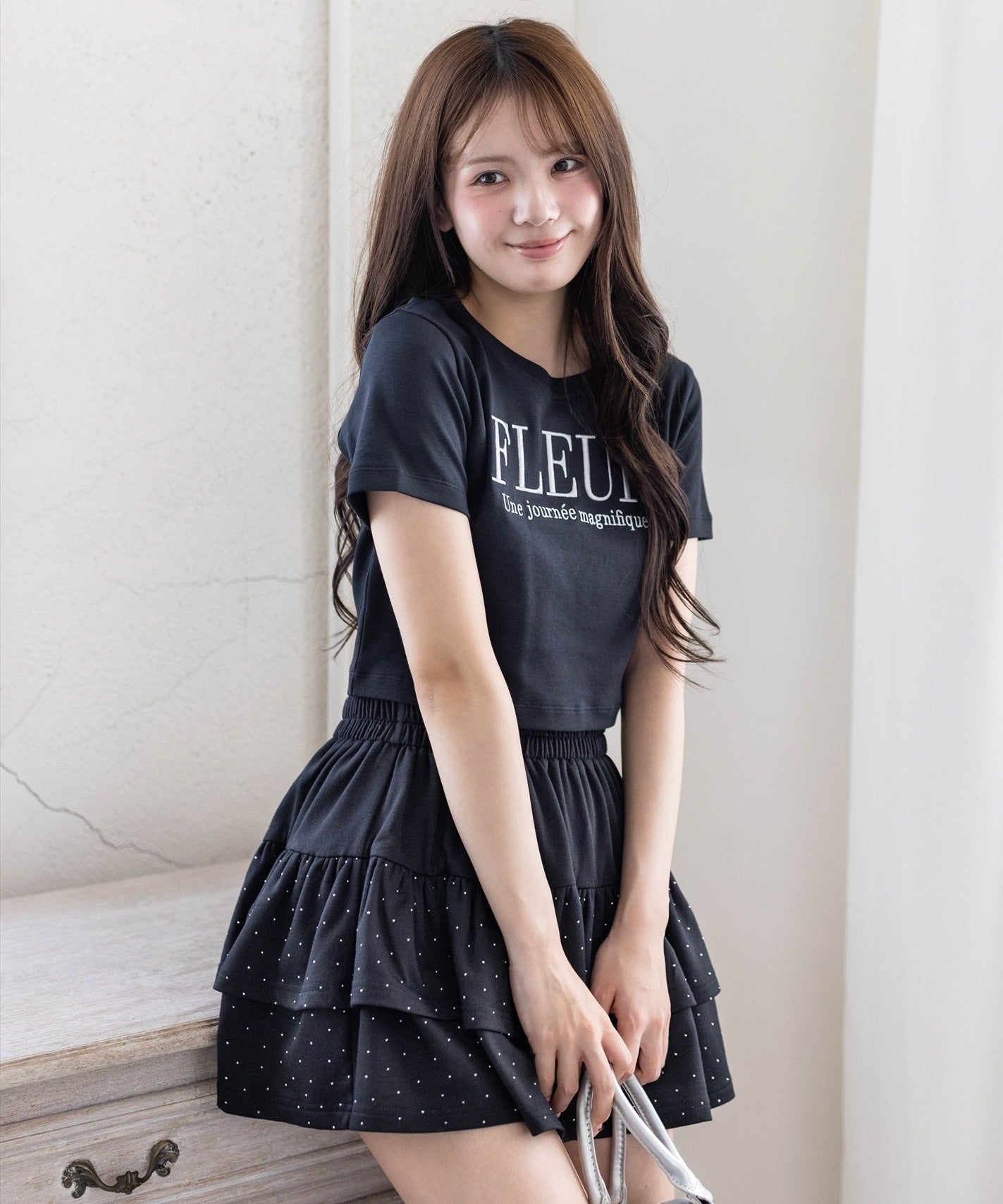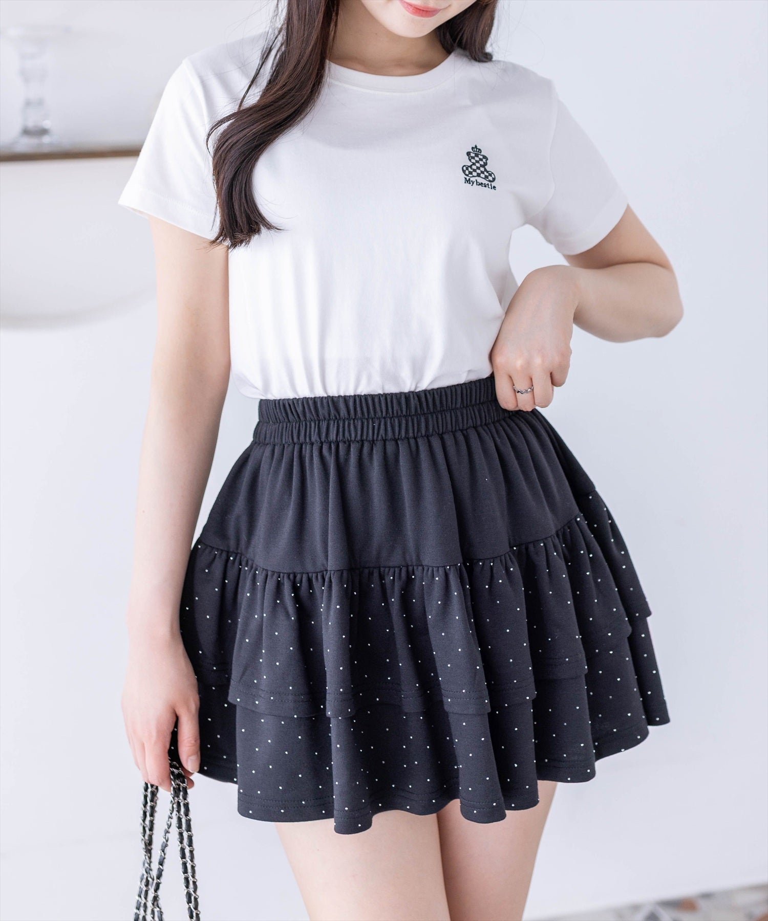 clear≪新色追加≫ラインストーン2段ティアードスウェットミニスカート(セット可)[CL9600]