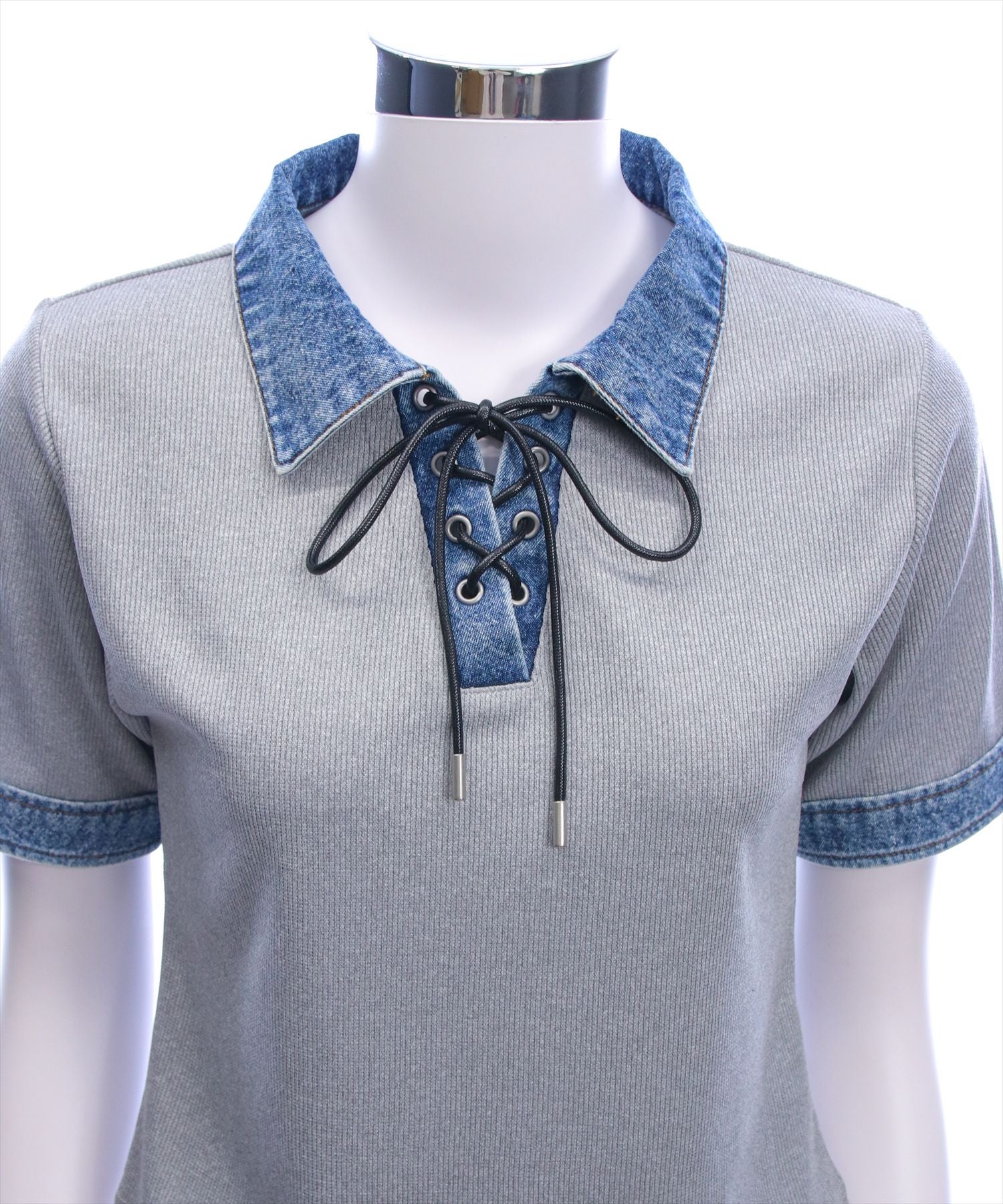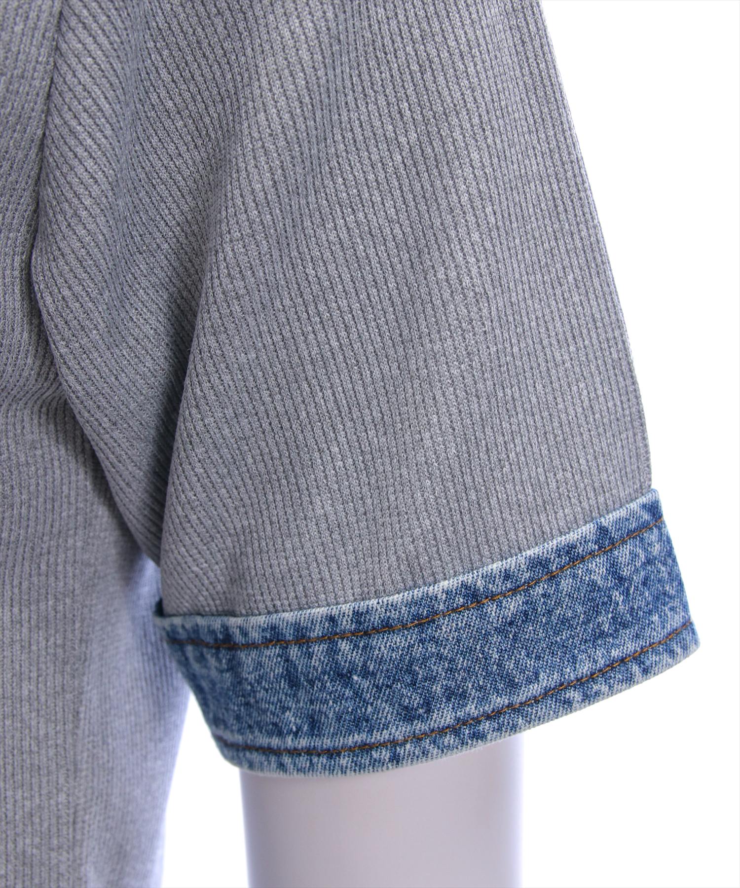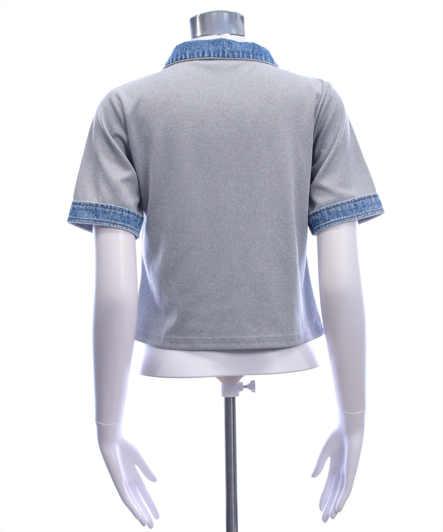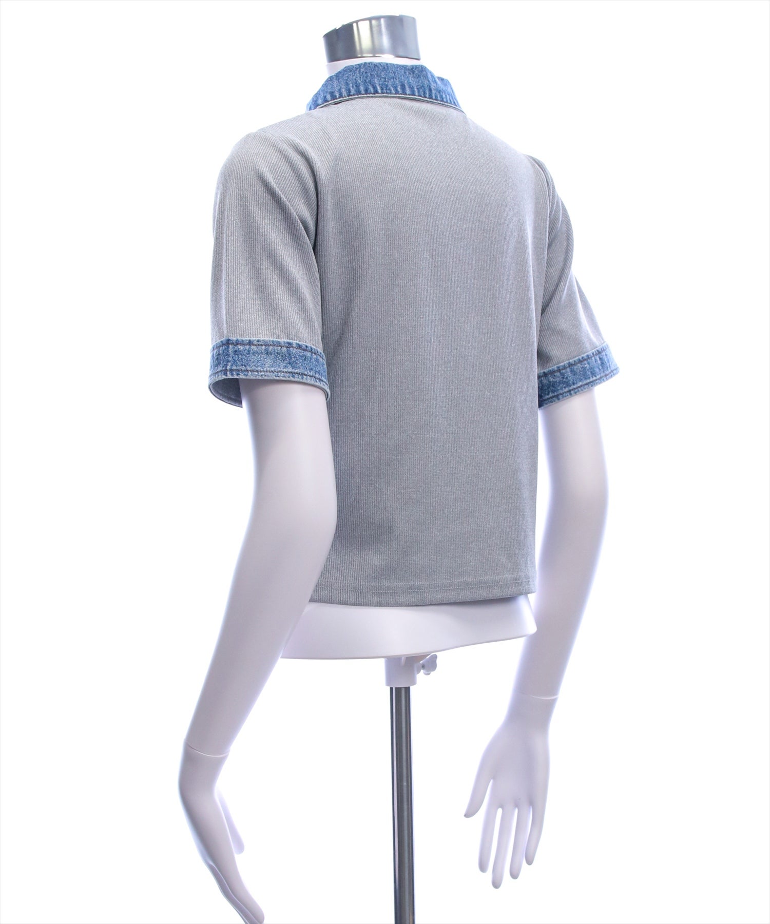 clear≪新作≫襟付デニム切替カットソートップス[CL9862]