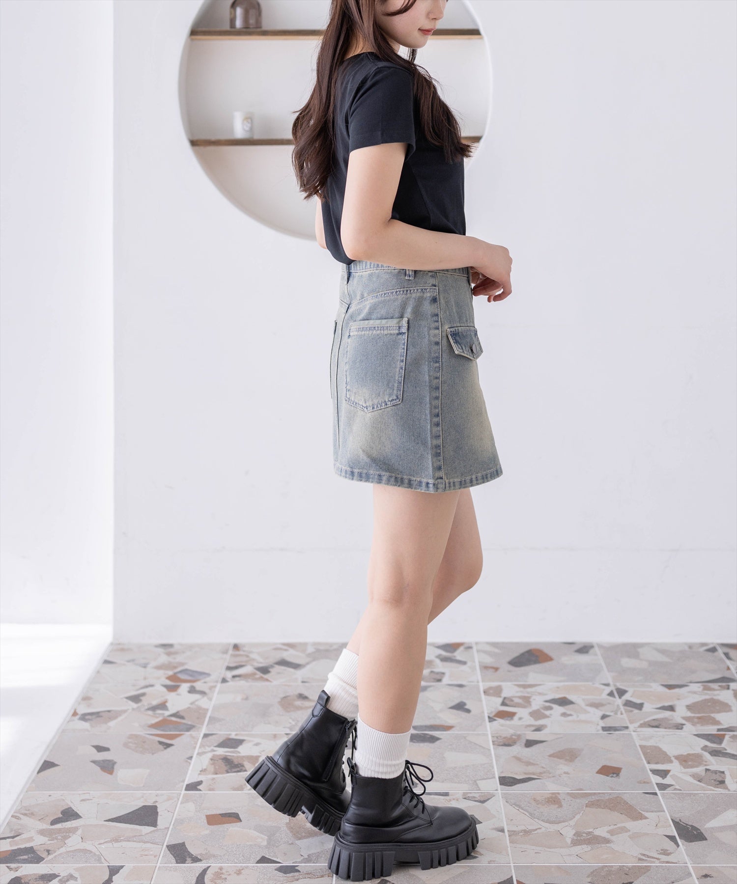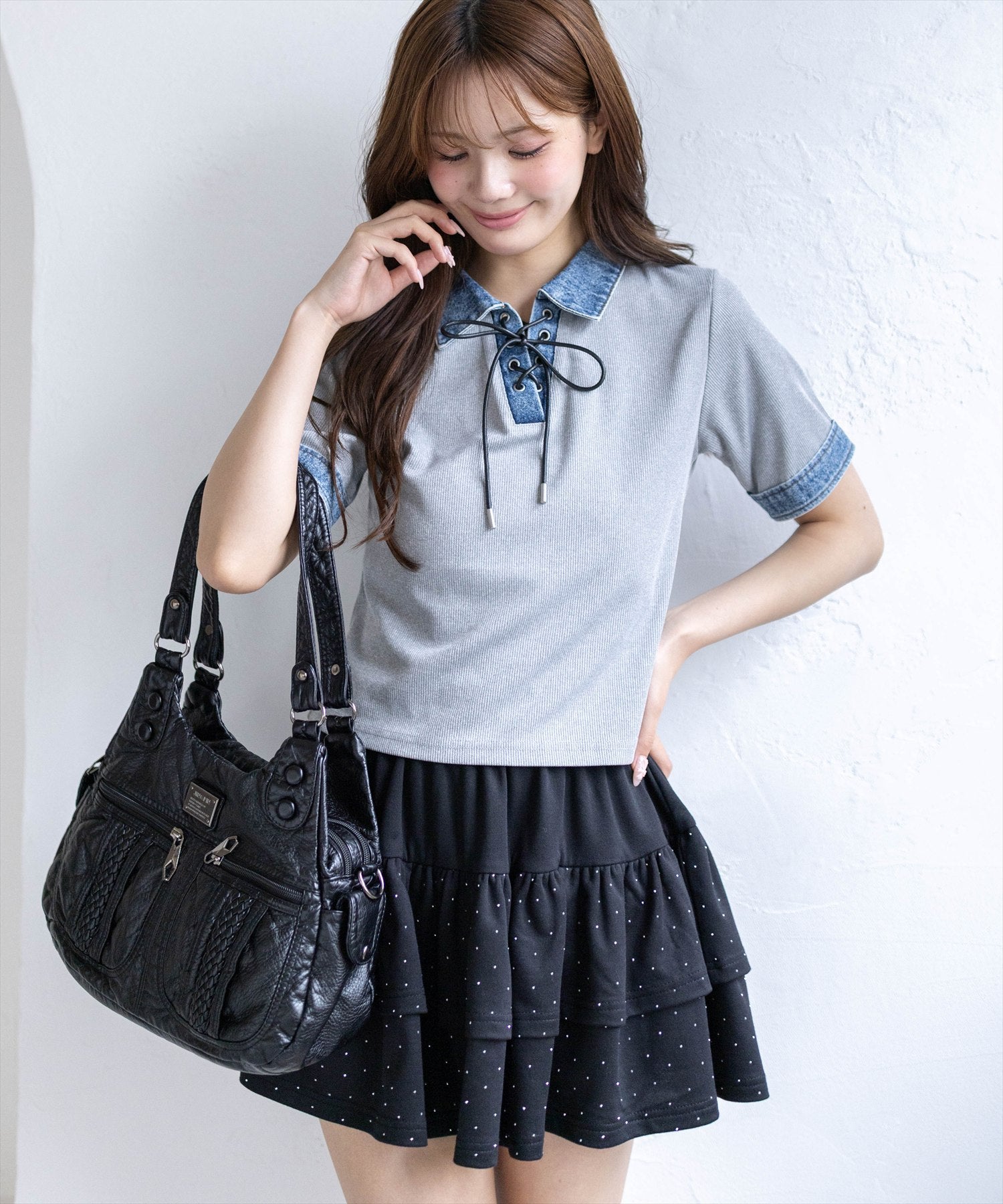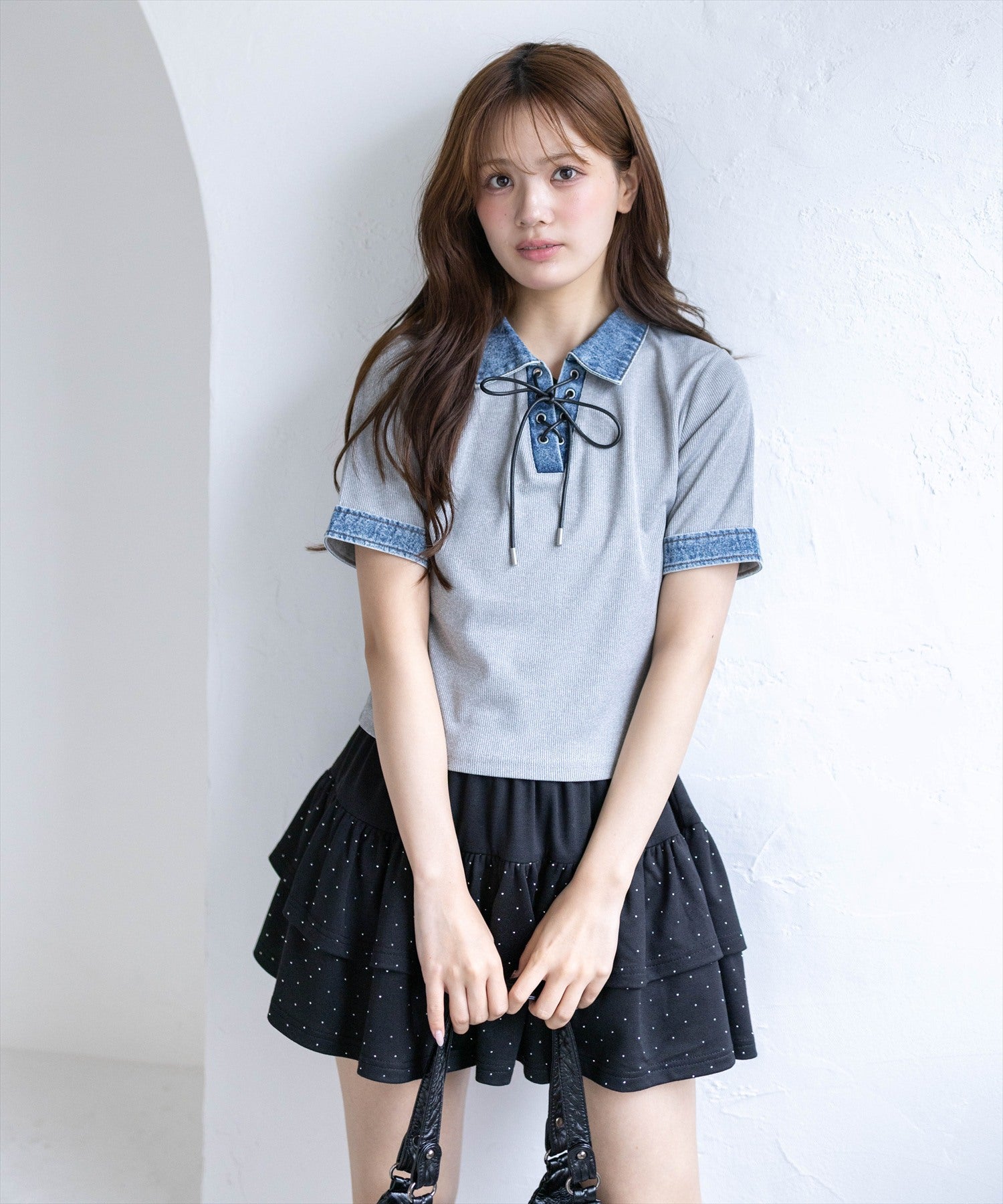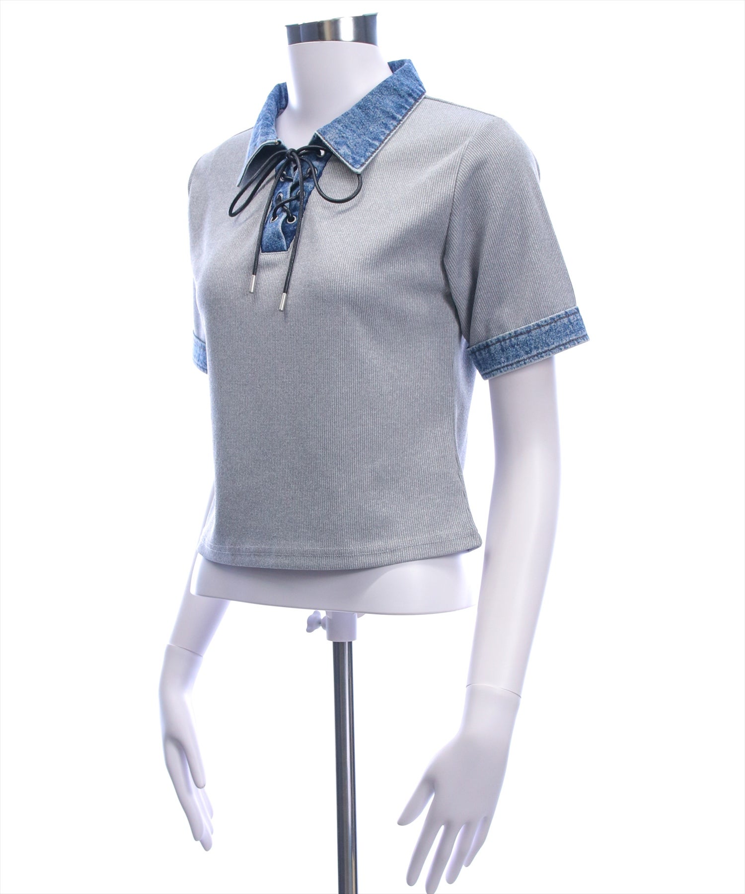 clear≪新作≫襟付デニム切替カットソートップス[CL9862]