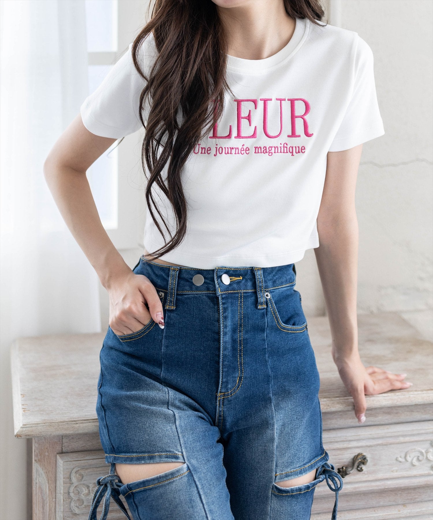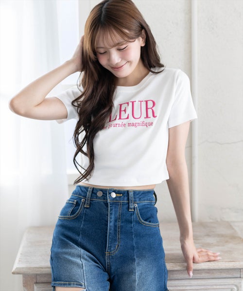 clear≪WEB先行販売/新作≫クロップドサイズ/刺繍ロゴチビT[CL9690]