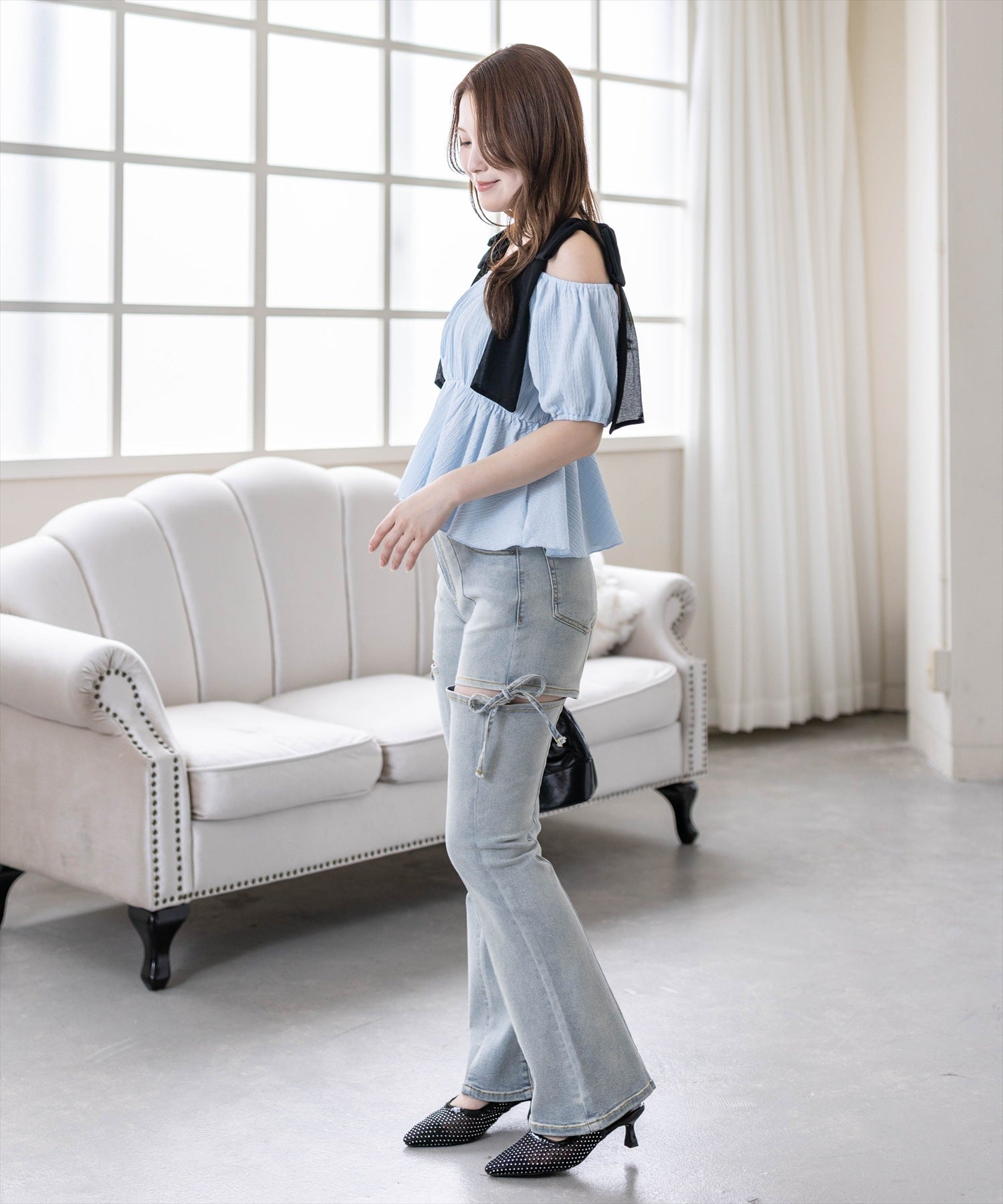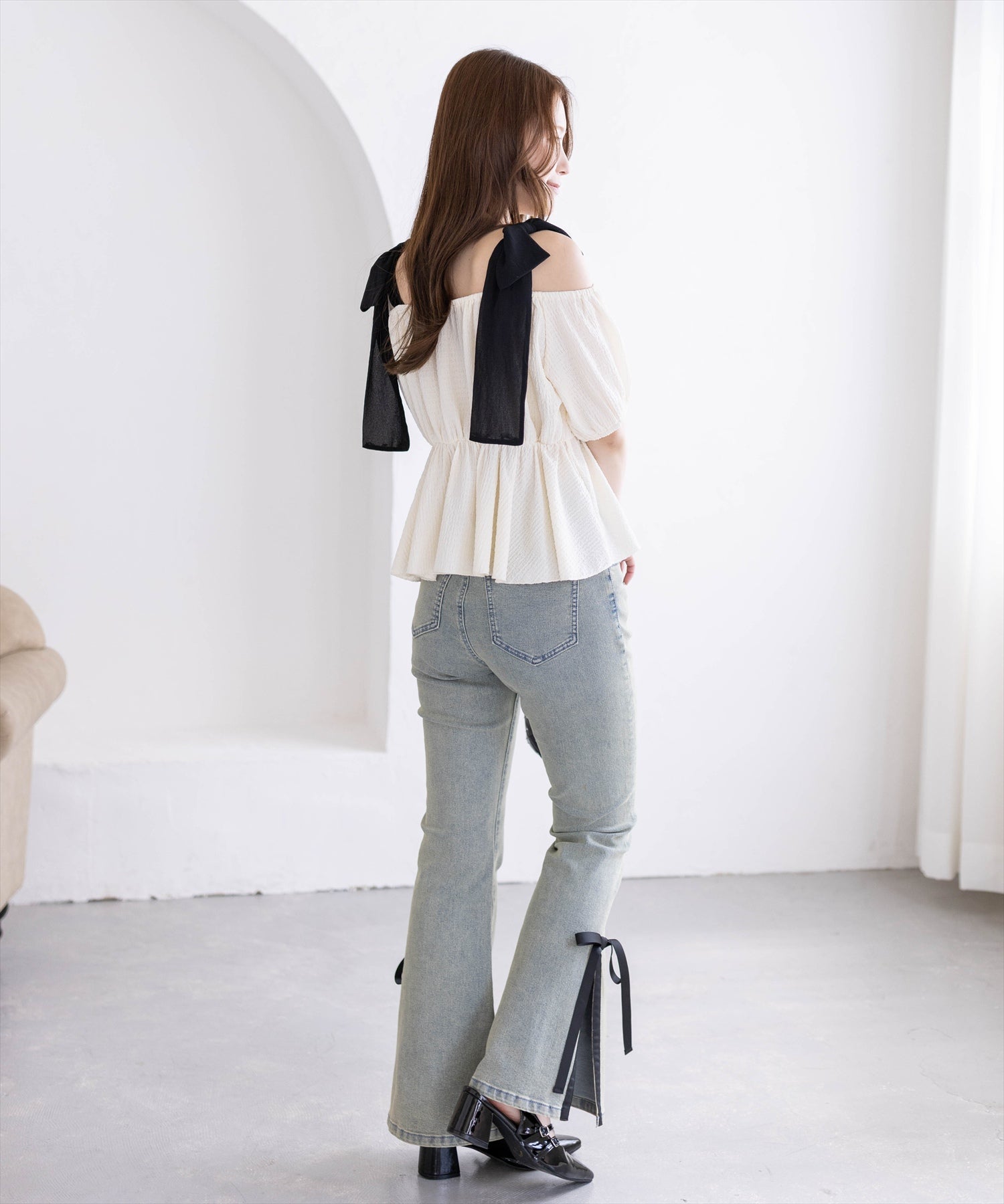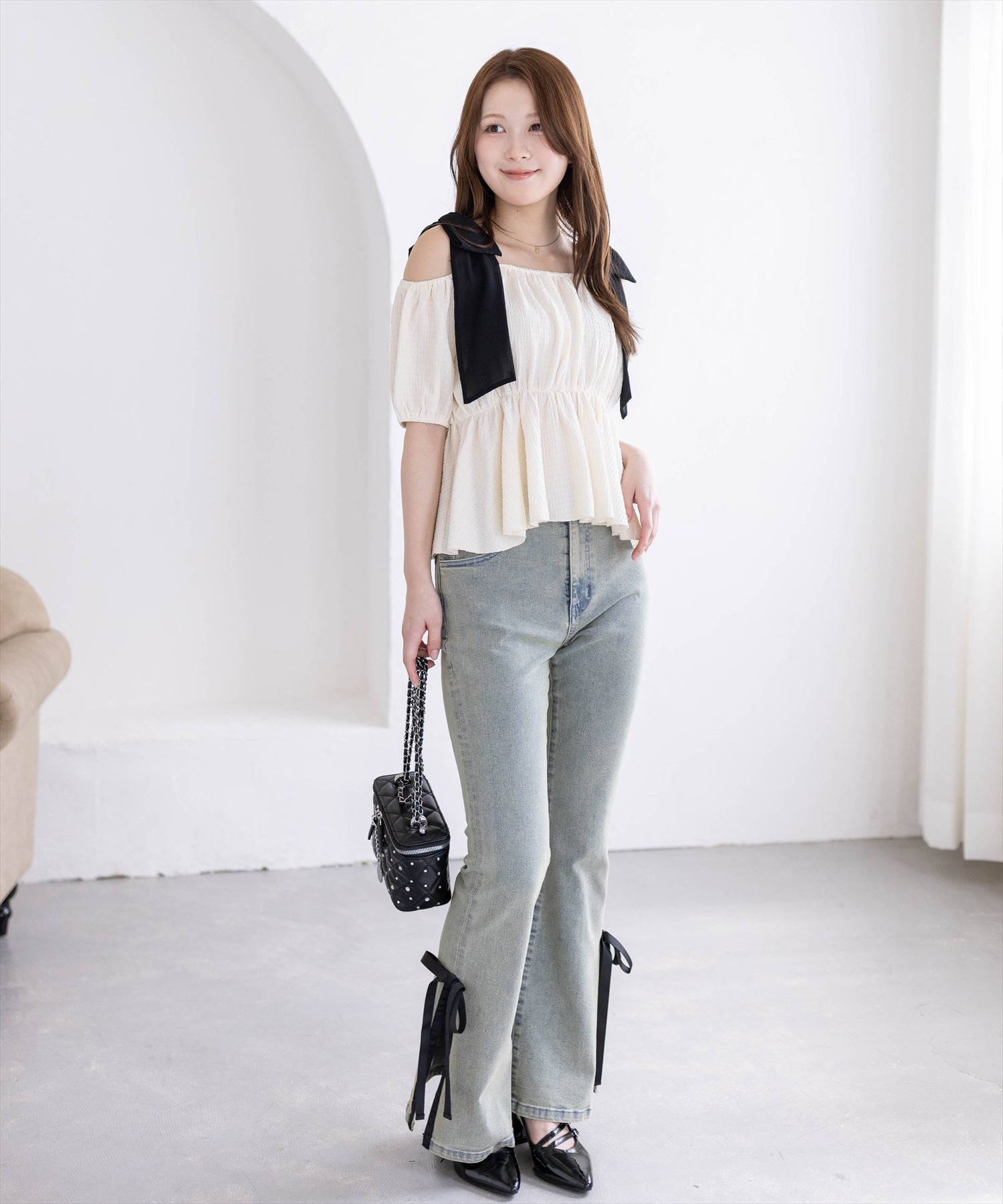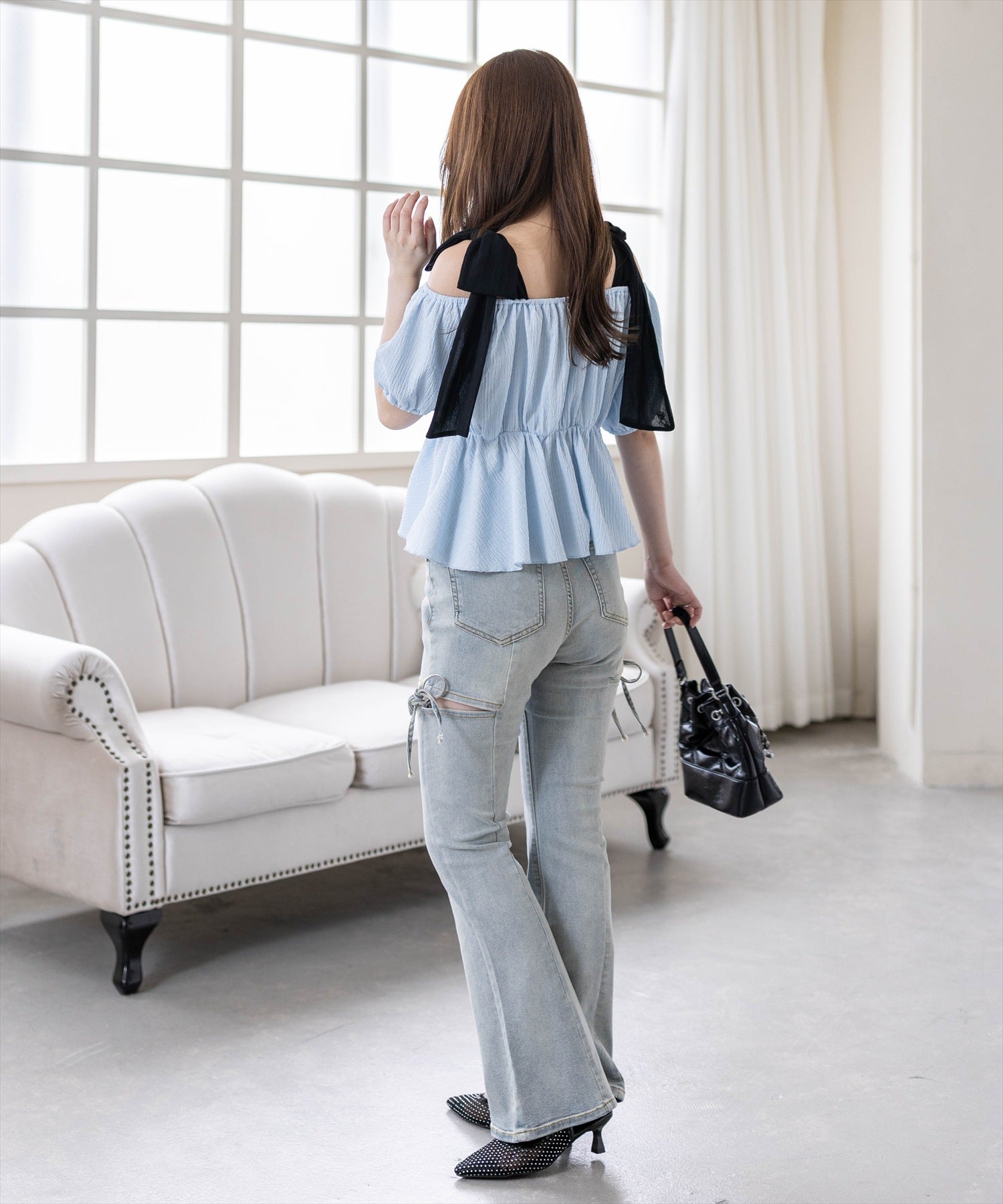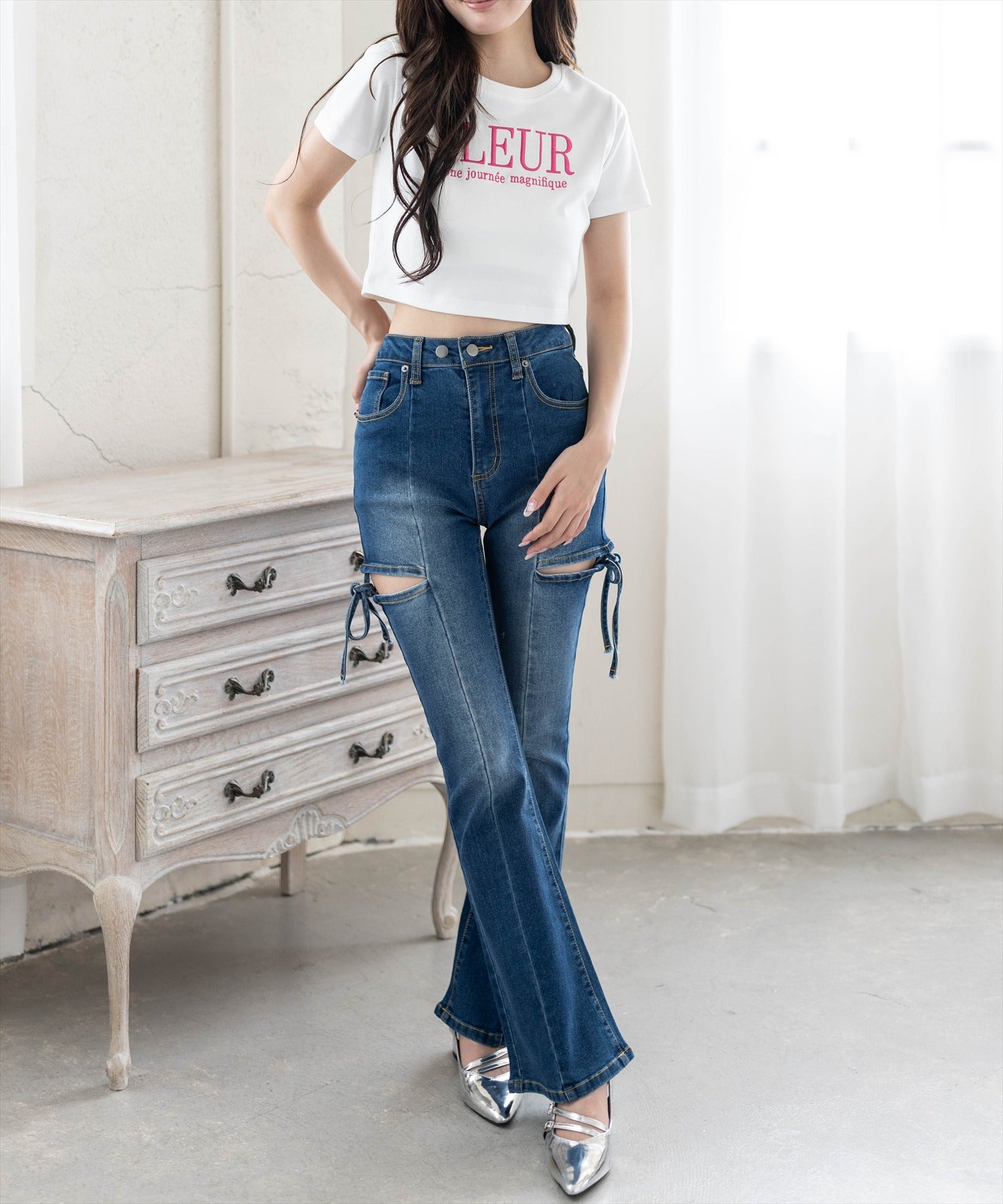 clear≪新作≫サイドスリットリボン付きフレアデニムパンツ[CL9500]