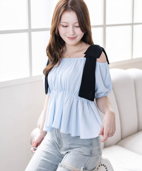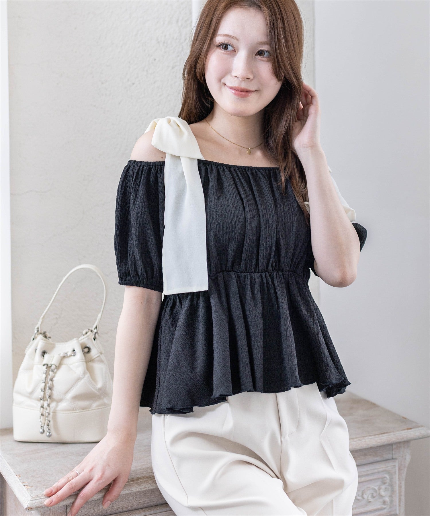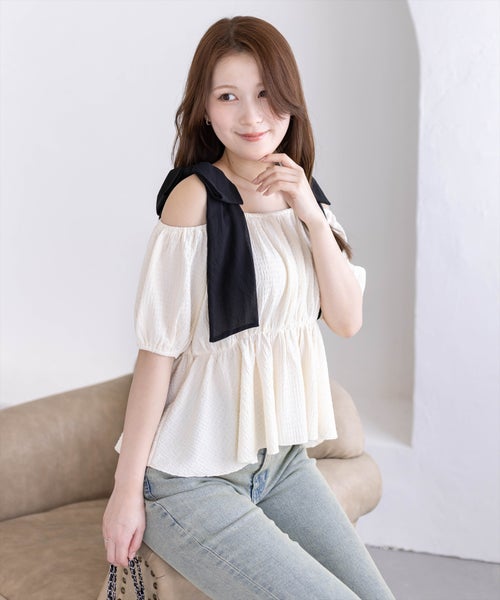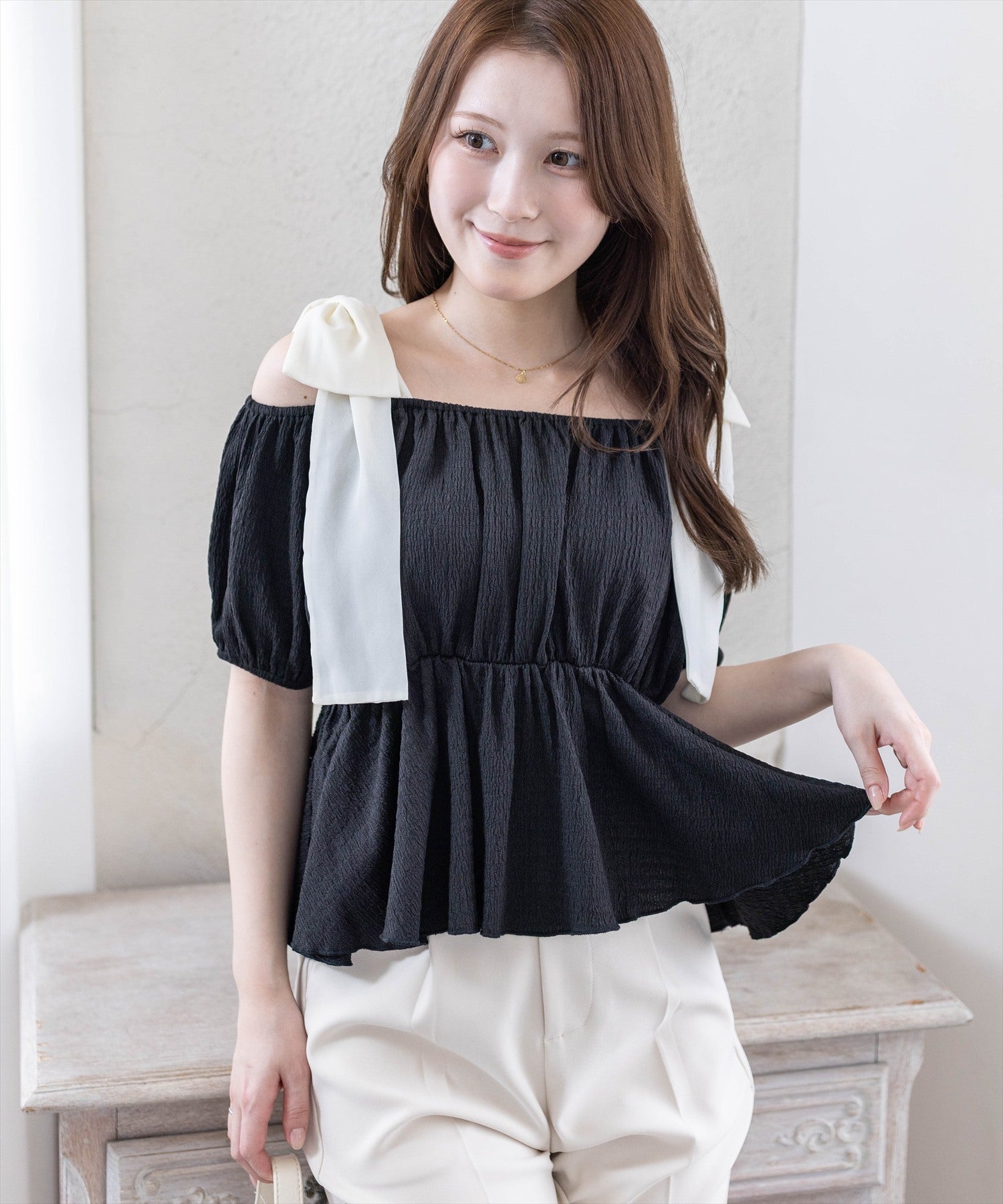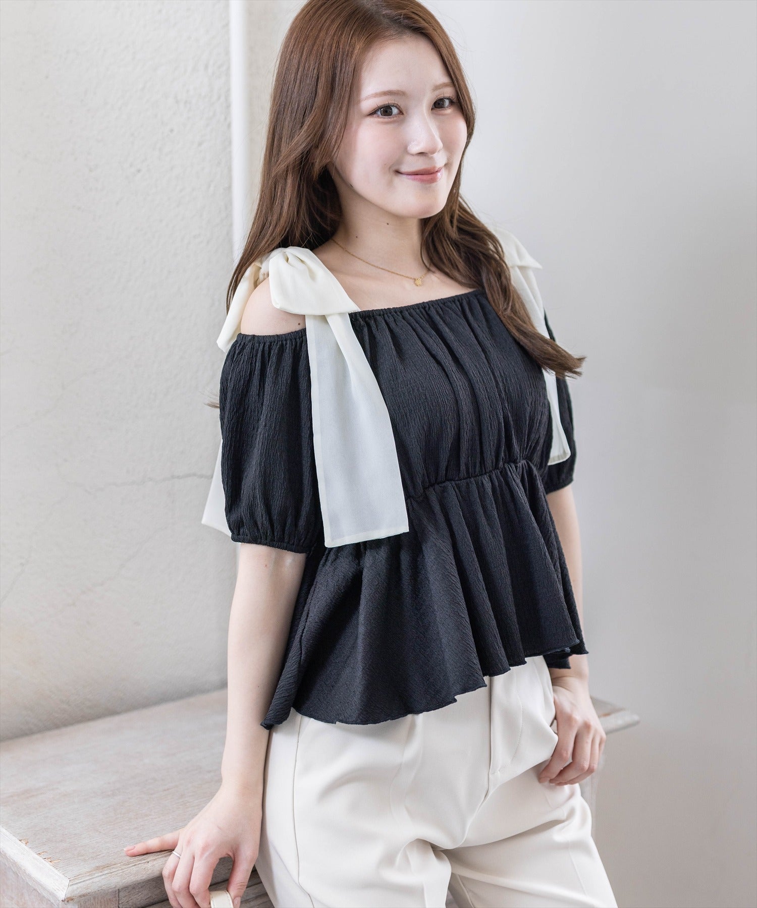 clear≪新作≫配色リボンオフショルブラウス[CL9674]
