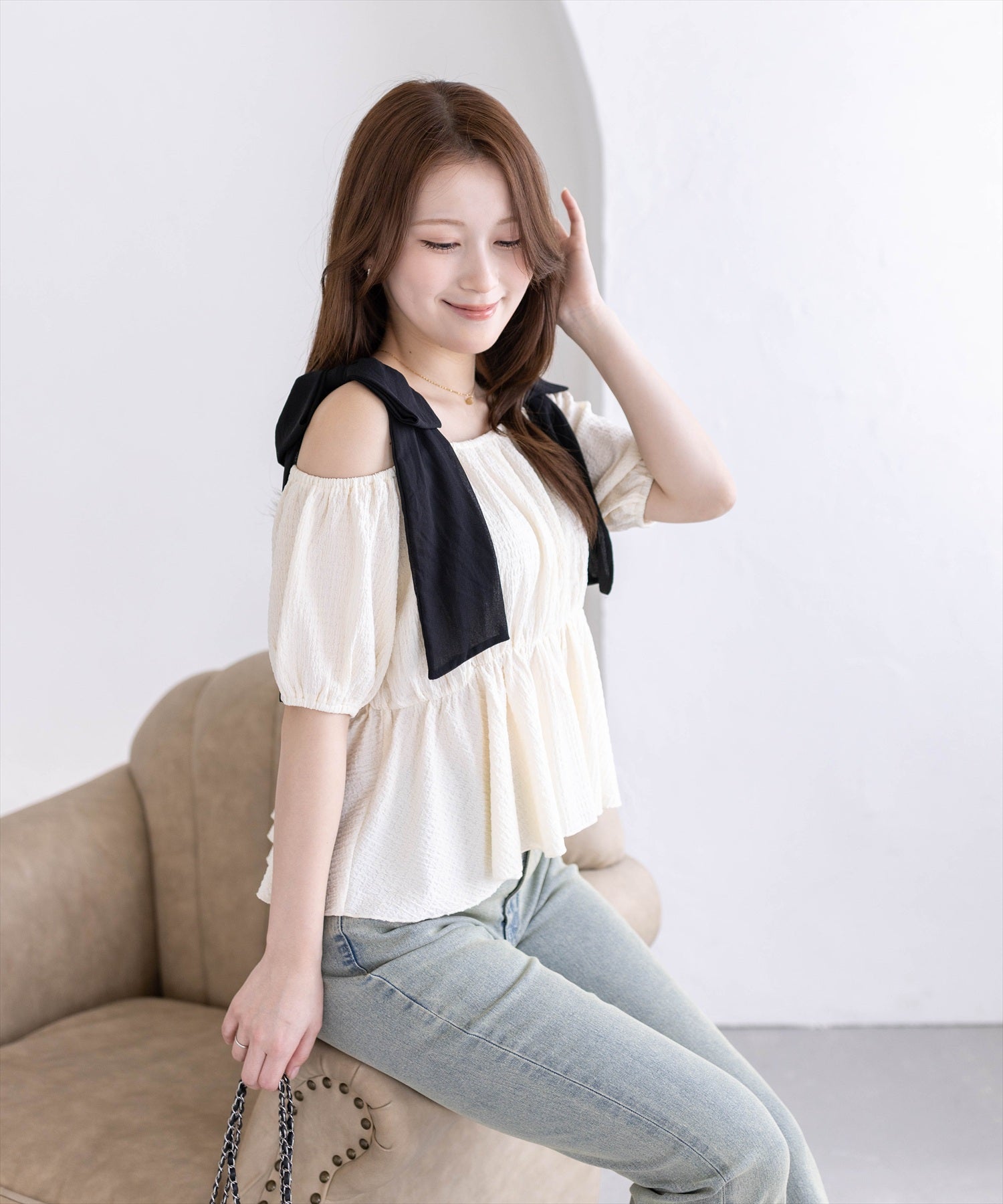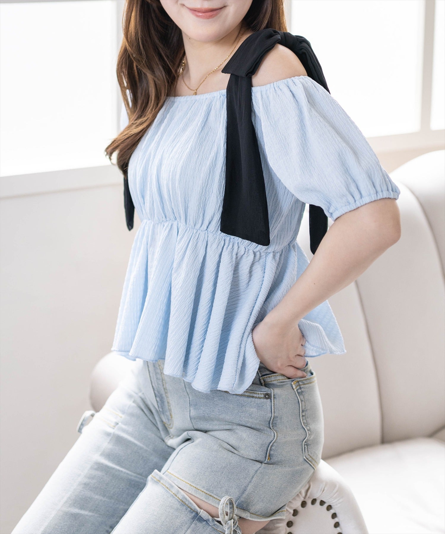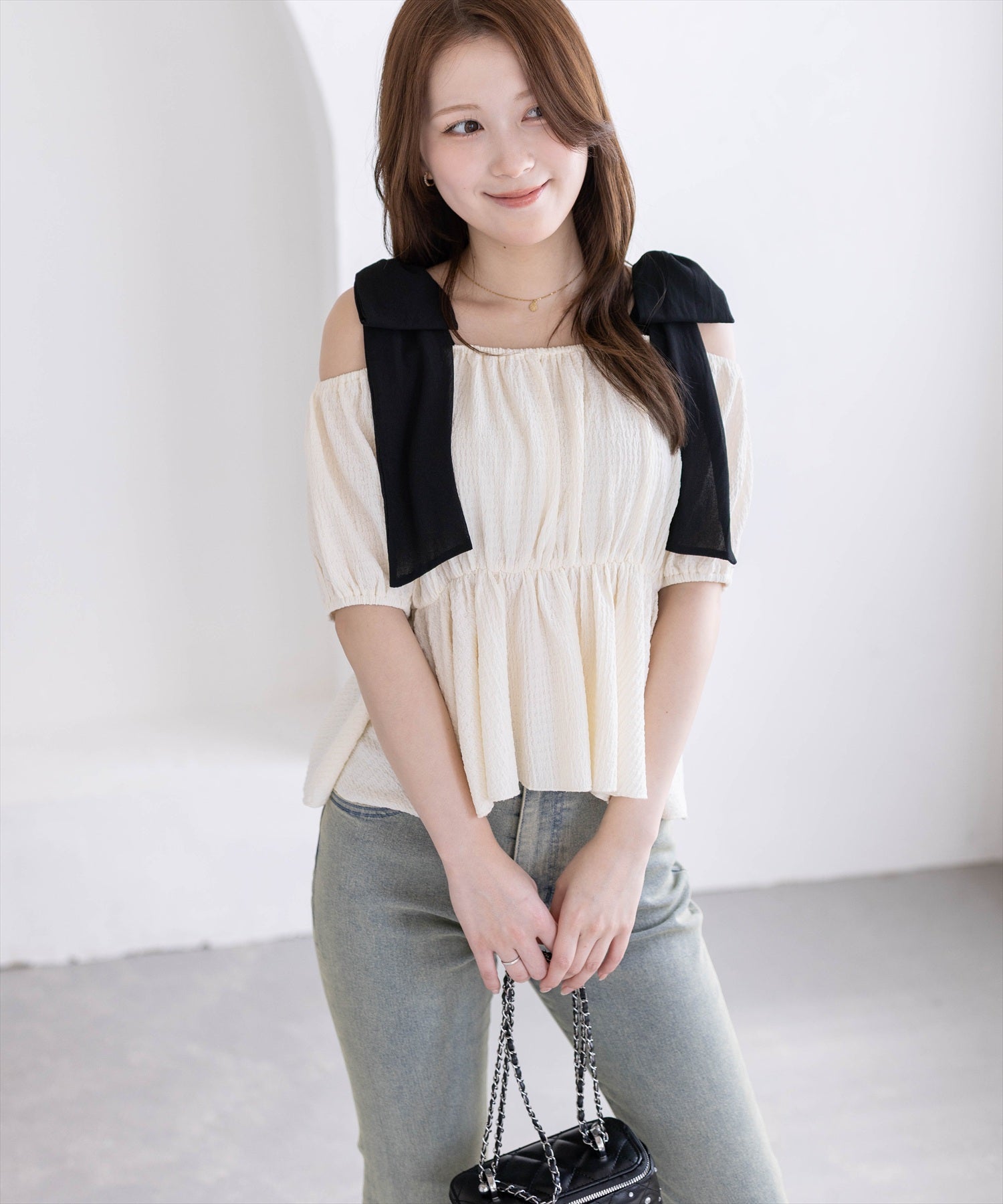 clear≪新作≫配色リボンオフショルブラウス[CL9674]