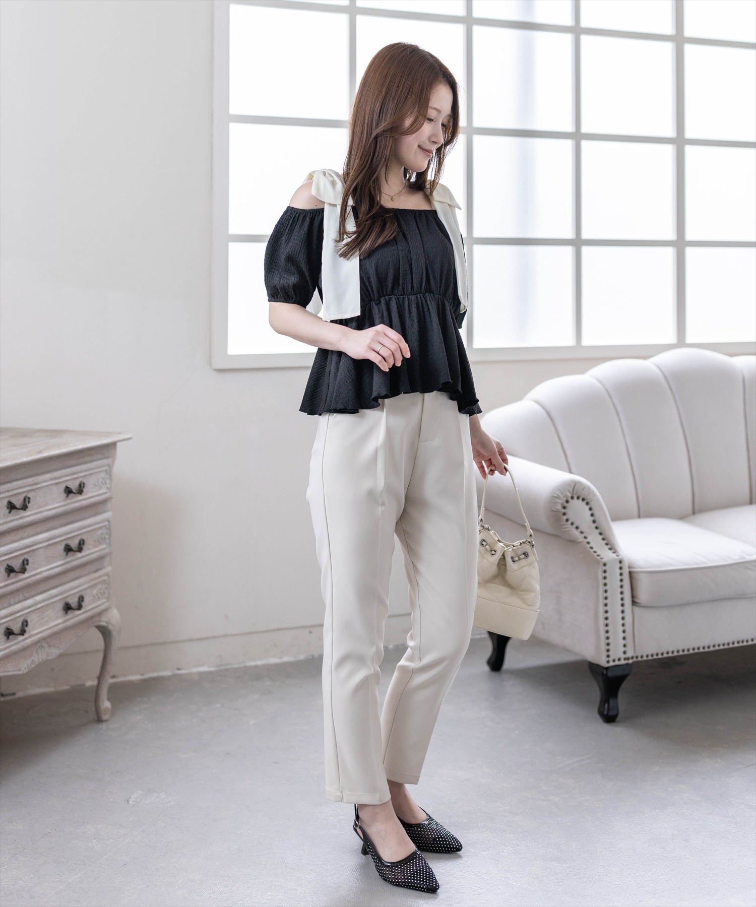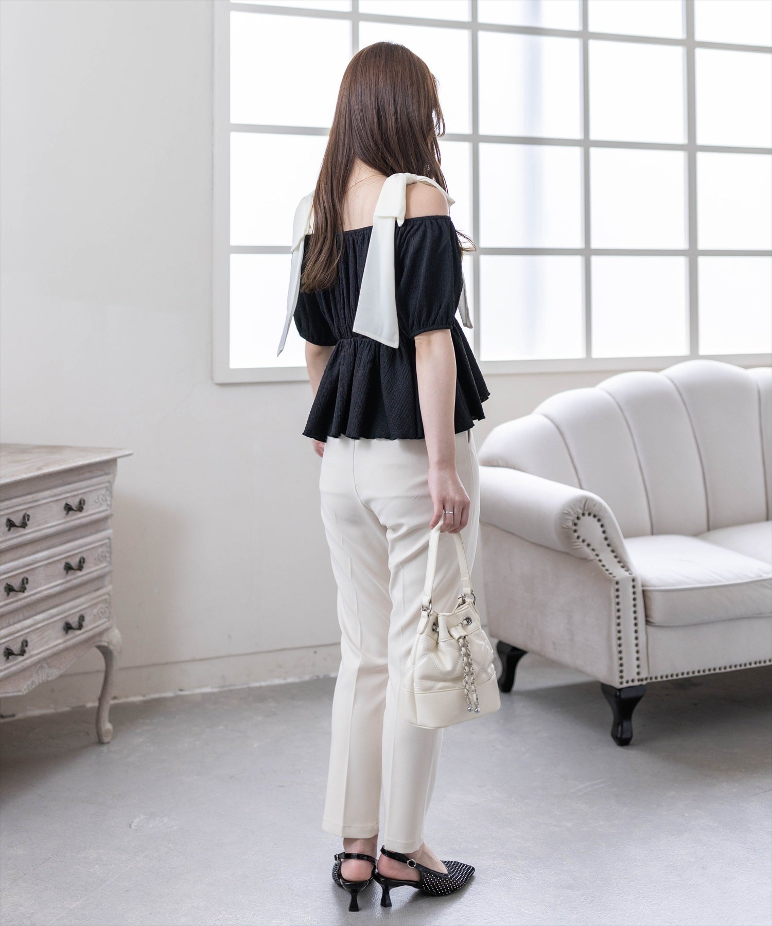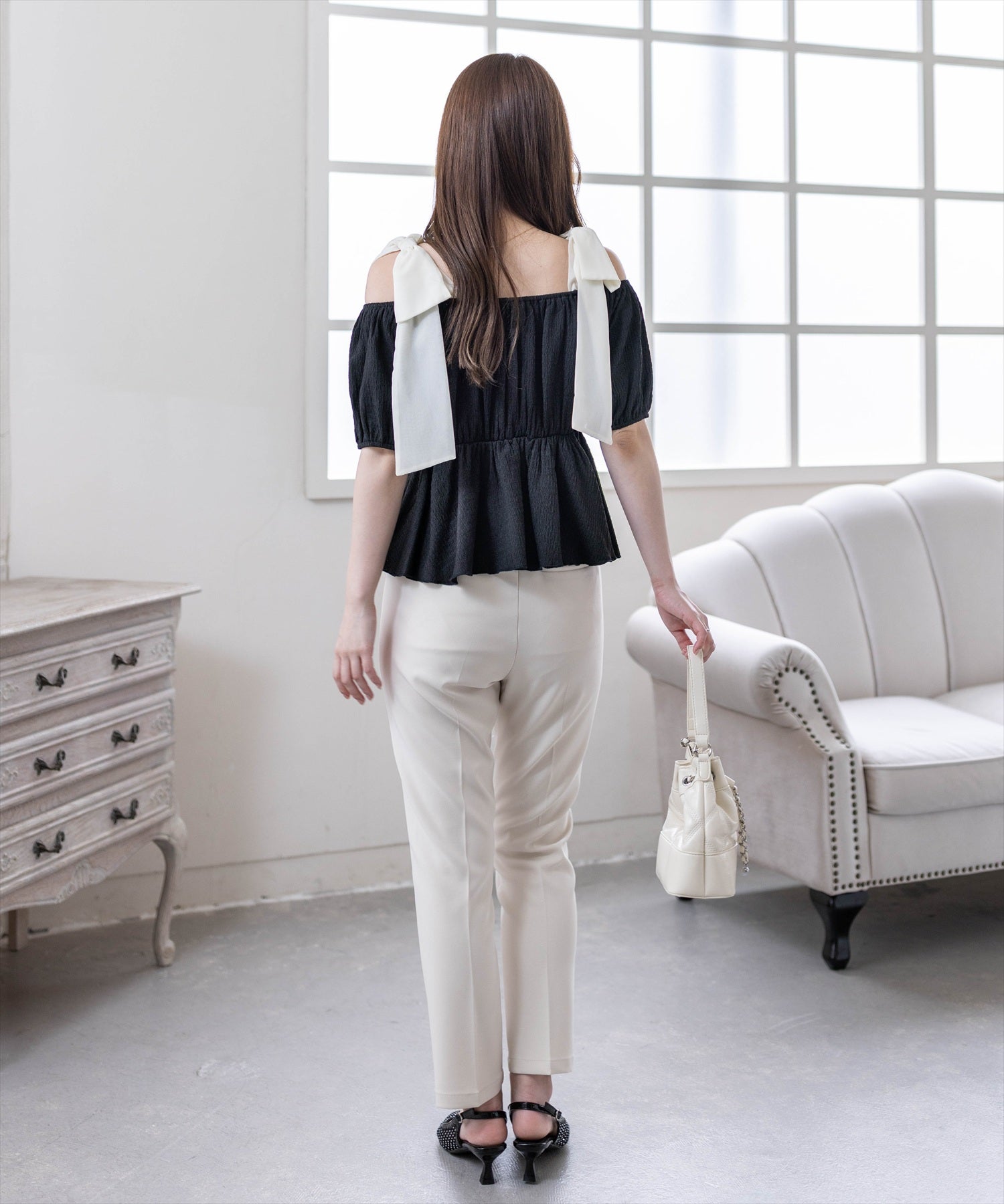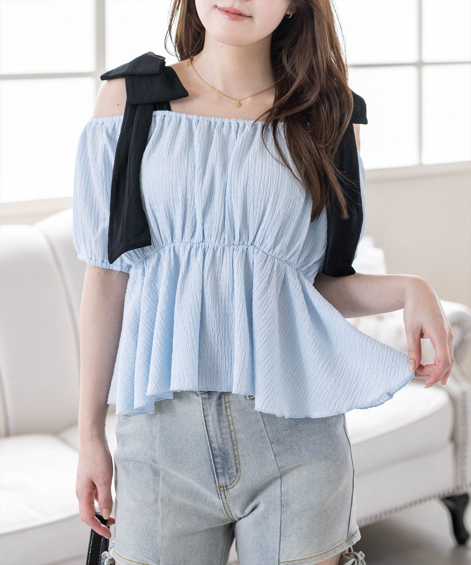 clear≪新作≫配色リボンオフショルブラウス[CL9674]
