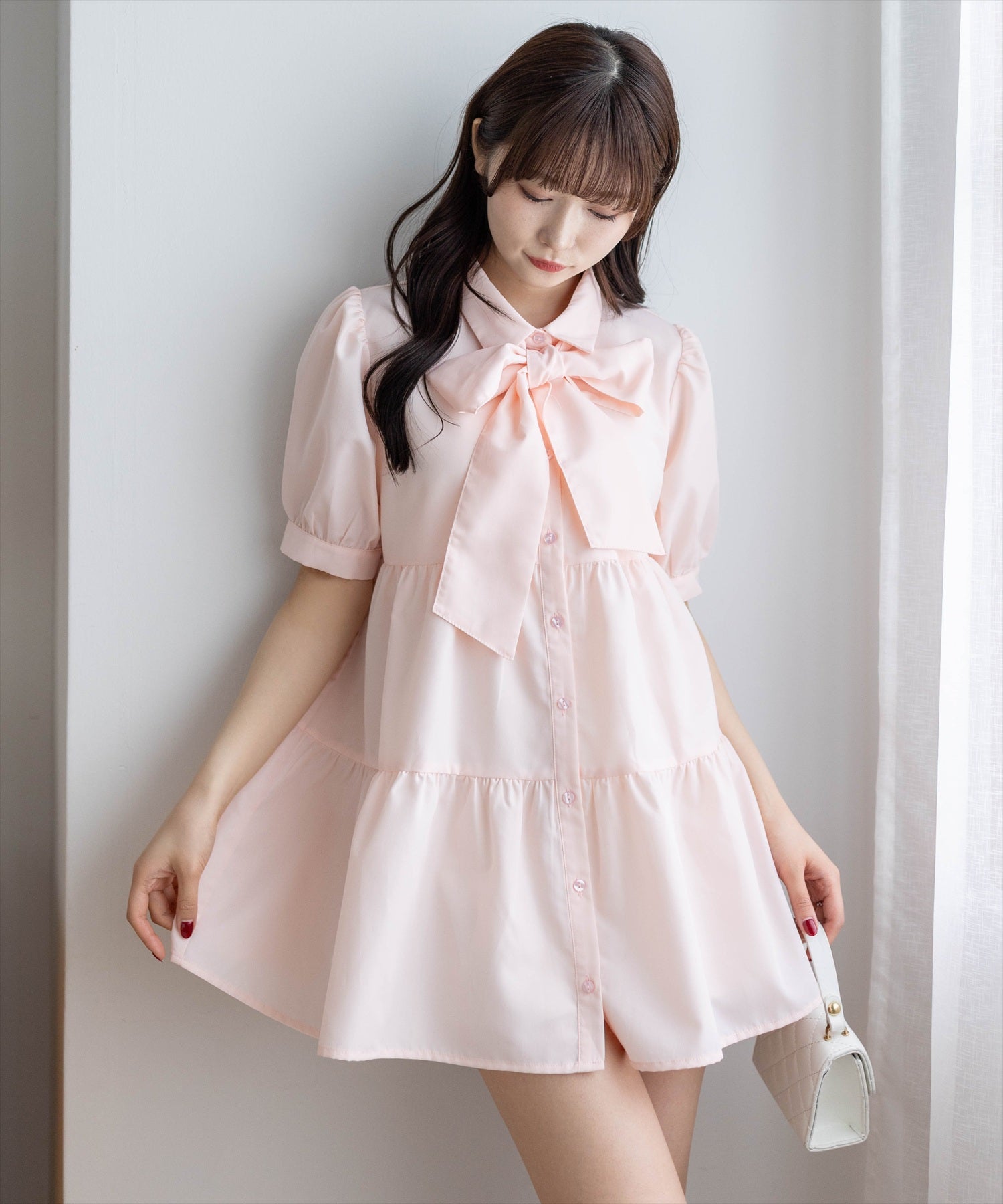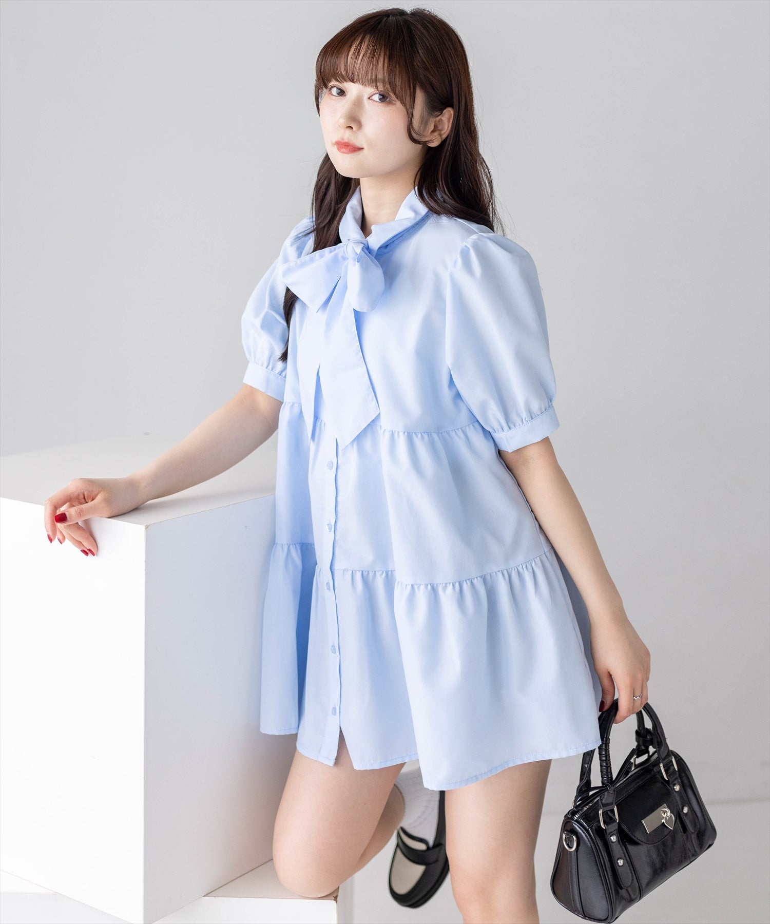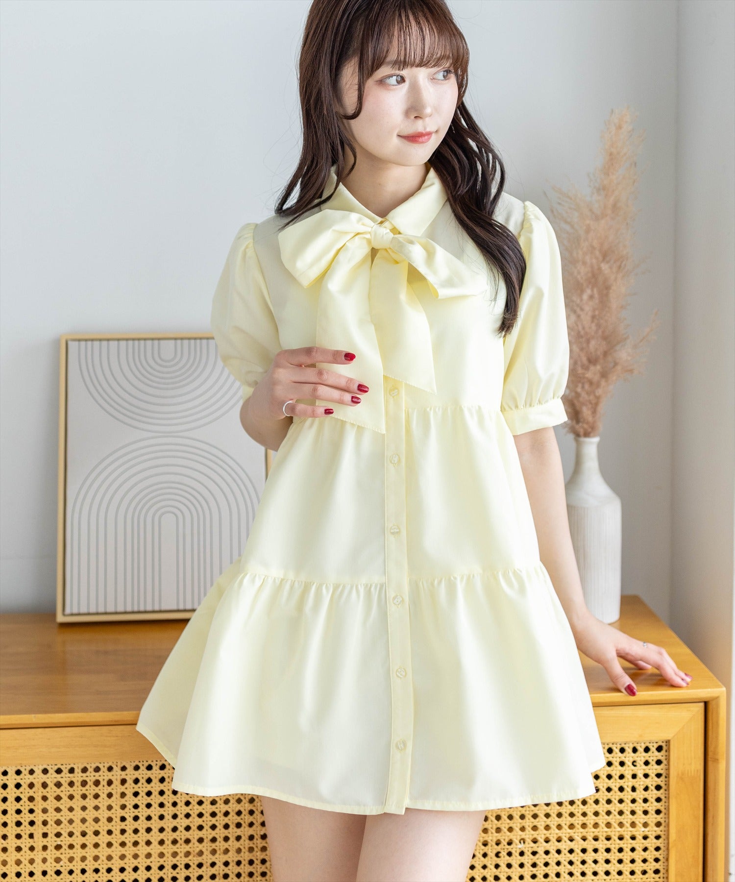 clear≪新作≫ビッグリボンティアード半袖ミニワンピース[CL9618]