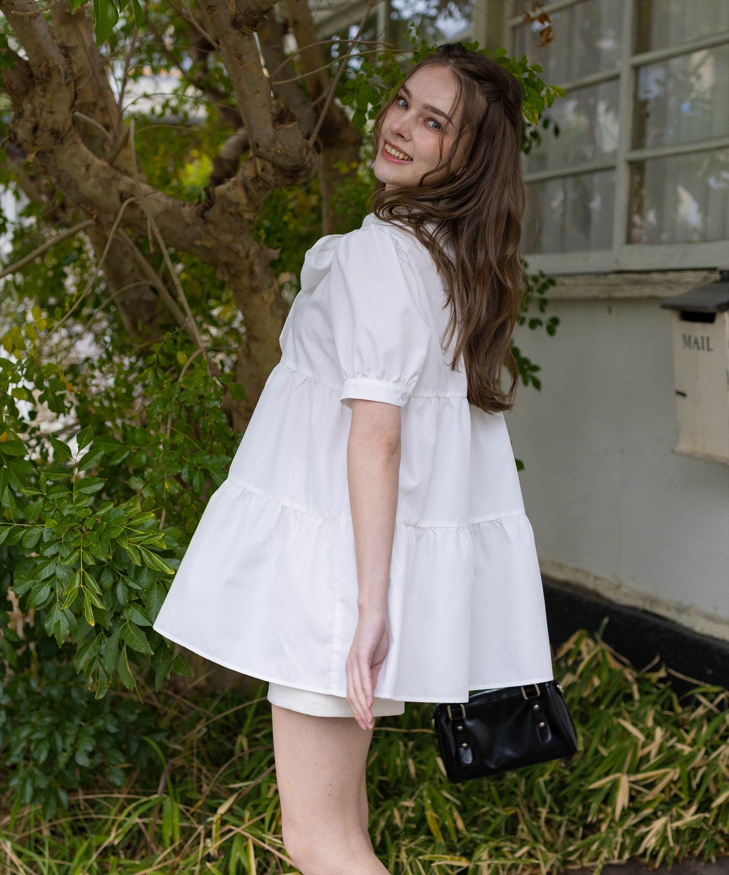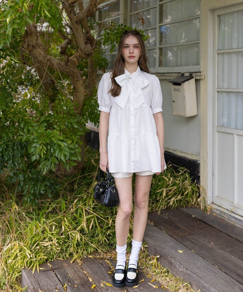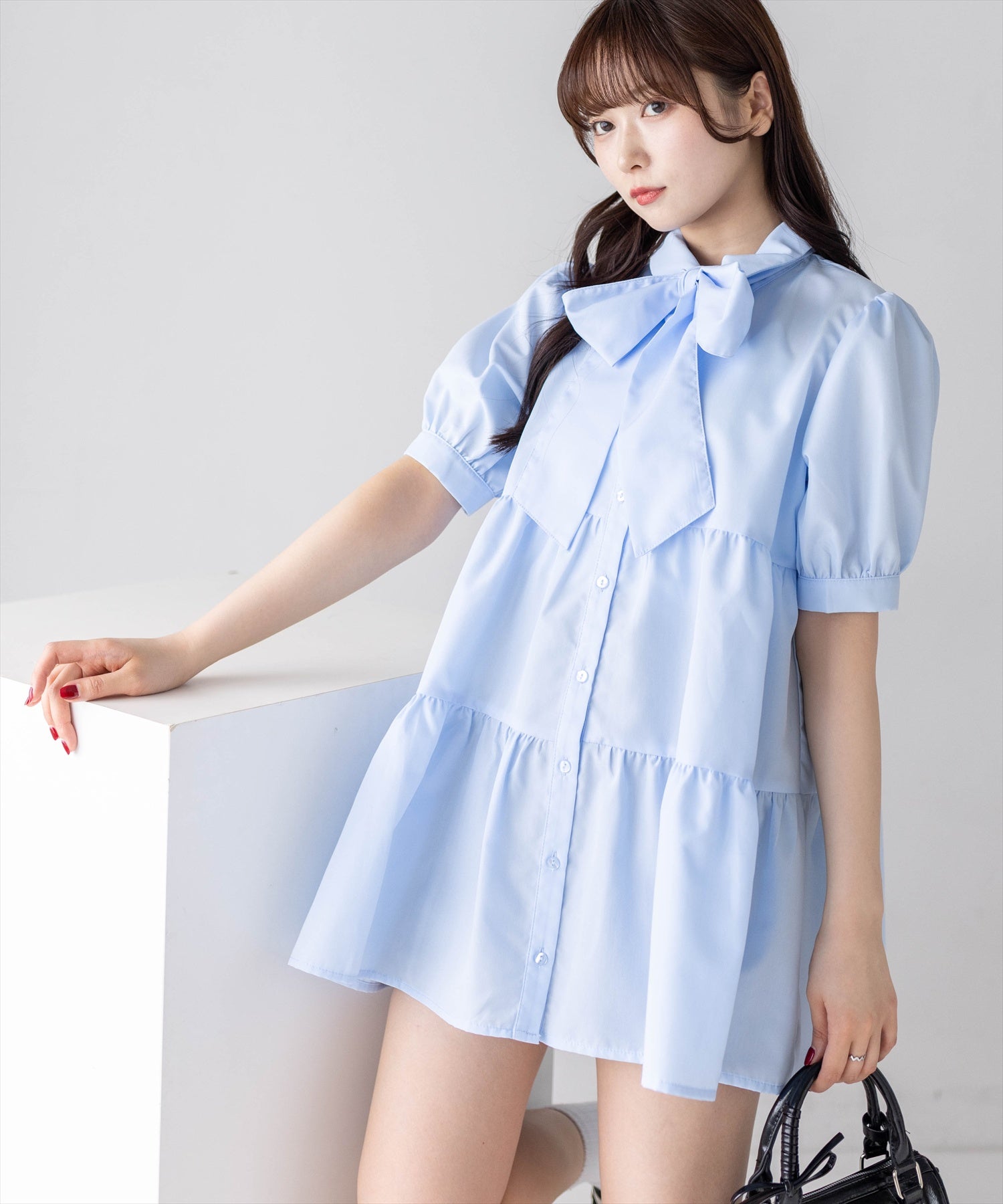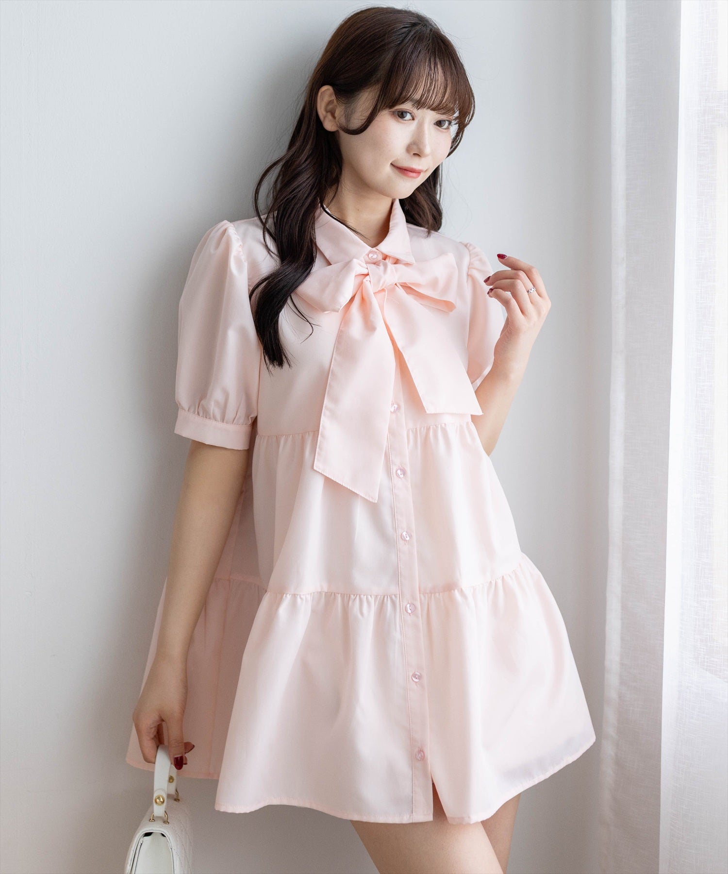 clear≪新作≫ビッグリボンティアード半袖ミニワンピース[CL9618]
