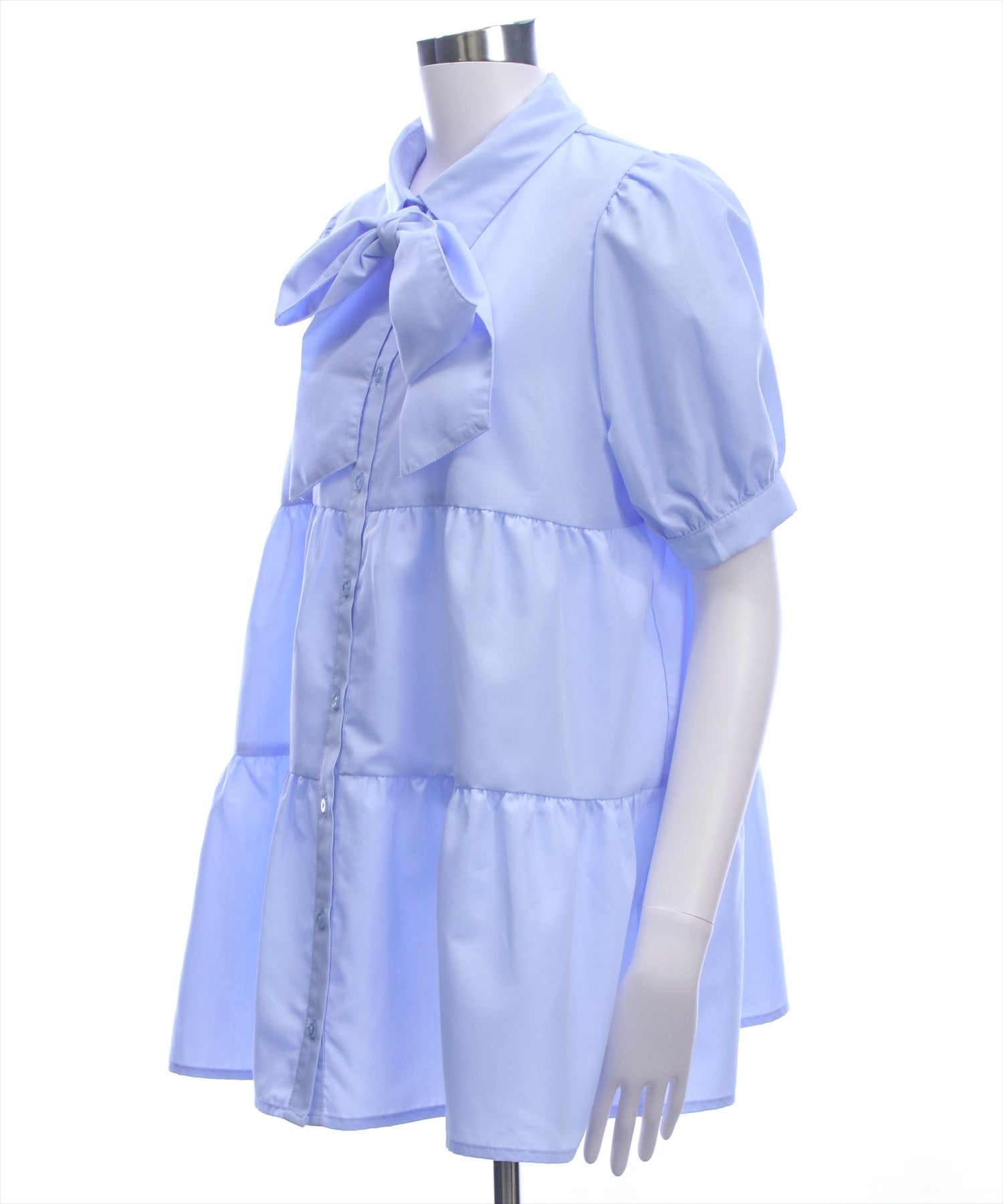 CLEAR BASIC≪新作≫ラインストーン付きボウタイリボンティアードブラウス[CL9756]