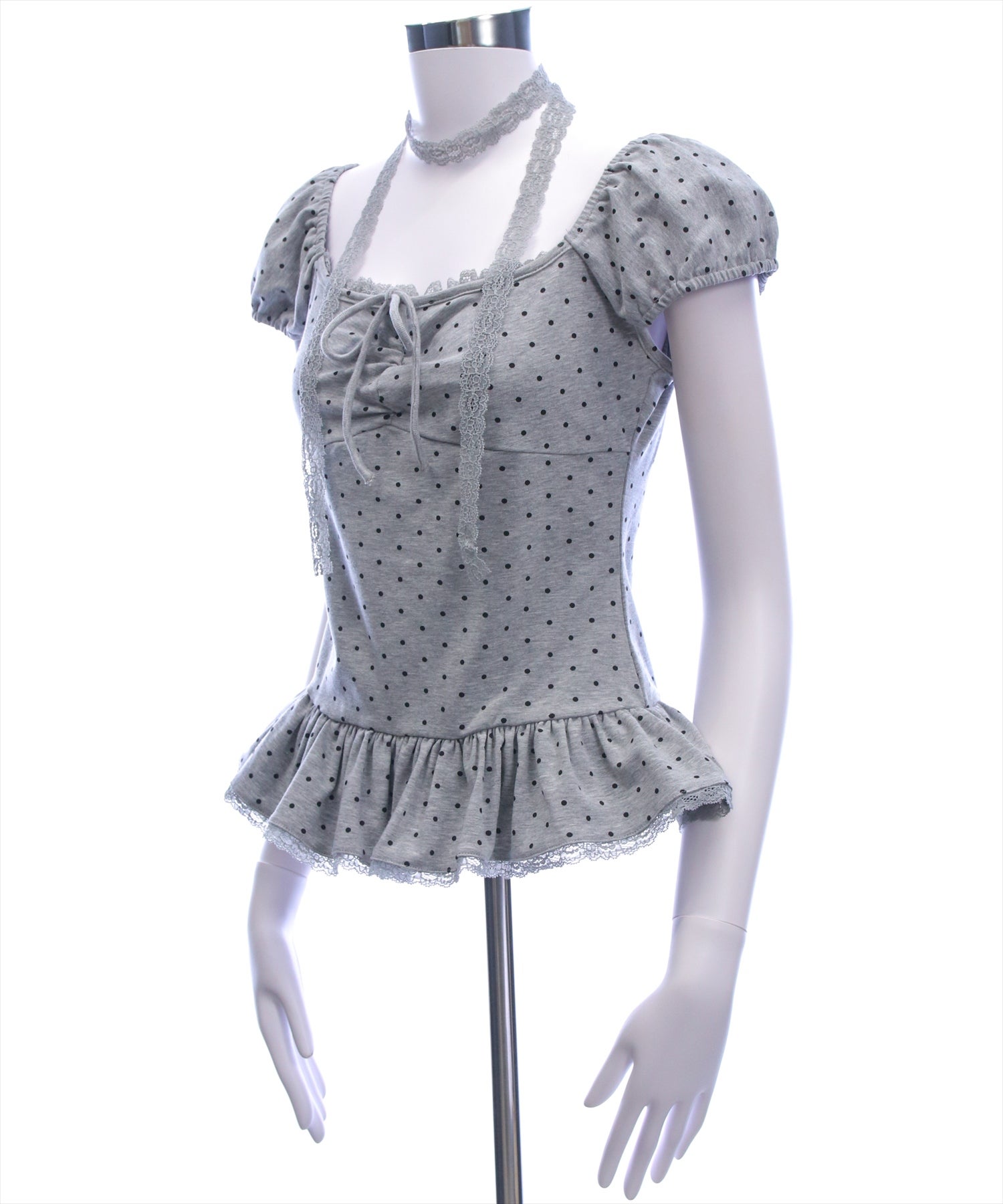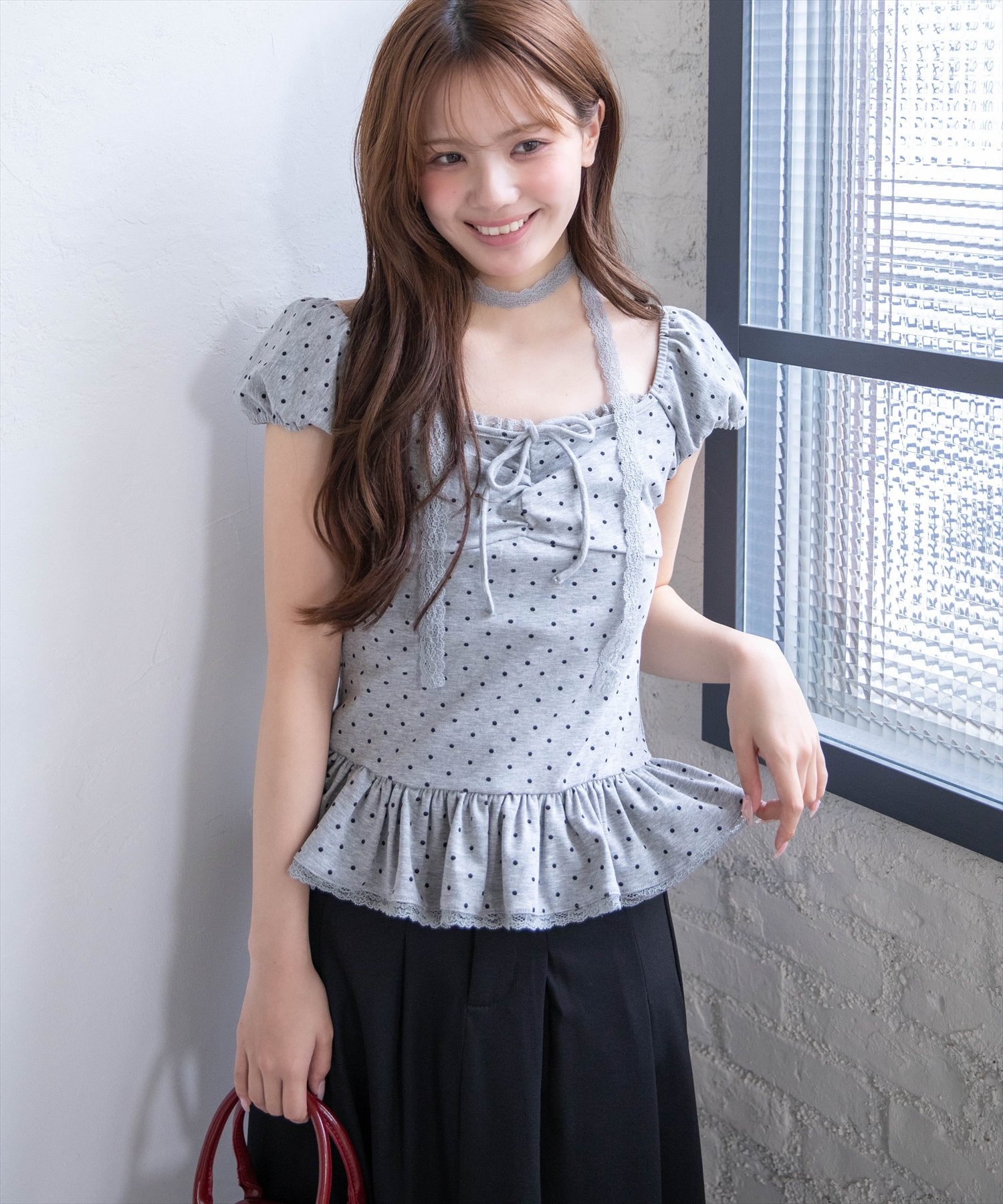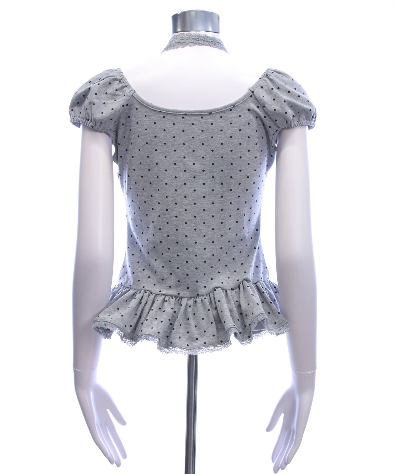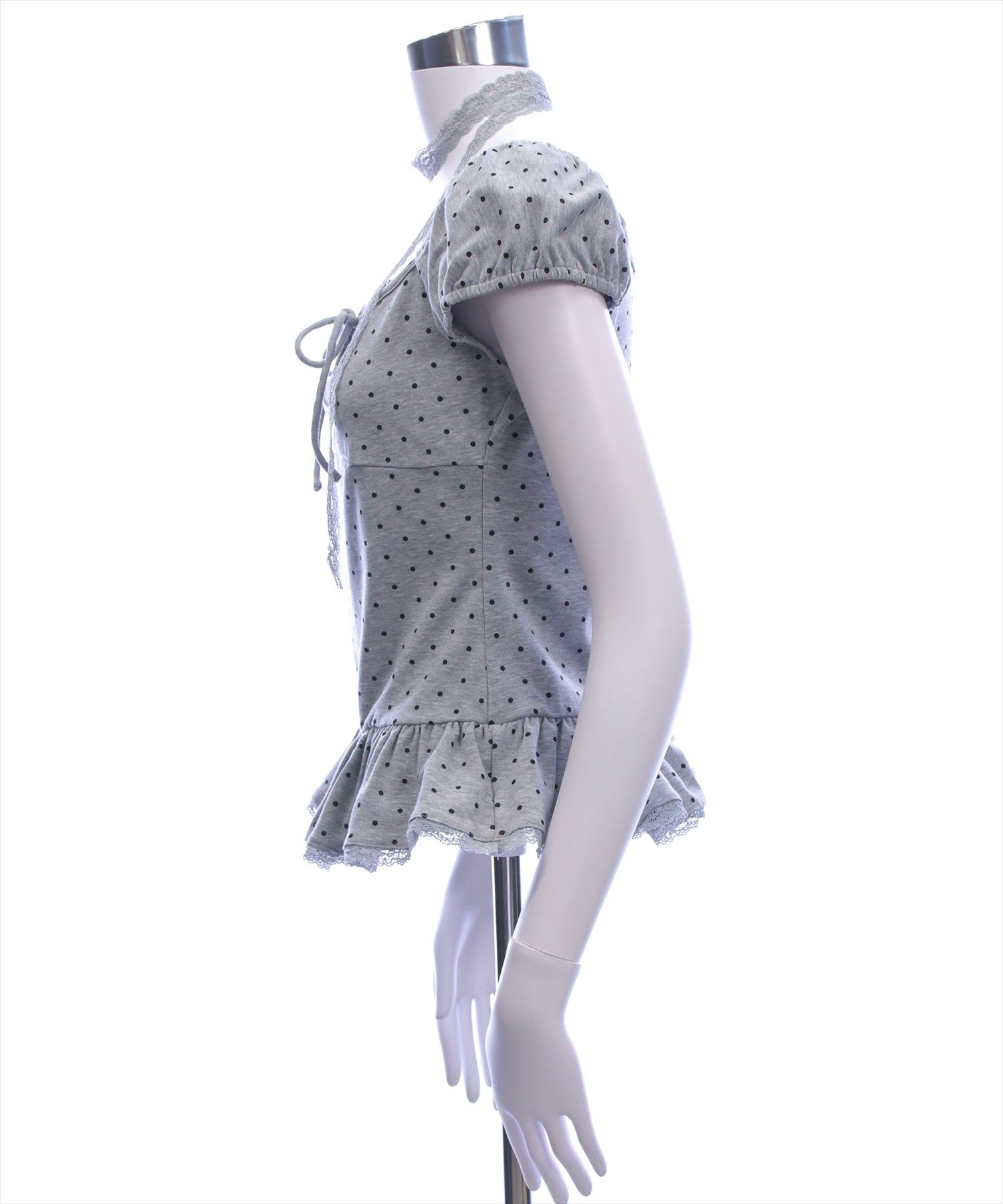 clear≪WEB先行販売/新作≫チョーカー付きドット裾フリルカットソー[CL9910]