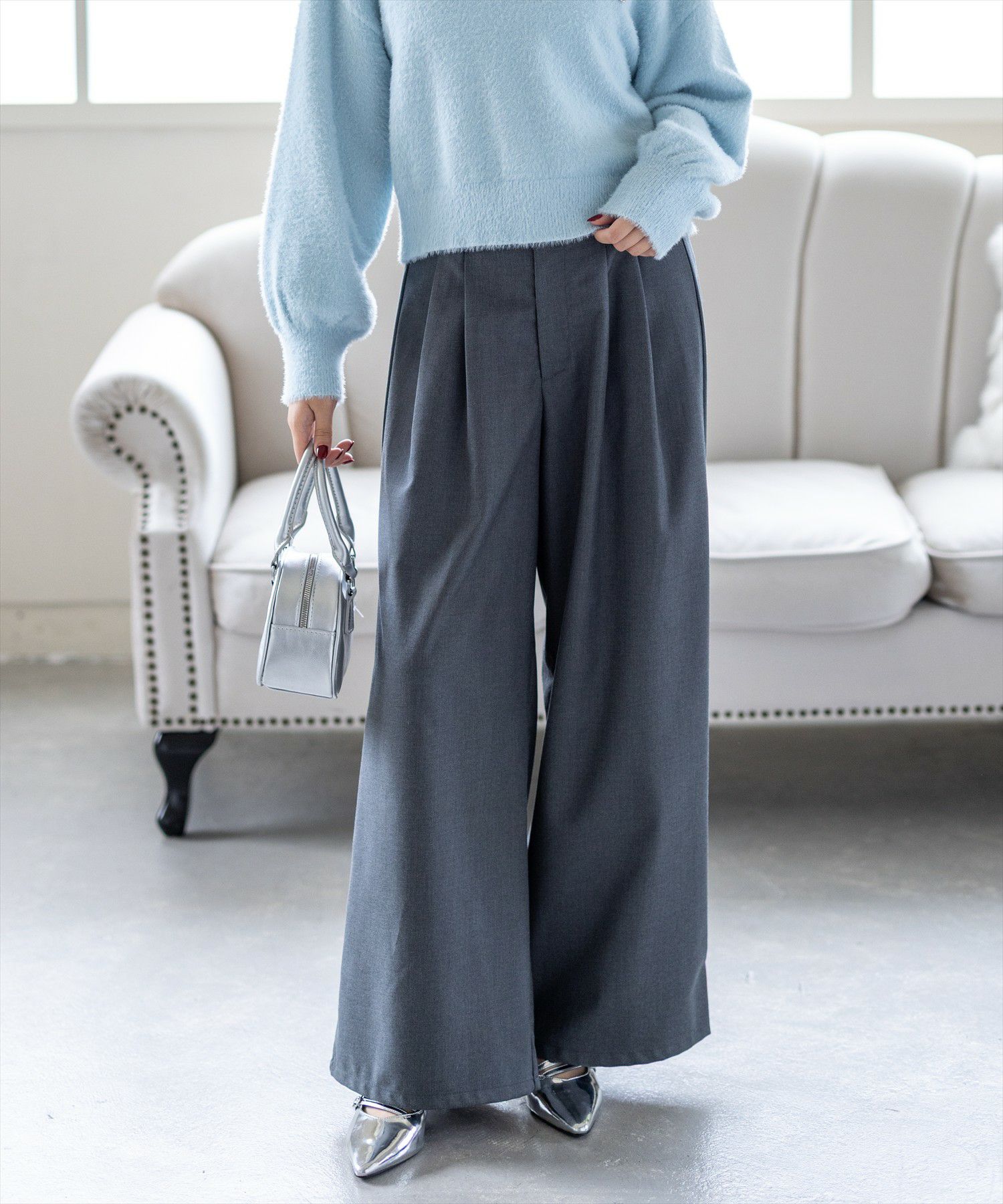 ウエスト部分にリブをあしらった、きれいめにもカジュアルにも馴染むワイドパンツ。リブ仕様のウエストは程よくフィットし、長時間の着用もストレスフリー。フロントにタックを入れることで縦ラインを強調し、脚をすらっと長く見せてくれます。落ち感のある素材が動くたびに上品なニュアンスを演出し、オンオフ問わず幅広く活躍◎