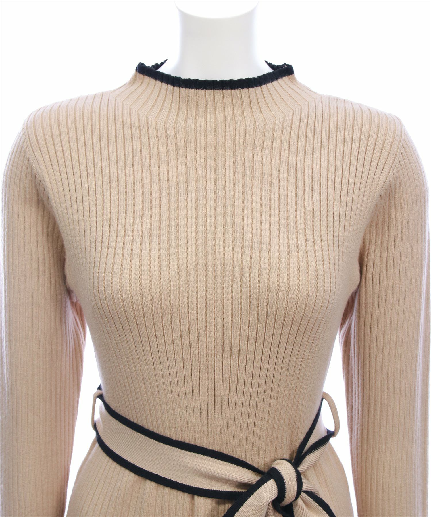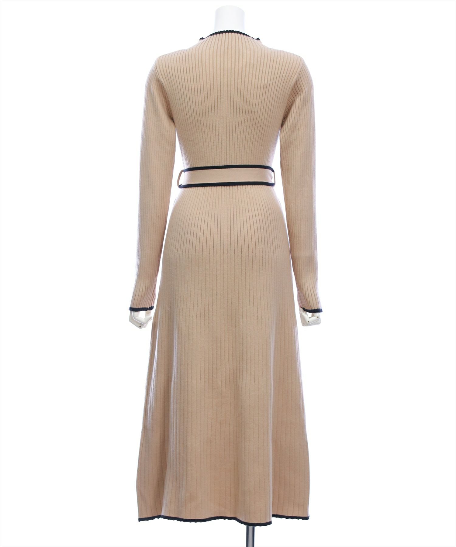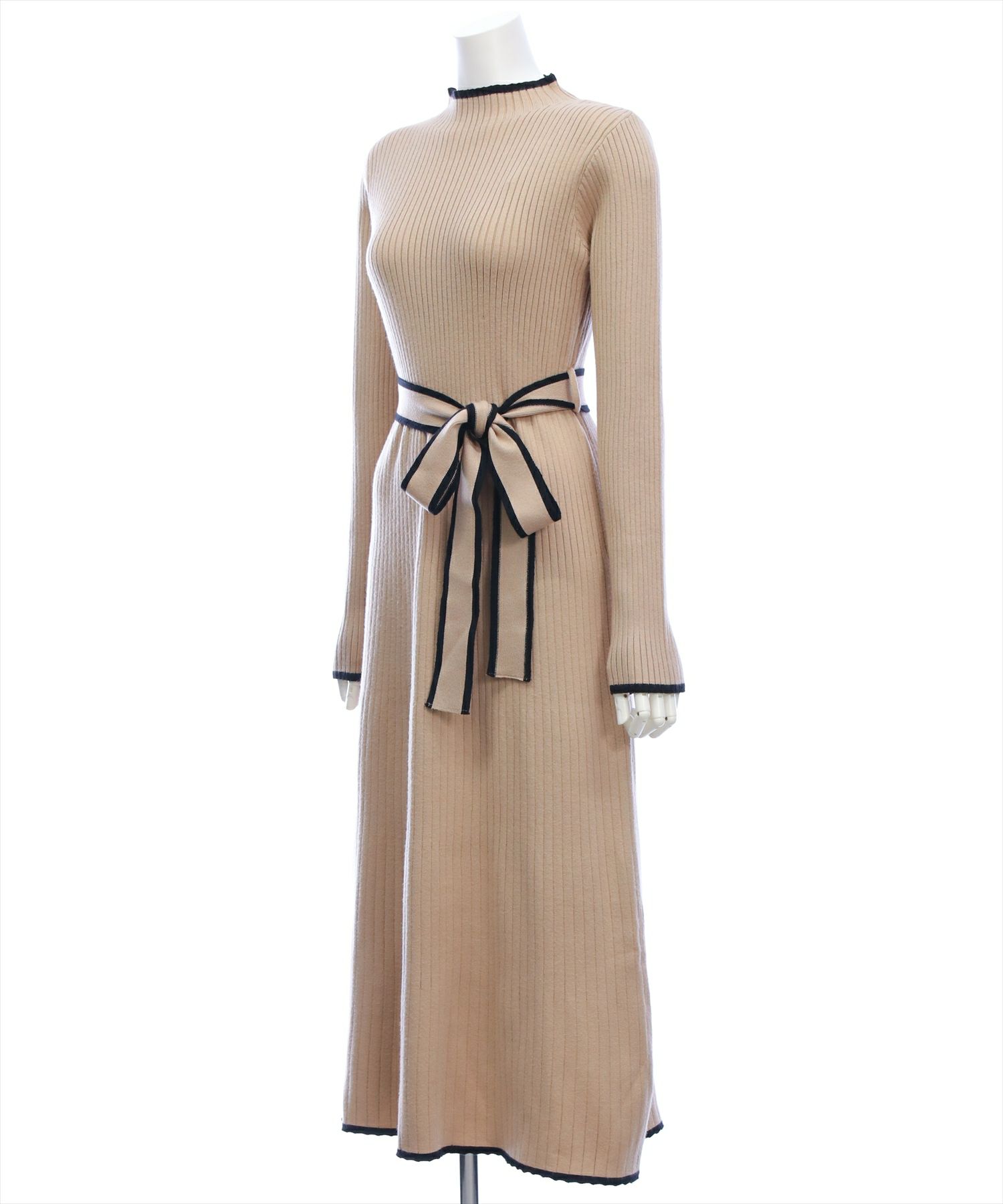 一枚で決まる!配色リボンフレアロングニットワンピース