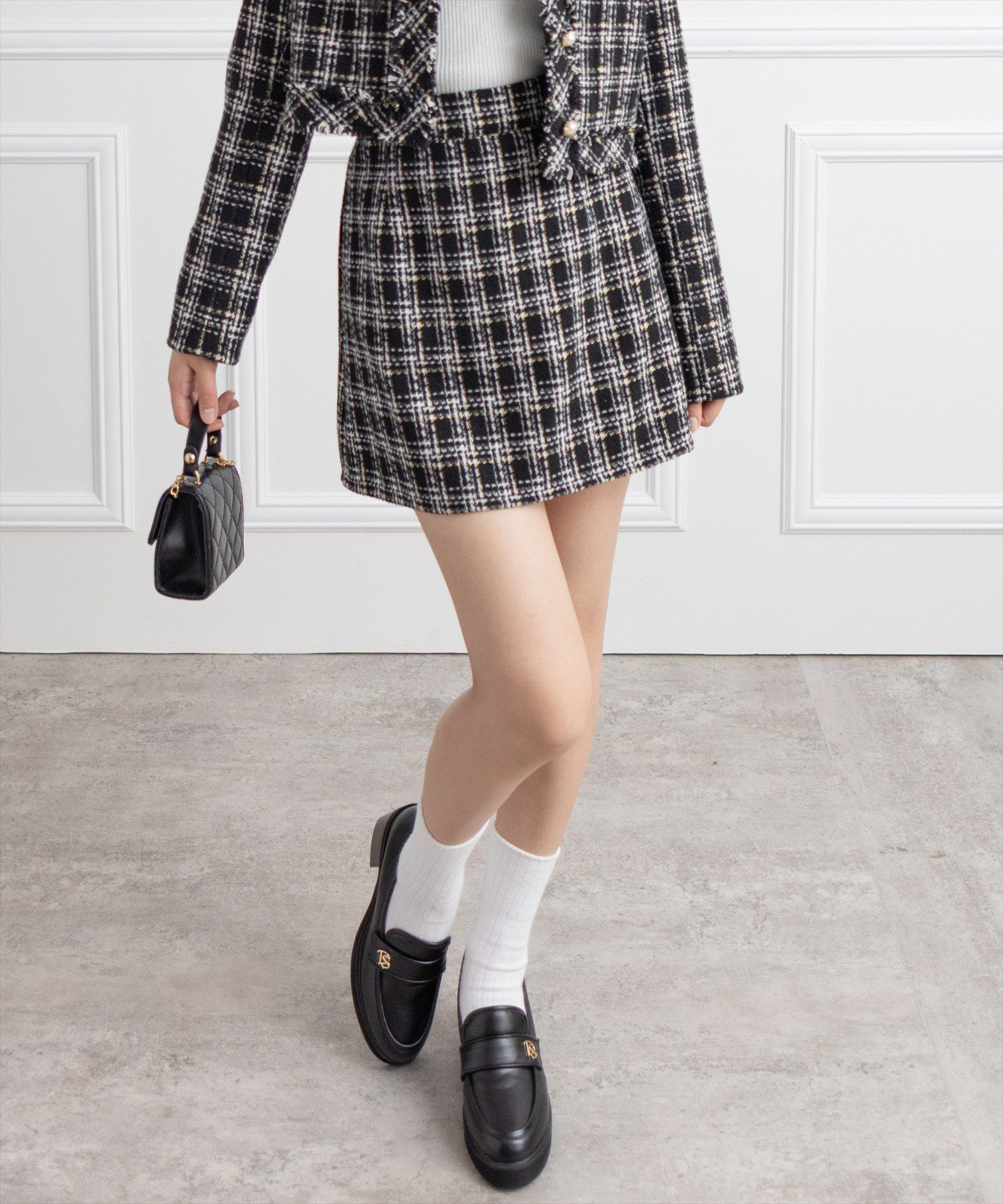 大人可愛いクラシカルなアイテム!ツイードミニスカート(セット可)【デザイン】上品なツイード素材で仕立てたミニスカートです。コンパクトな丈感が脚をすっきりと見せ、シンプルながら存在感のあるデザインに仕上がっています。ウエスト周りはすっきりとしたラインで、女性らしいシルエットを演出します。【コーディネート】セットアイテムのジャケット(商品番号:206A1-133589/ツイードジャケット(セット可))、(商品番号:206A1-133790/ファー付きツイードジャケット(セット可))と合わせていただくのがおすすめ◎ロングブーツで秋冬らしいコーデになります♪