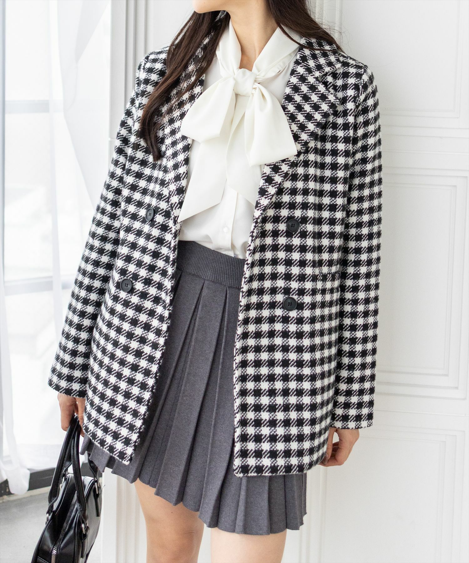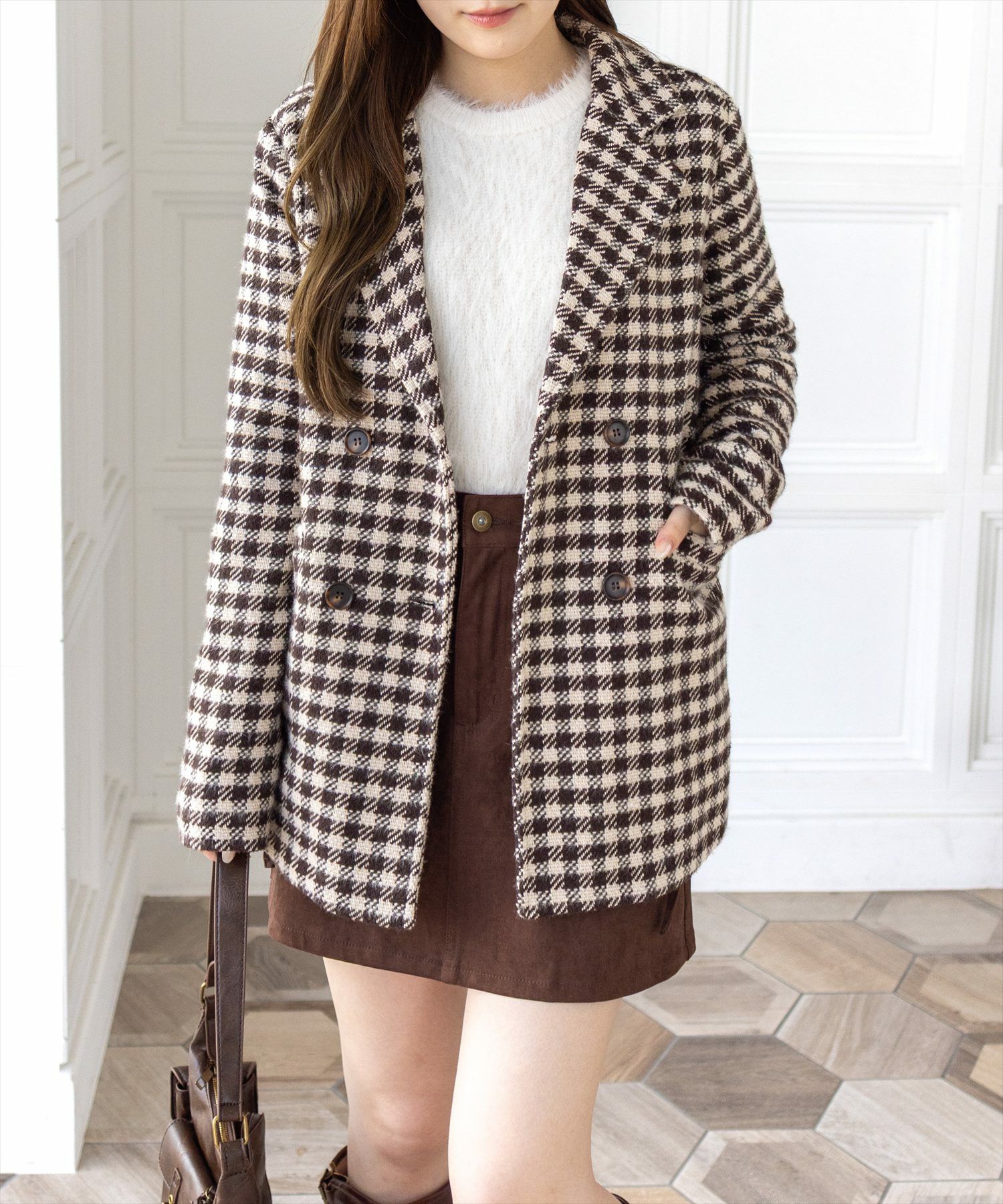 きちんと感と抜け感を両立する!ブロックチェックフェイクウールダブルジャケット