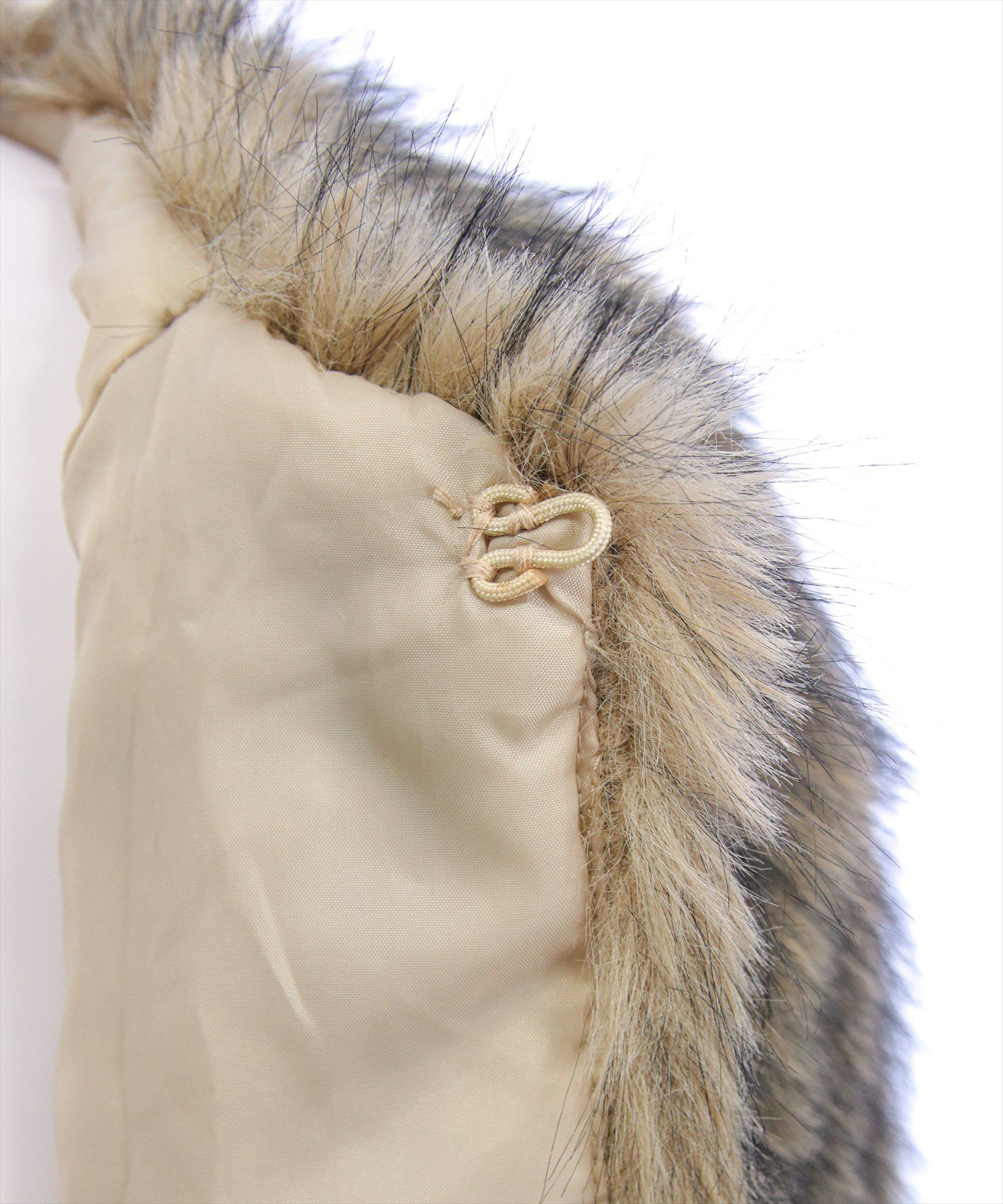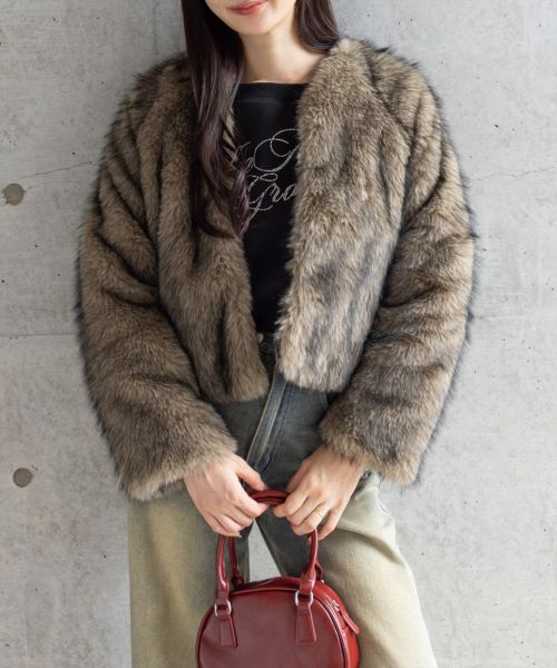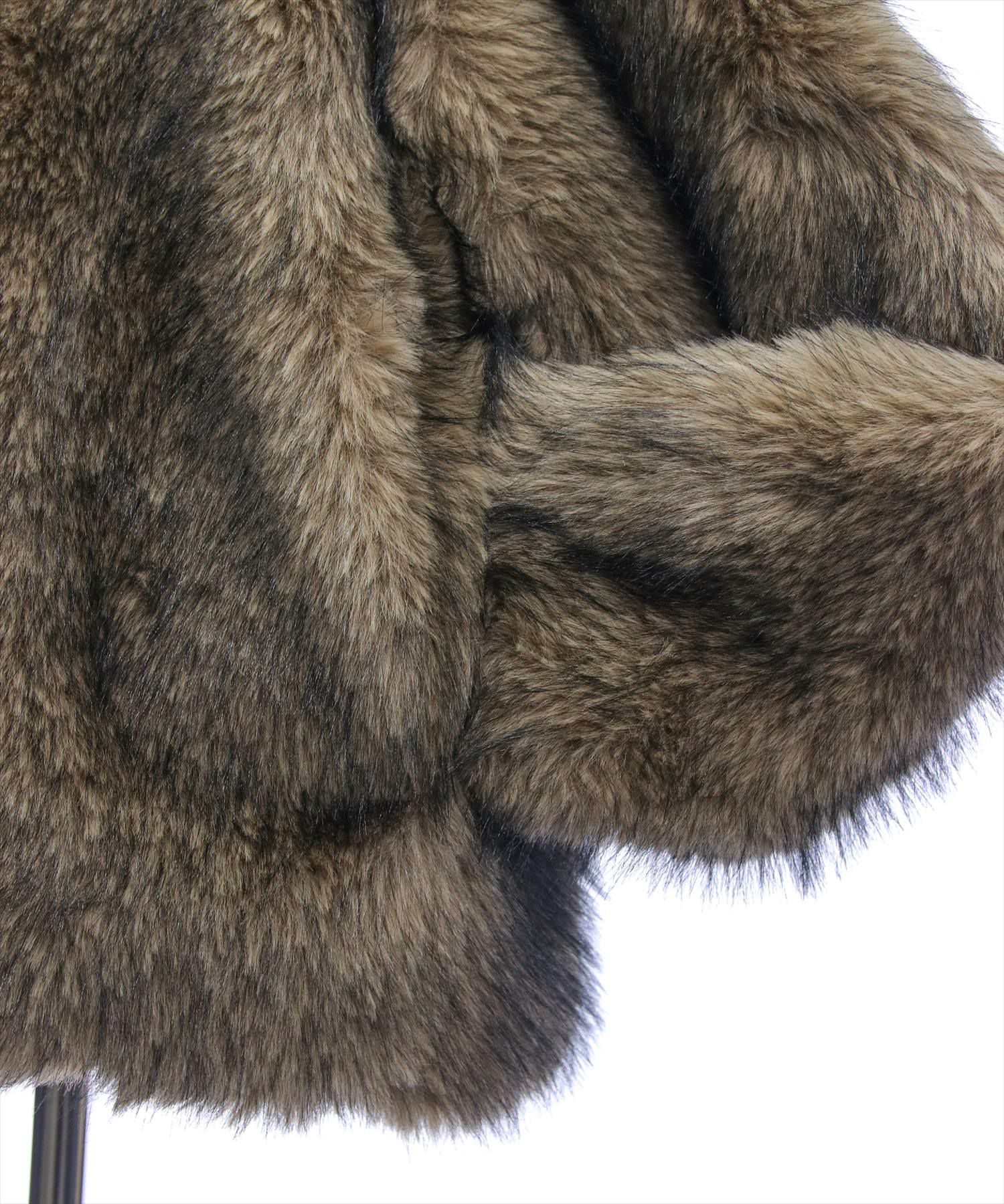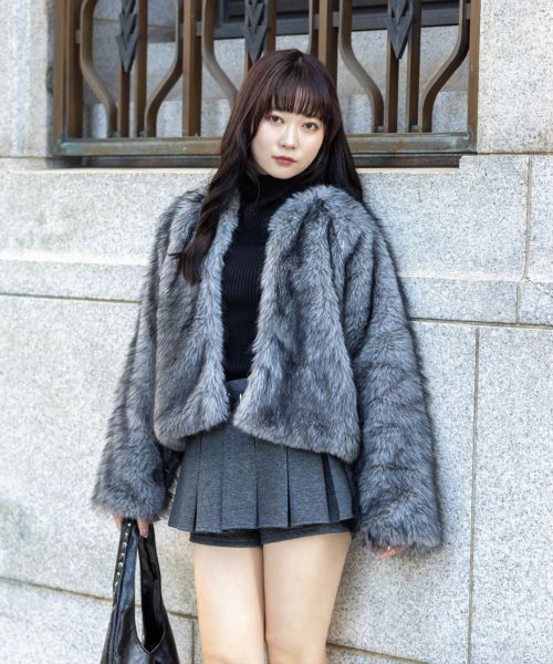 毛足の長いミックスファーを使用した、存在感抜群のジャケットです。ふわっとしたボリューム感がありながらも、軽やかな着心地が魅力。便利なポケット付きで、フロントにはフックがあり閉じても着られ、デイリーに使いやすいデザインになっています。