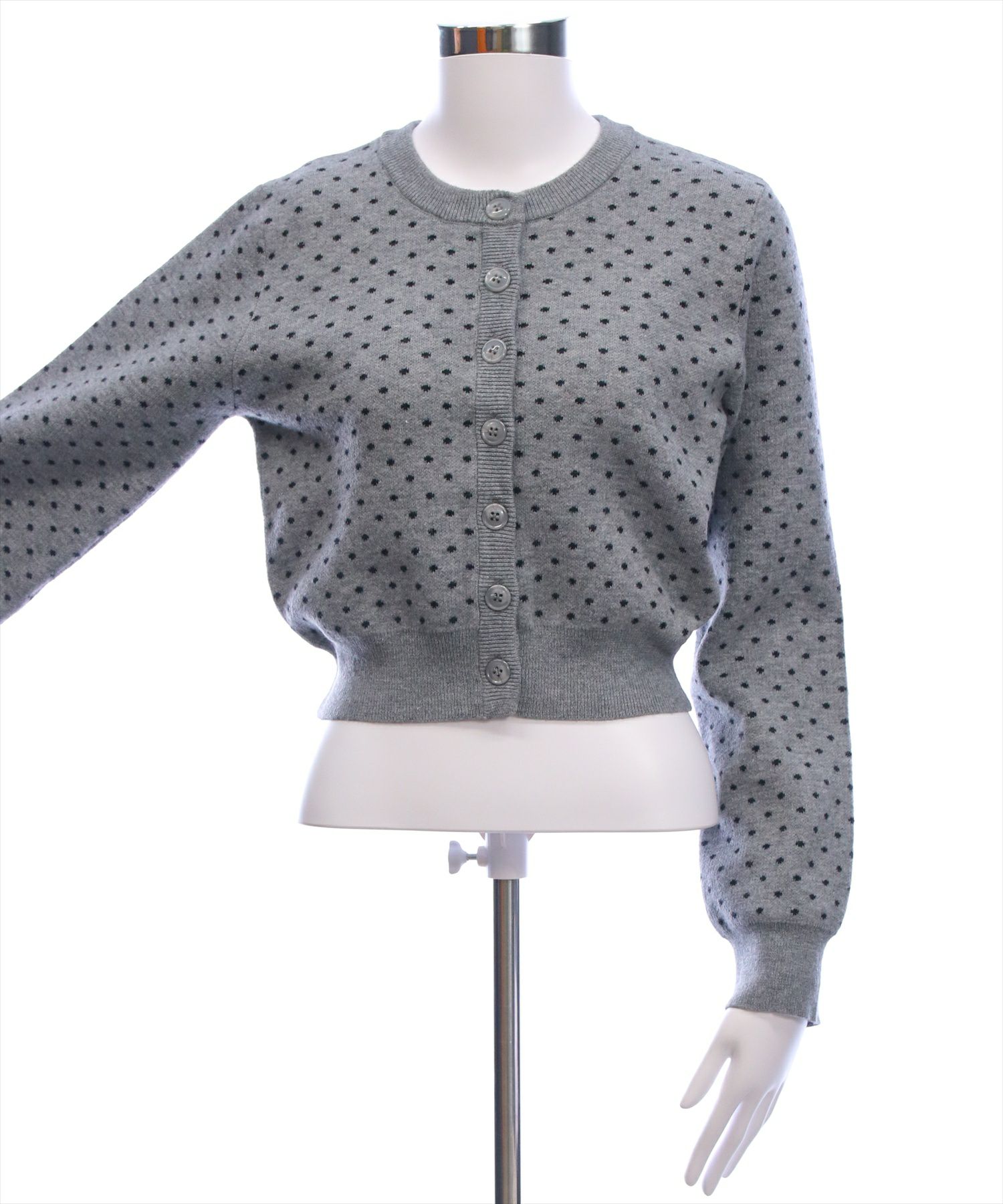 コンパクトシルエットでガーリーにもカジュアルにも!ドット柄ジャガードニットカーディガン【デザイン】ドット柄をジャガード編みで表現した遊び心のあるニットカーディガンです。ほどよい厚みのニットで、秋冬のデイリー使いにぴったりの一枚です。【コーディネート】カジュアルなデニム合わせで大人可愛く着こなすのはもちろん、フレアスカートやミニボトムに合わせればガーリーな印象に。ワンピースの羽織りとしてもバランスよく決まり、オンオフ問わず着回し力の高いアイテムです。