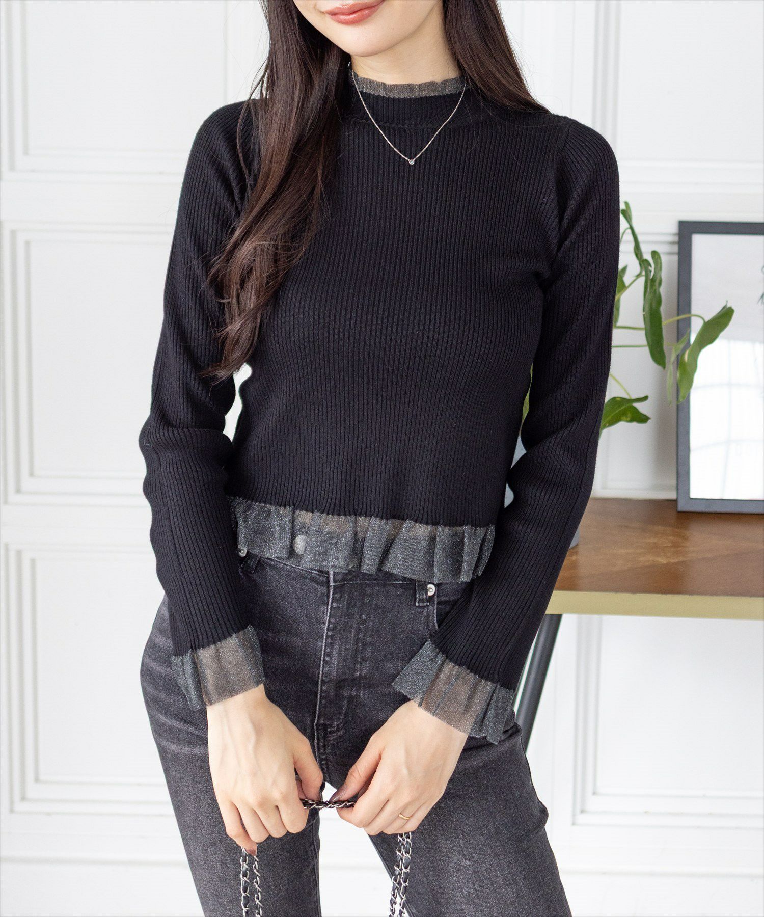 clear≪AW新作≫シアーフリルリブニットトップス[CL9187]