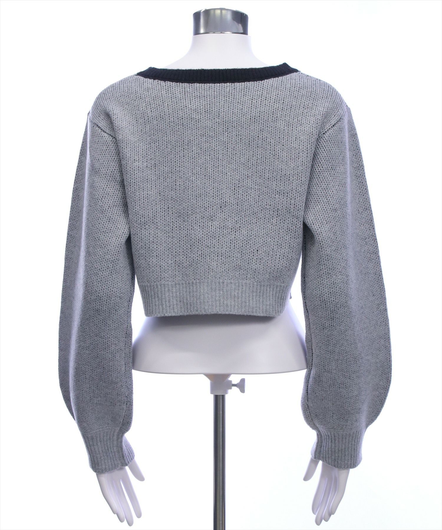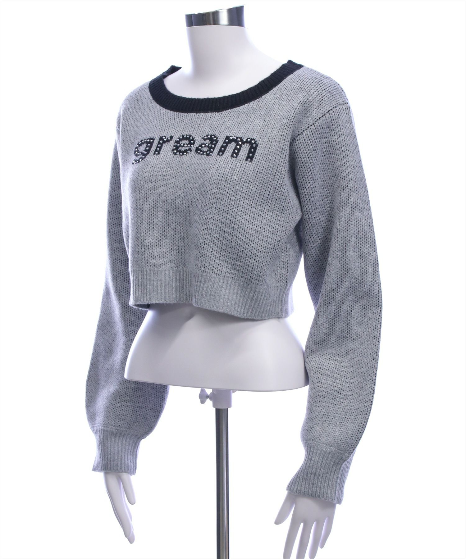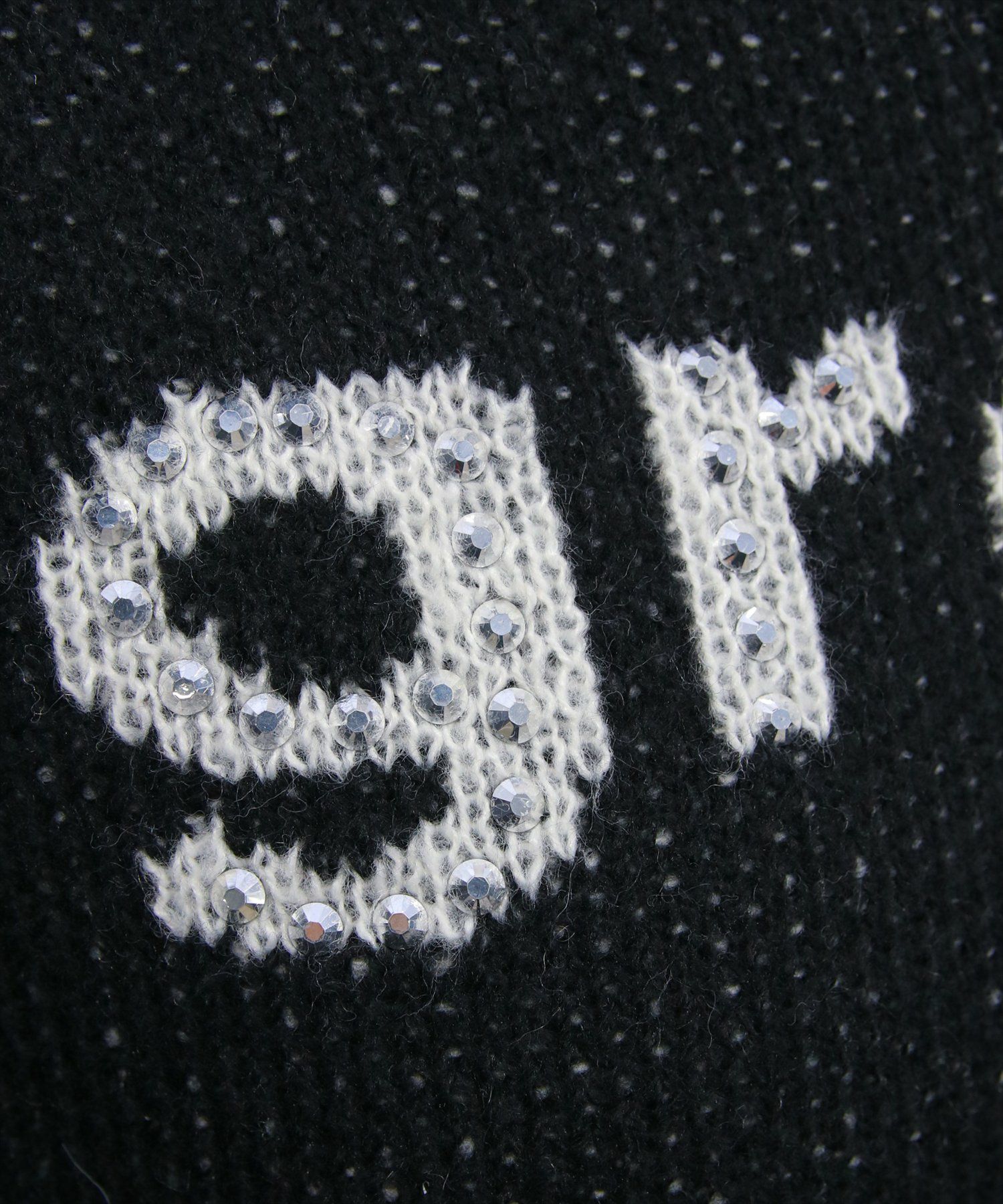 華やかロゴでコーデの主役に!ストーンロゴジャガードクロップドニットトップス