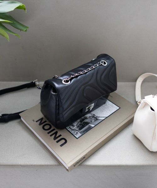 チェーンで魅せる、甘さと強さ!ウェーブステッチチェーンバッグ。上品なウェーブステッチデザインに、チェーンショルダーでアクセントを効かせた大人可愛いバッグ。コンパクトながらも必要なものはしっかり入るサイズ感でちょっとしたお出かけにぴったり◎