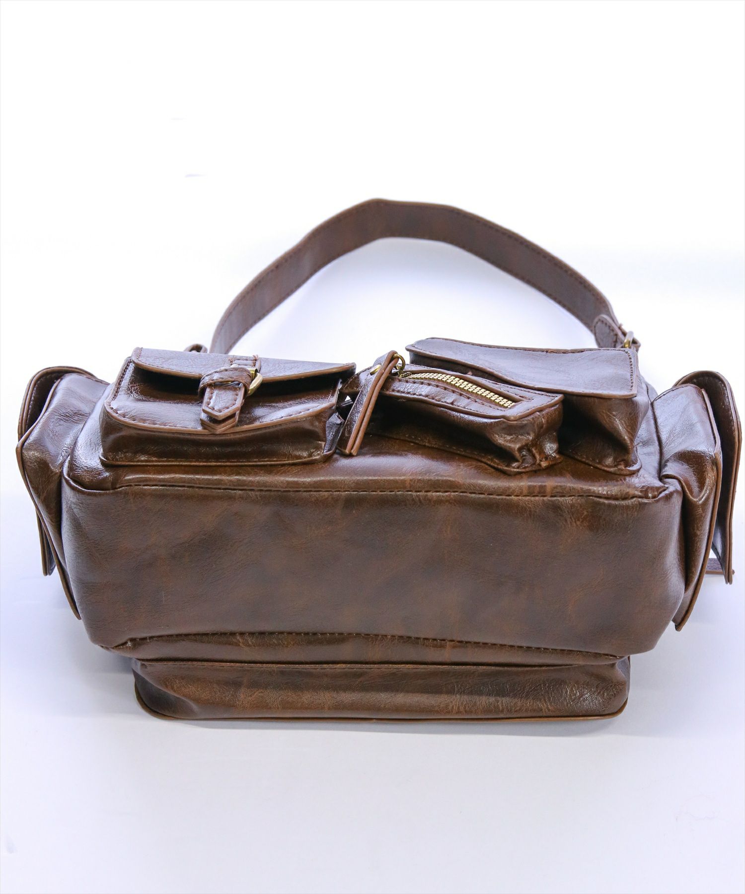 レトロなヴィンテージ感のある大人カジュアルの主役!アウトポケットヴィンテージハンドルバッグ。程よい光沢感の素材とクラシカルなディティールで、持つだけでこなれ感を演出◎コンパクトに見えて収納力もあり、外ポケットも豊富なのでデイリーからお出かけまで幅広く活躍してくれるアイテムです!