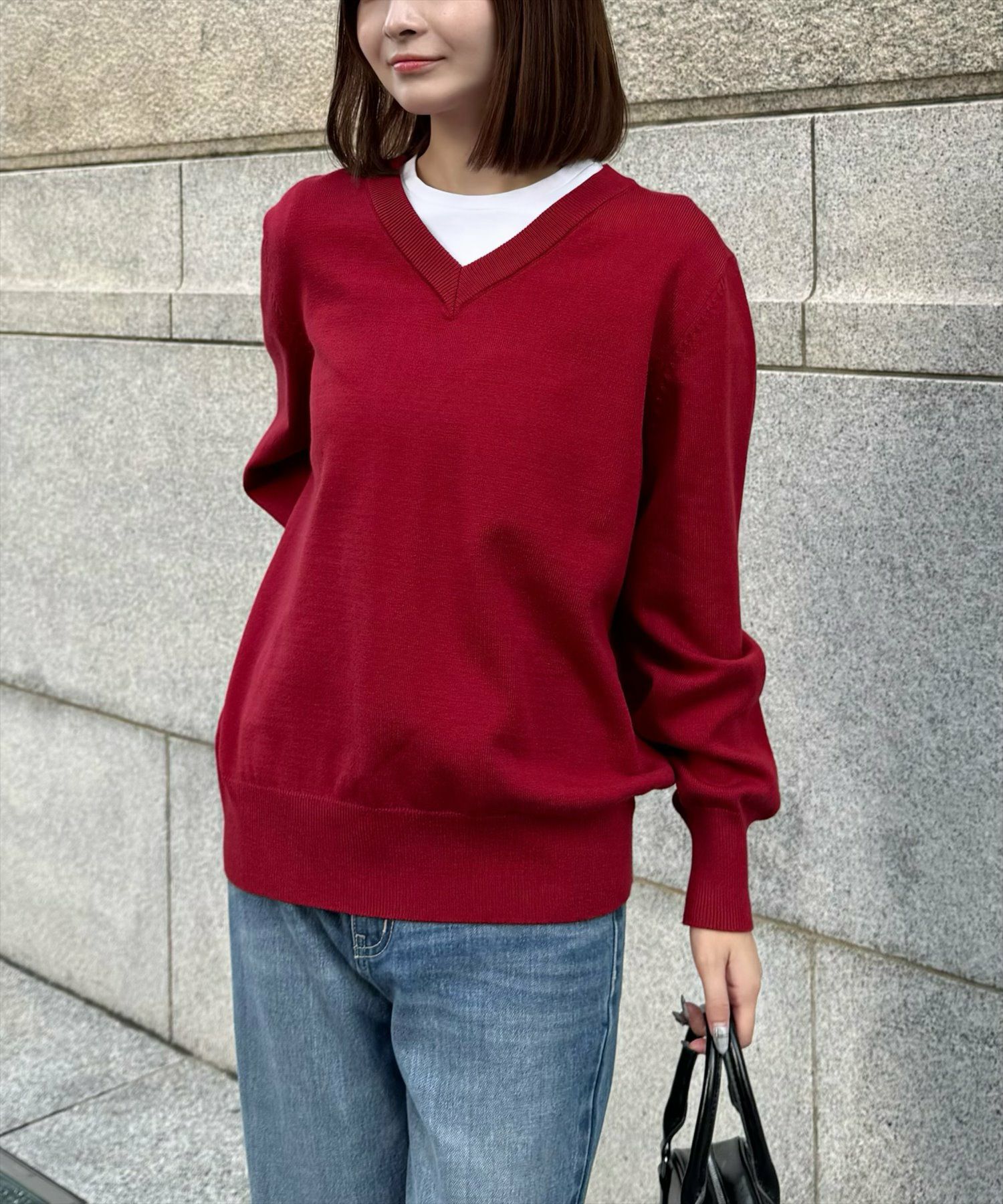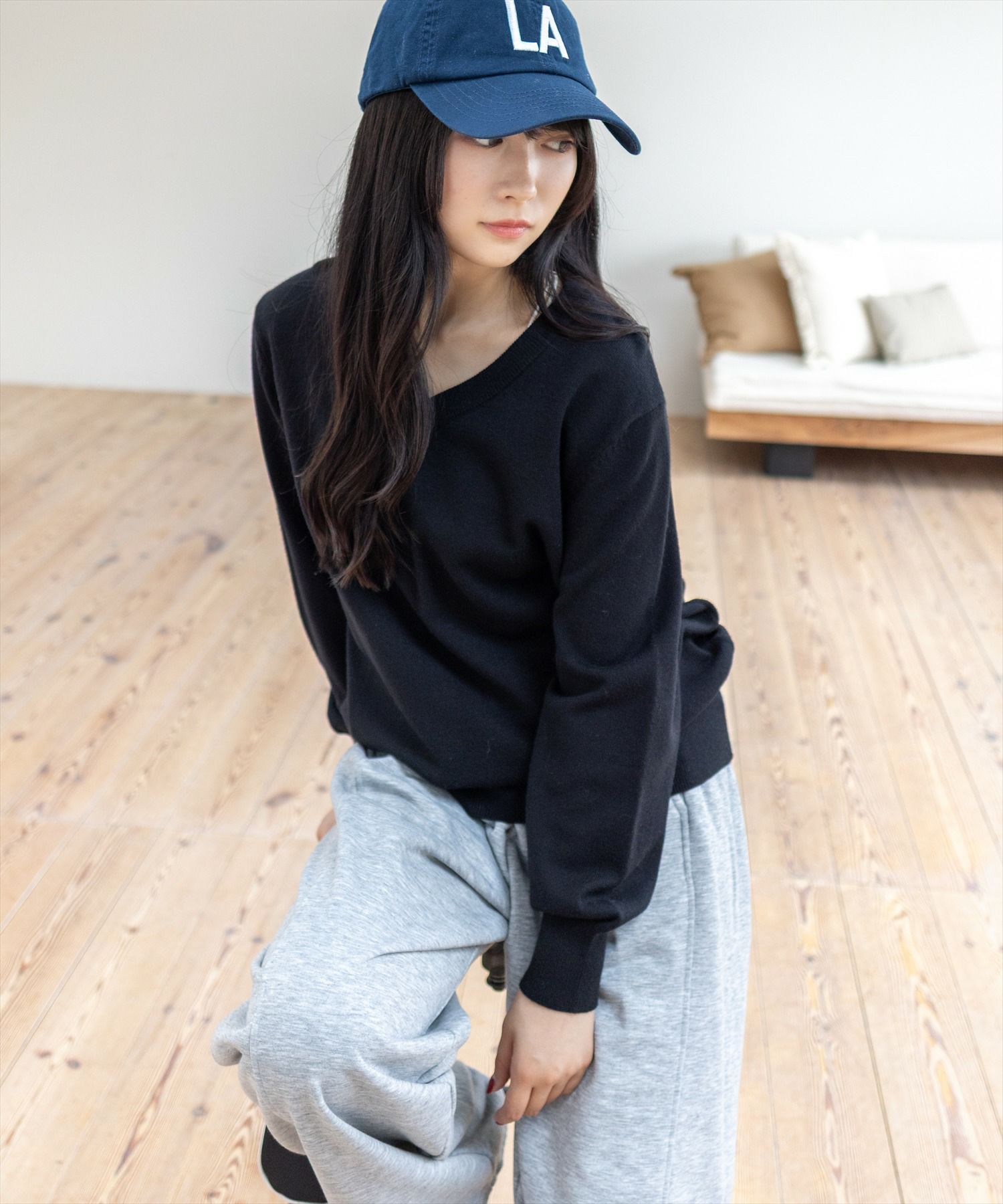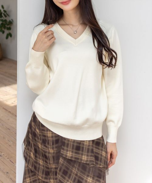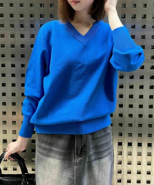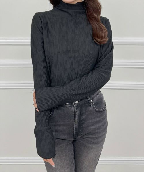 clear フレアスリーブハイネックボーダーニットトップス[CL8389]