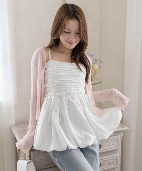 clear≪再入荷≫ドロストリボンレーストップス&キャミセット[CL9126]