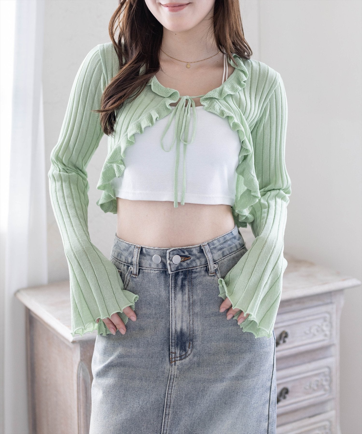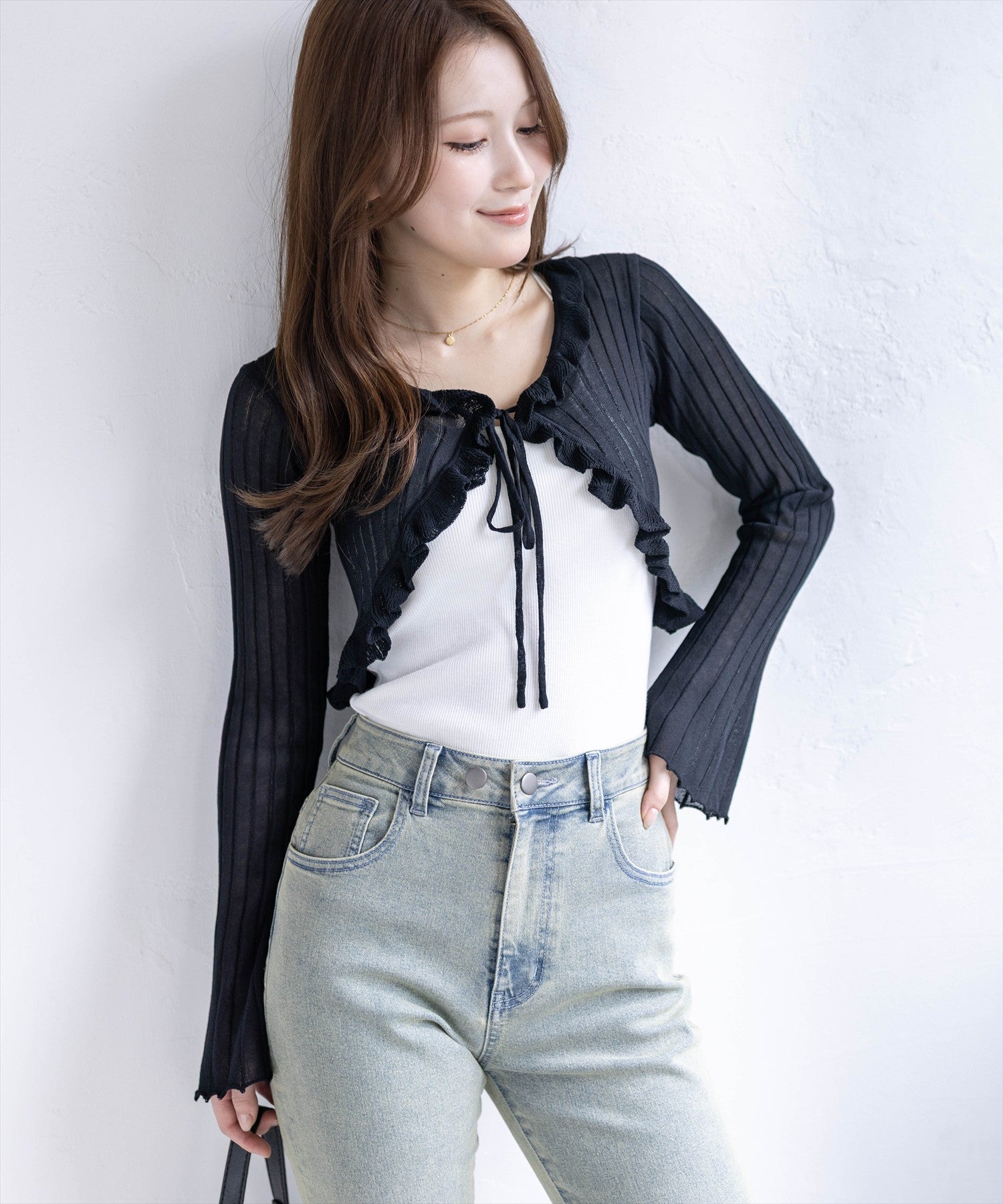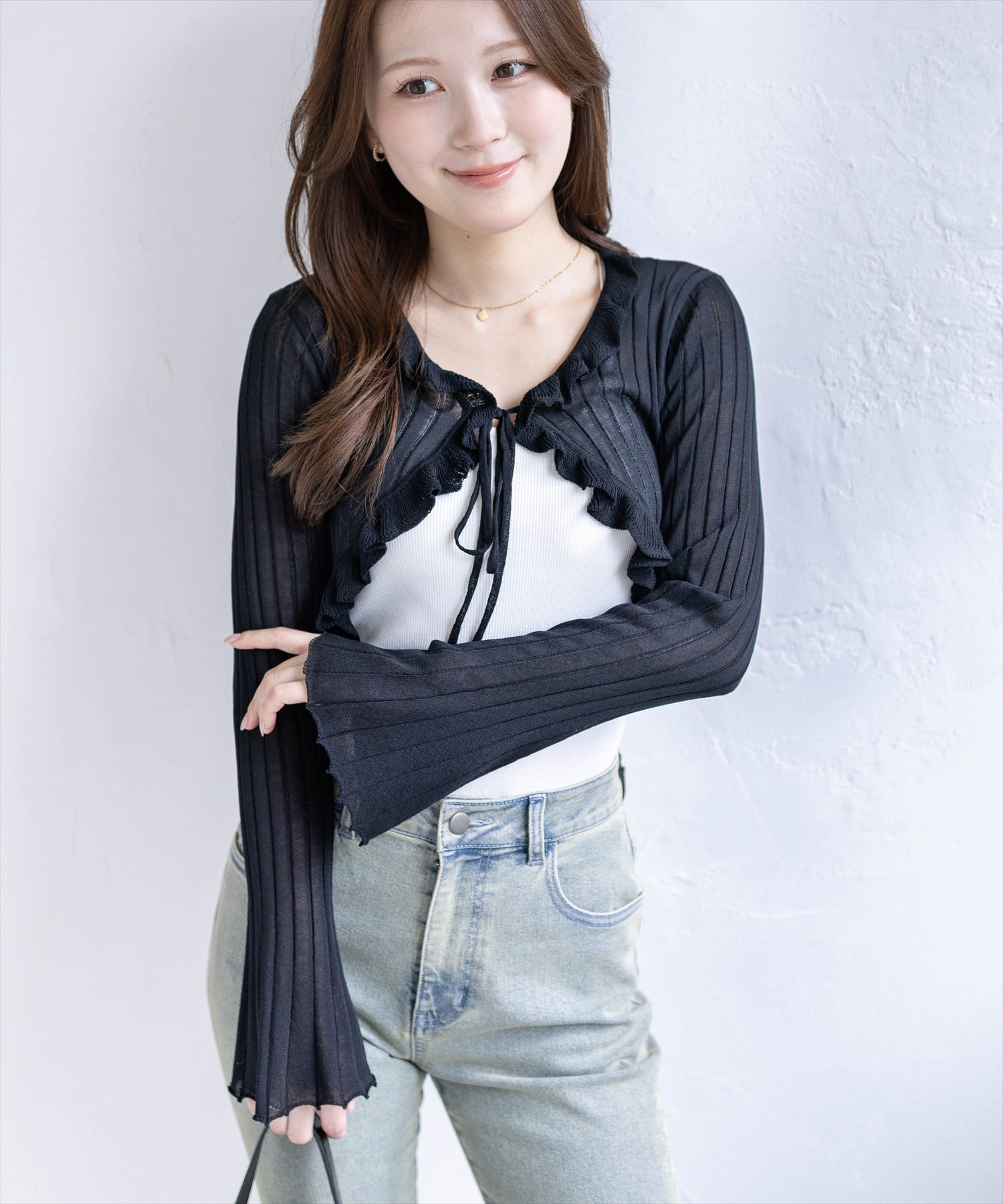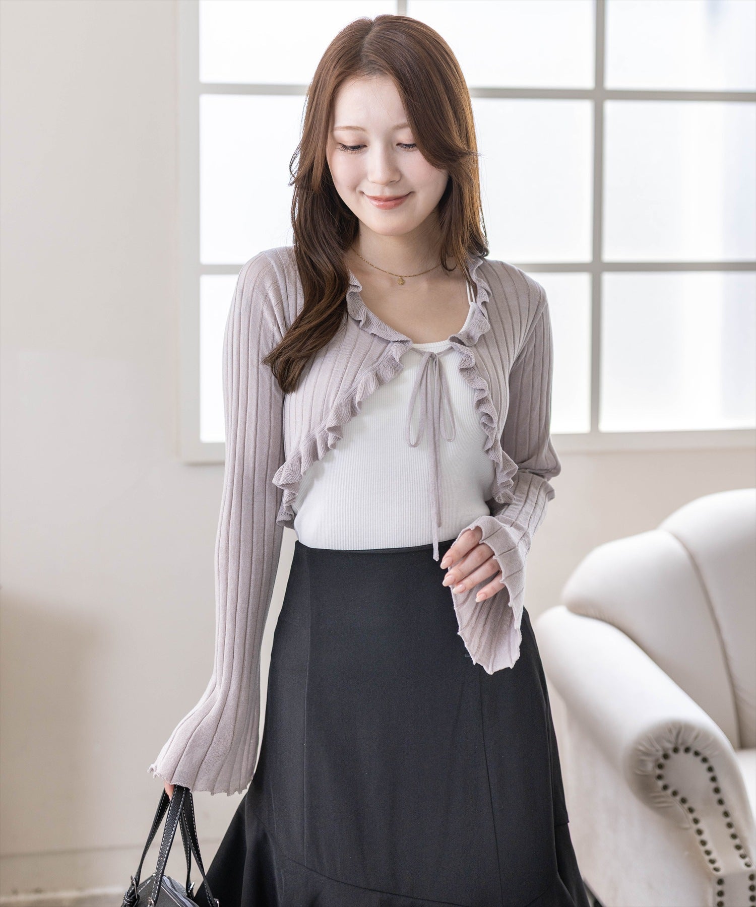 clear≪新色追加≫フリル透かし編みニットカーディガン[CL9391]