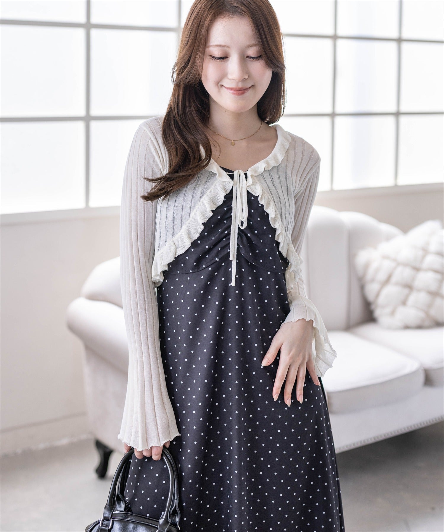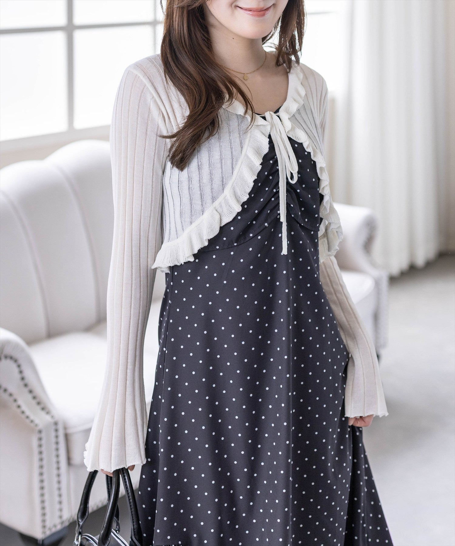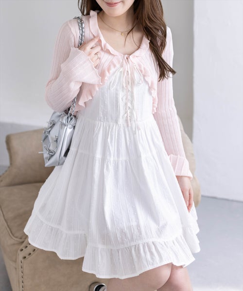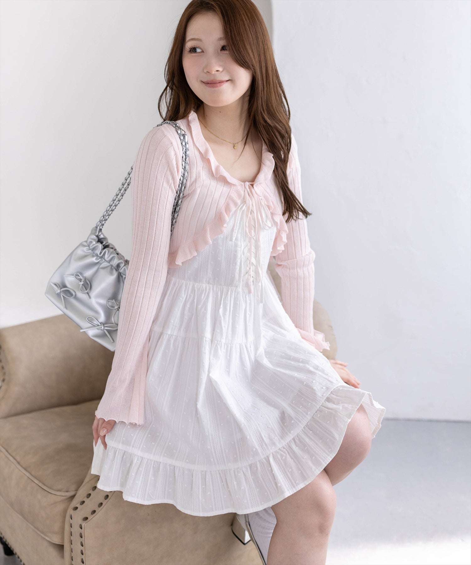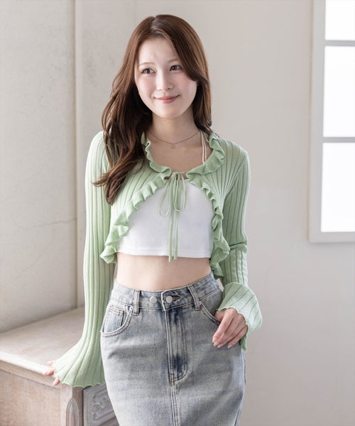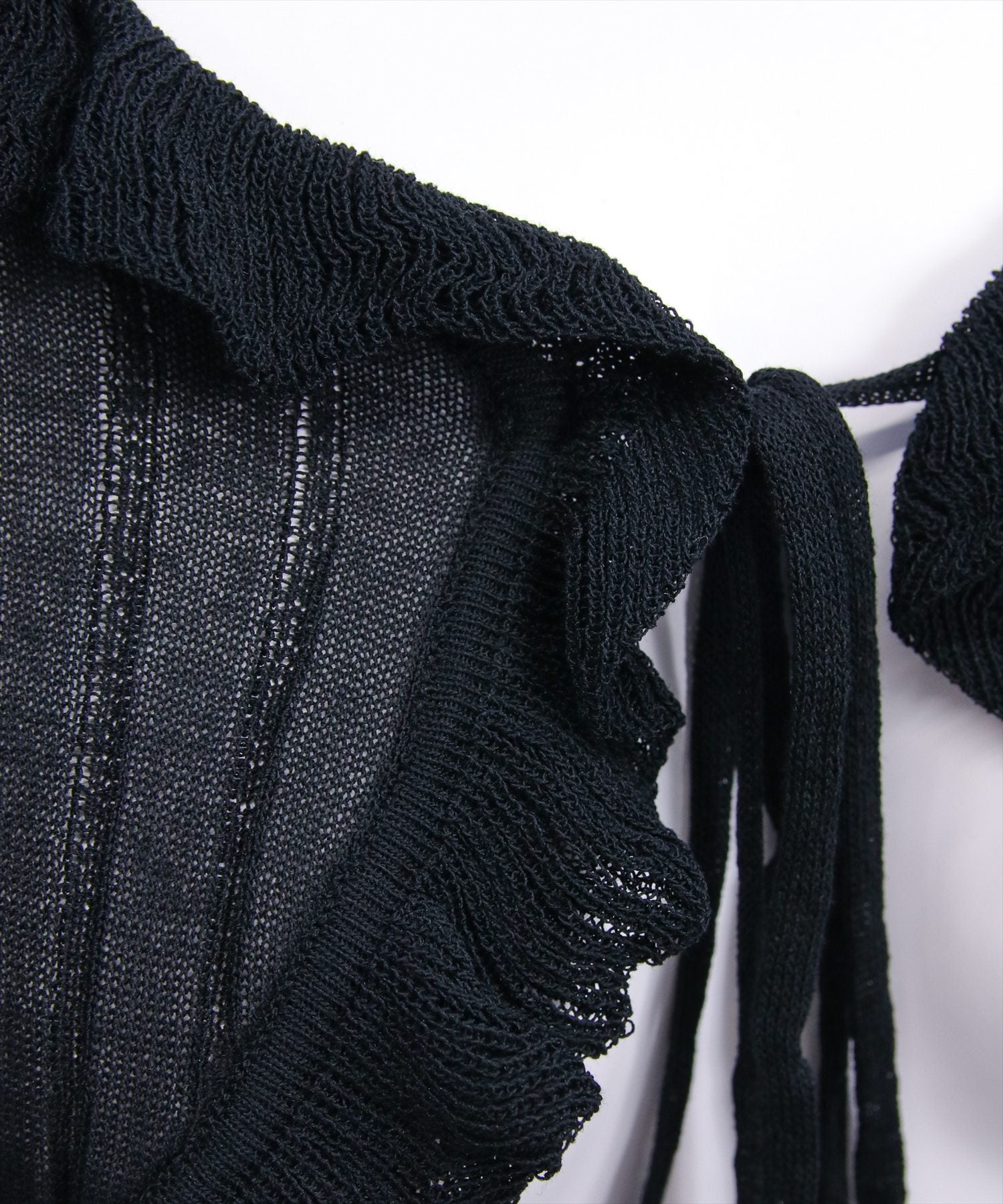 clear≪新色追加≫フリル透かし編みニットカーディガン[CL9391]