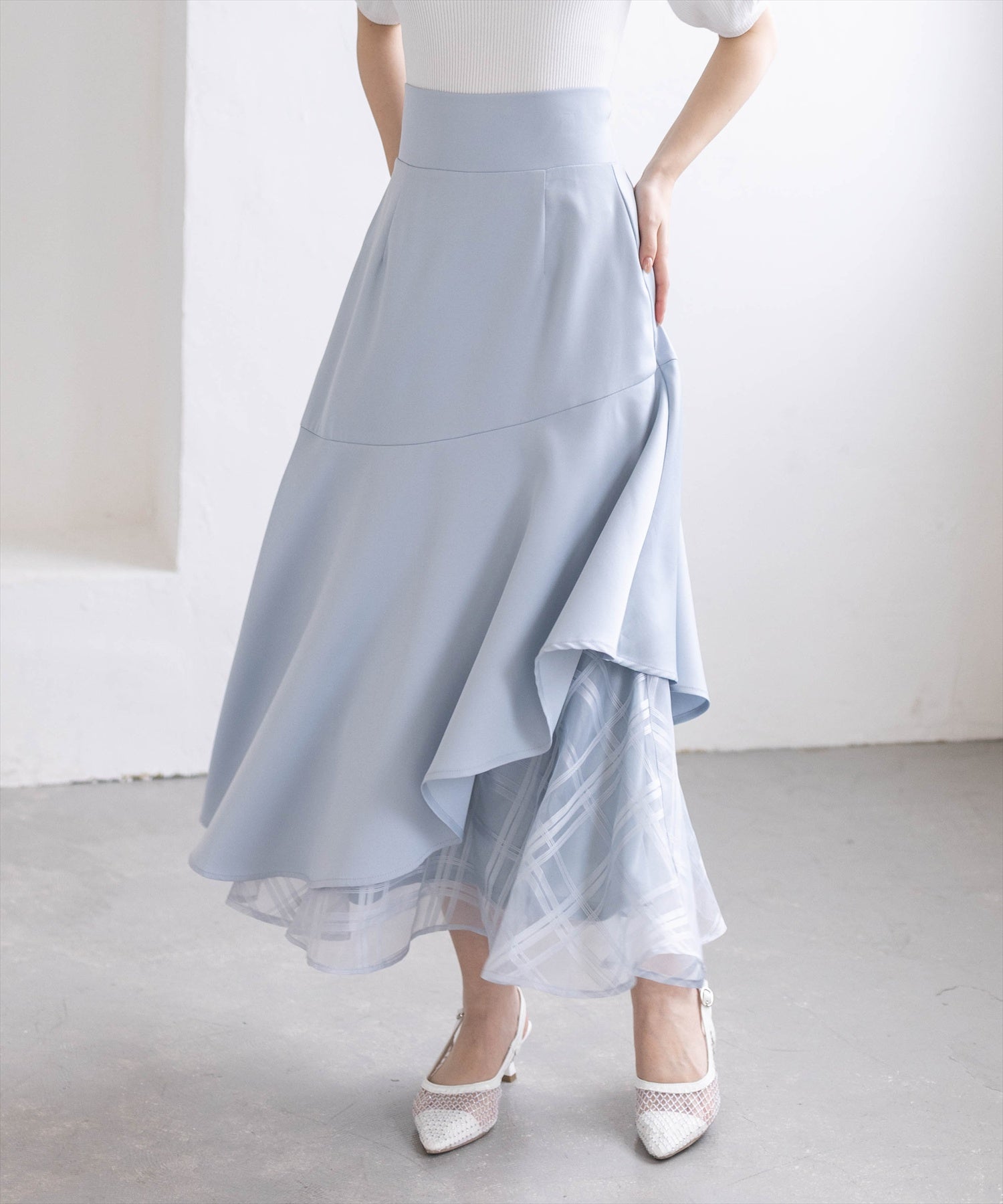 CLEAR BASIC≪新色追加≫シアーチェックドッキングアシンメトリースカート[CL9433]