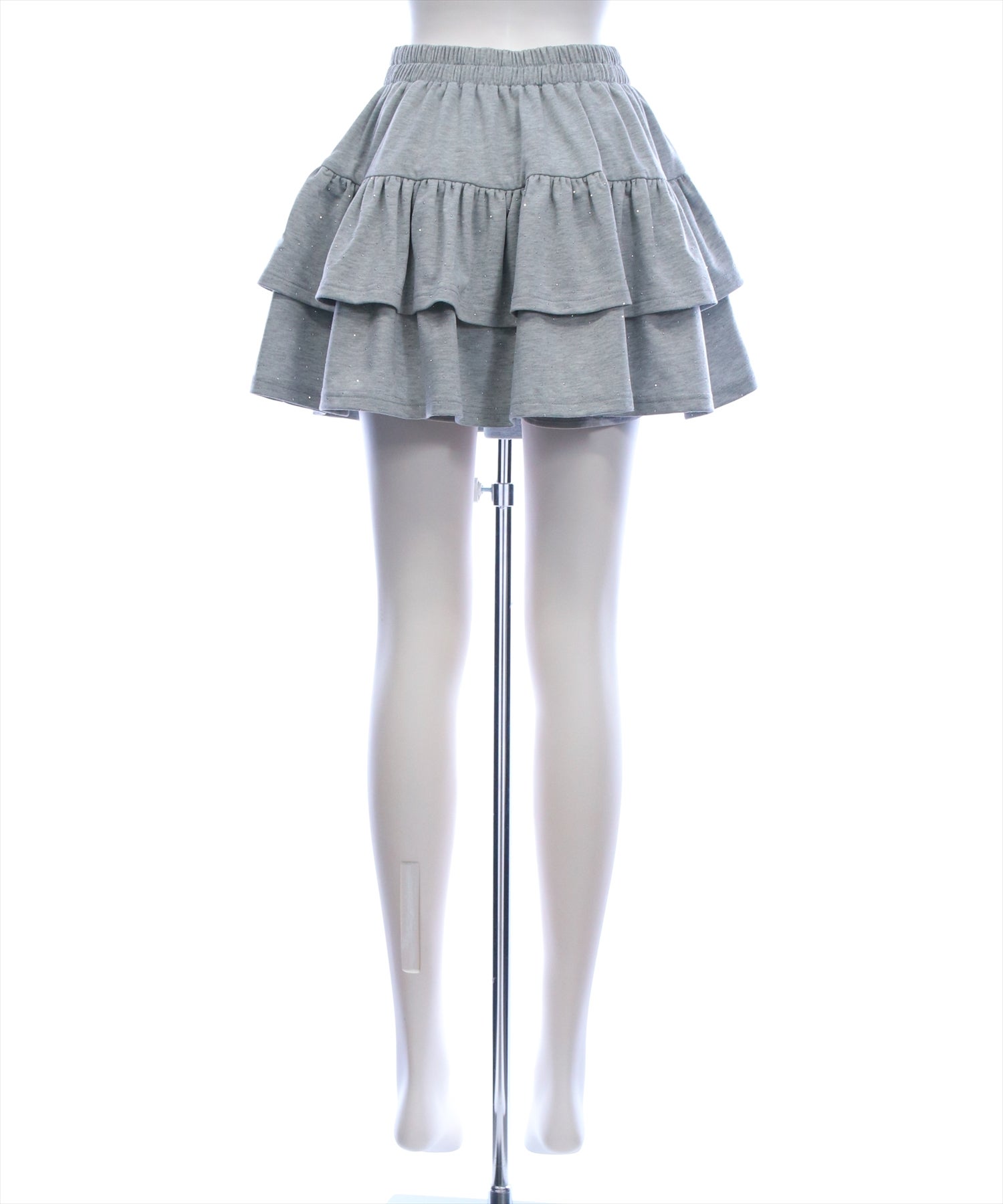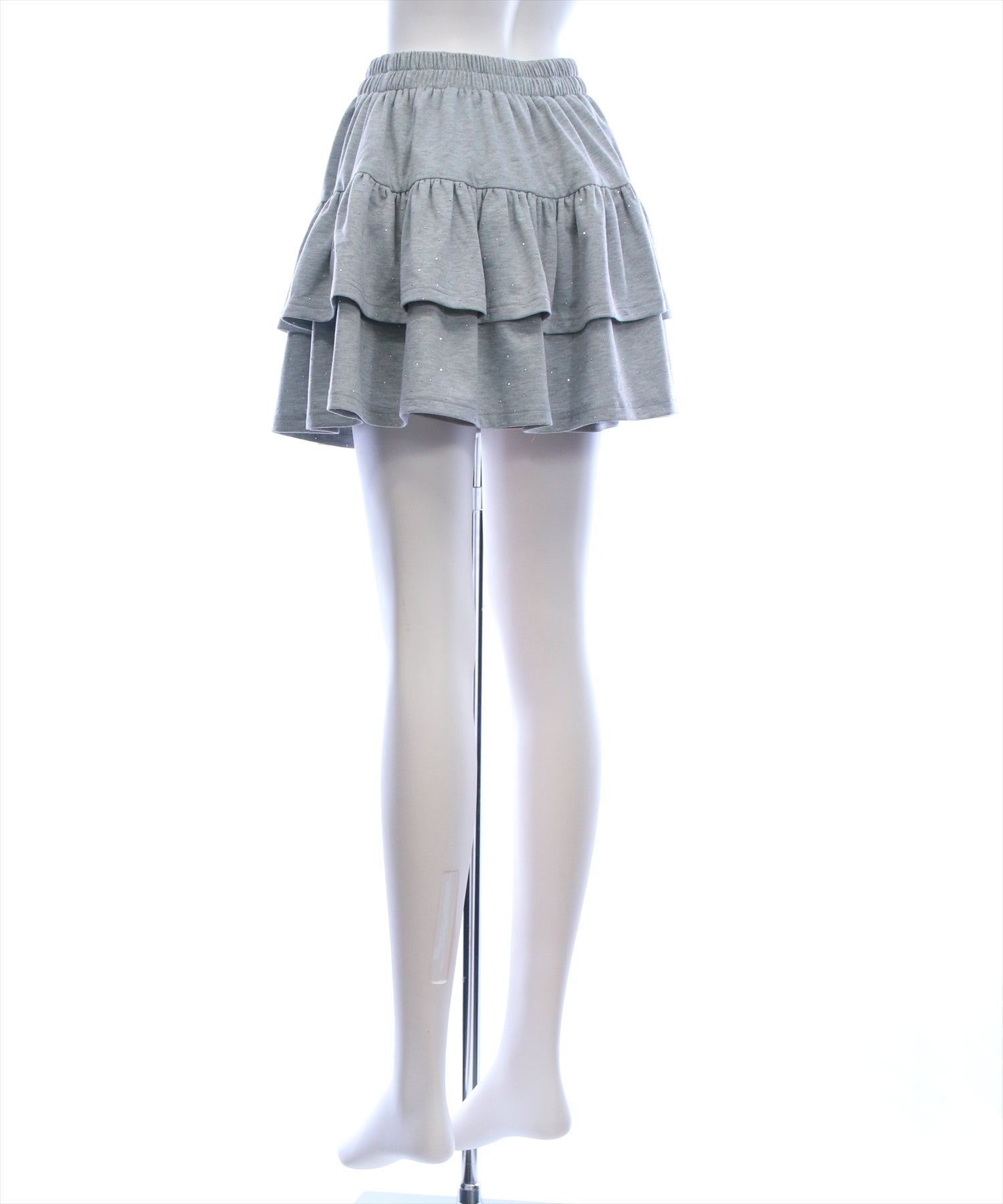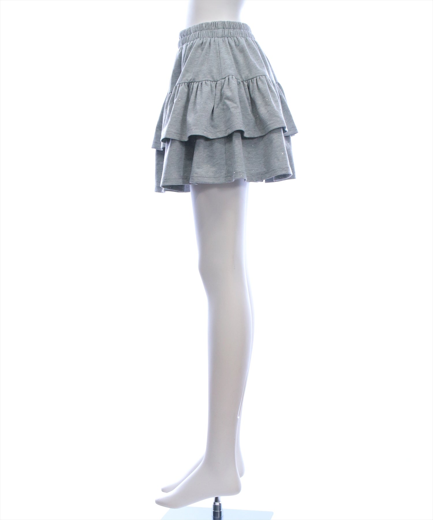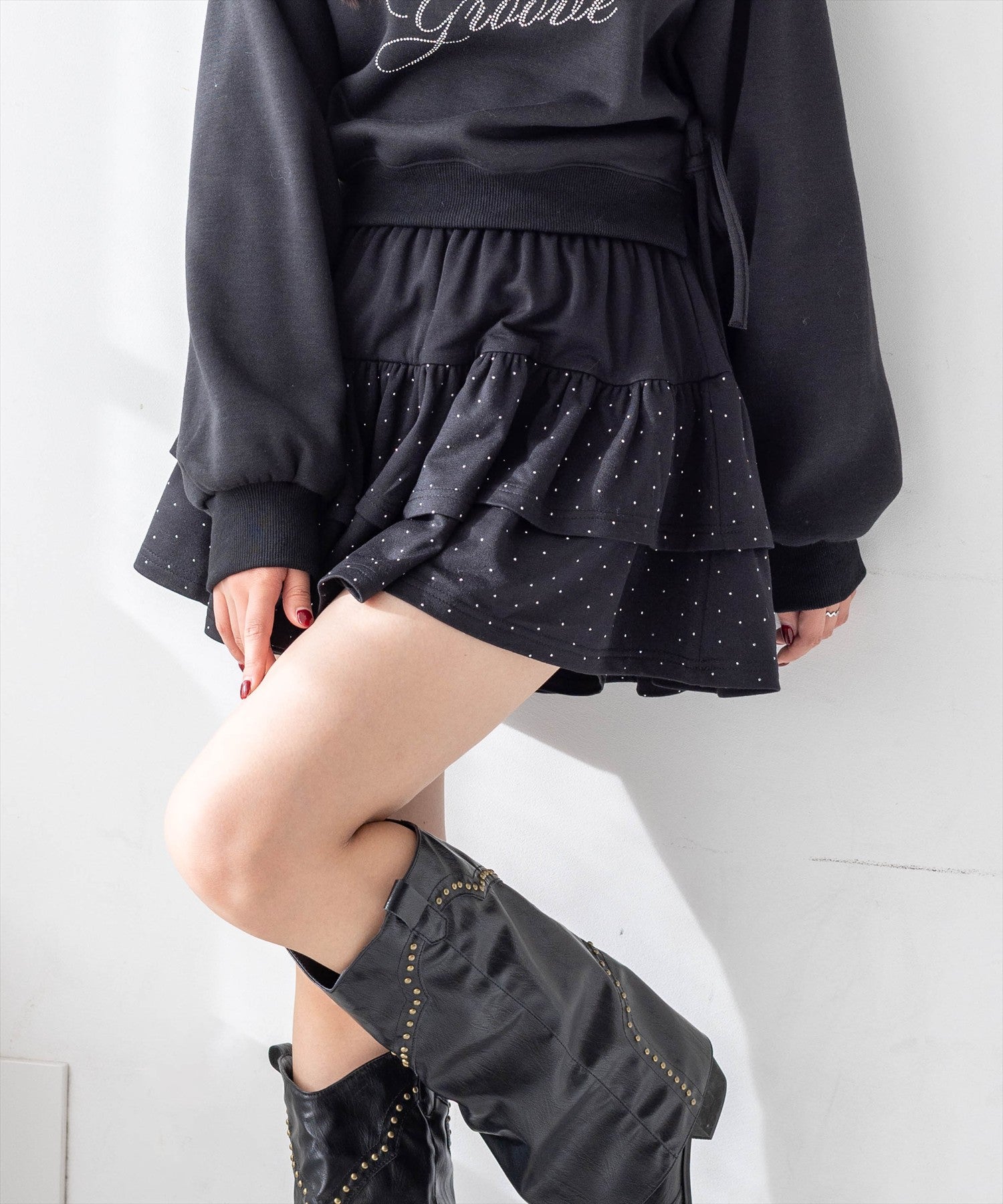 clear≪新色追加≫ラインストーン2段ティアードスウェットミニスカート(セット可)[CL9600]